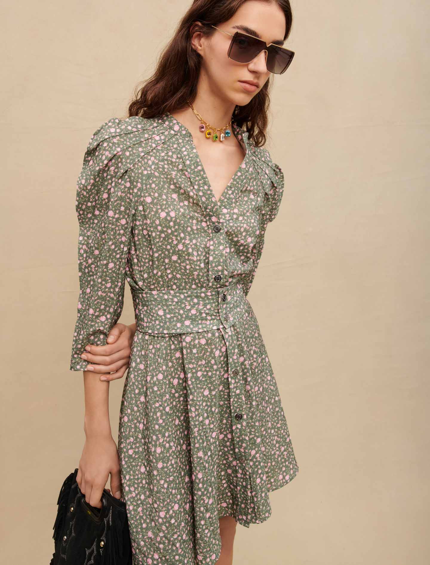 Vestido corto con mangas voluminosas
