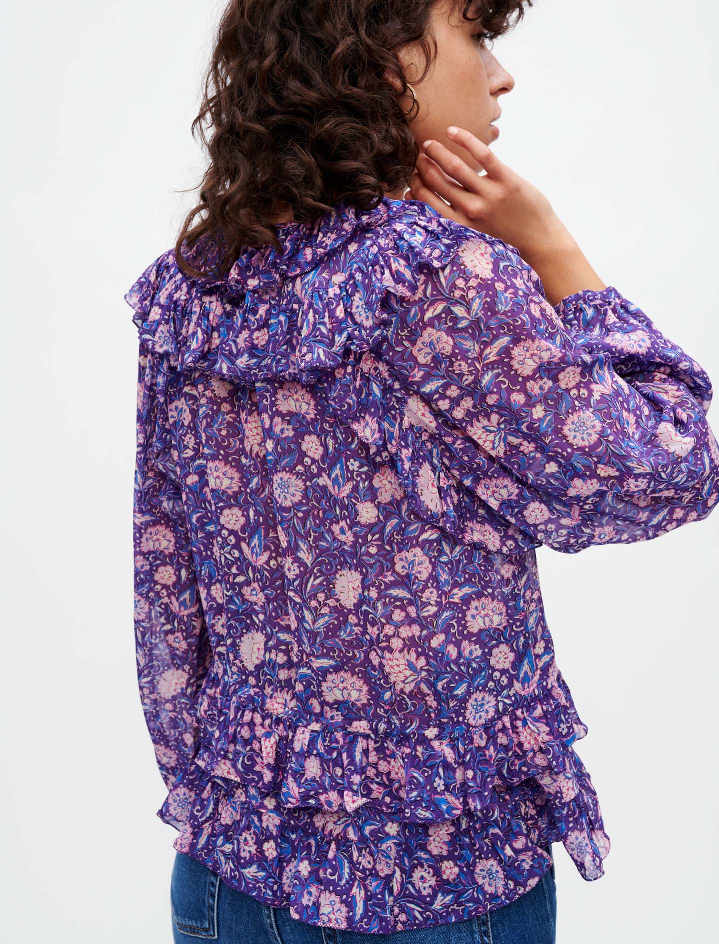 Top de viscosa con estampado de dalias