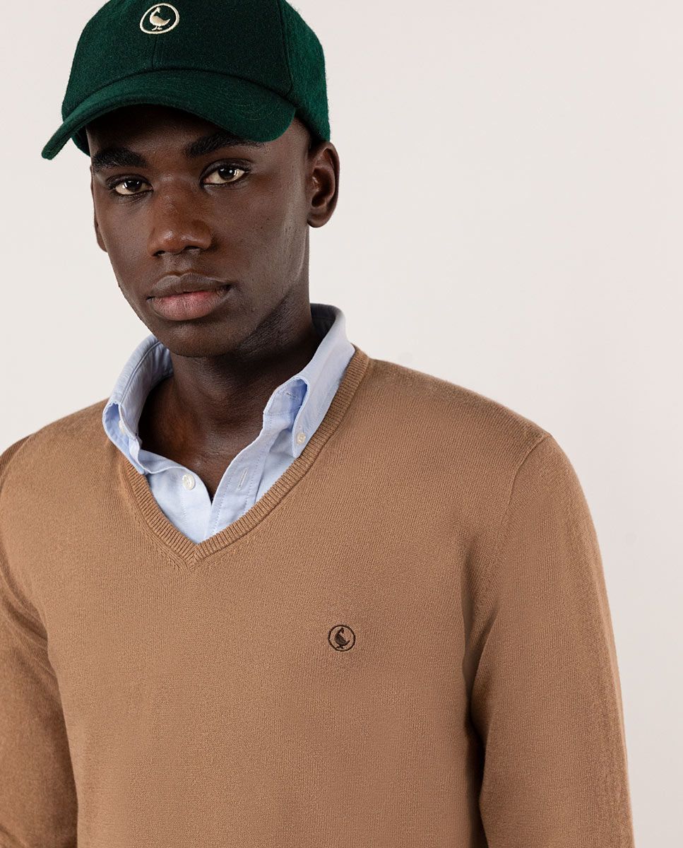 Jersey Cuello Pico Coderas Camel
