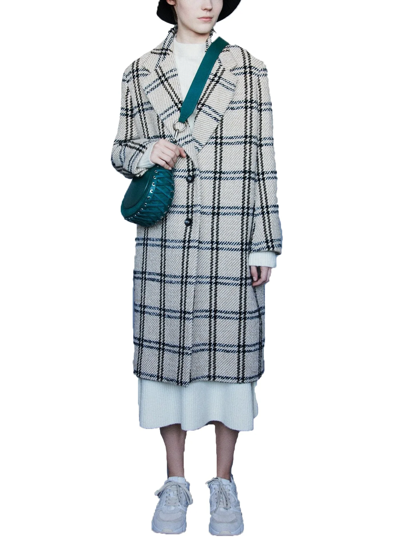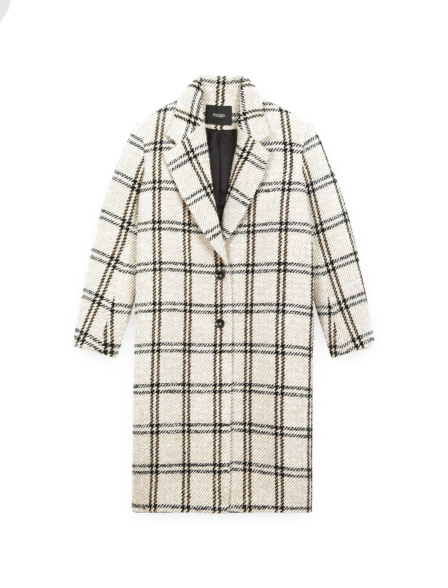Solapa de trajeMaterial de mezcla de lanaCorte recto de un solo pechoLook de abrigo clásico para otoño e invierno.
