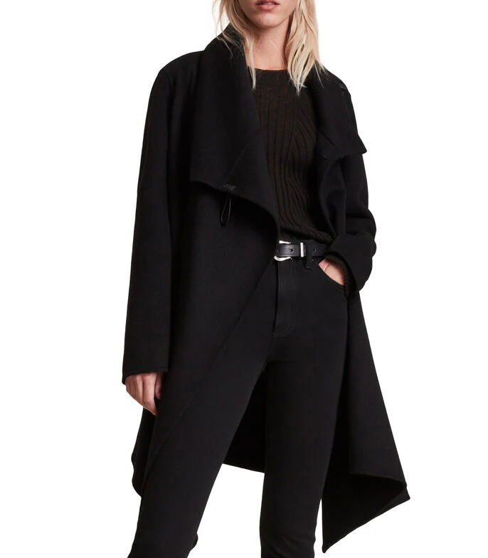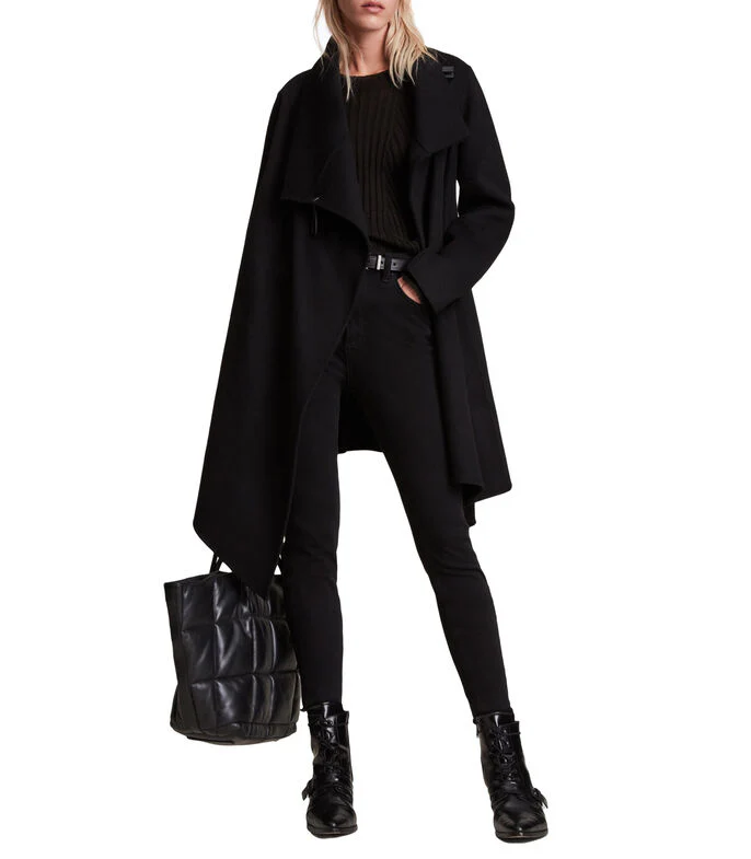 Abrigo Monument Eve Black, marca AllSaints. Composición: 63%WOOL 31%POLYESTER 3%POLYAMIDE 2%ACRYLIC 1%VISCOSE