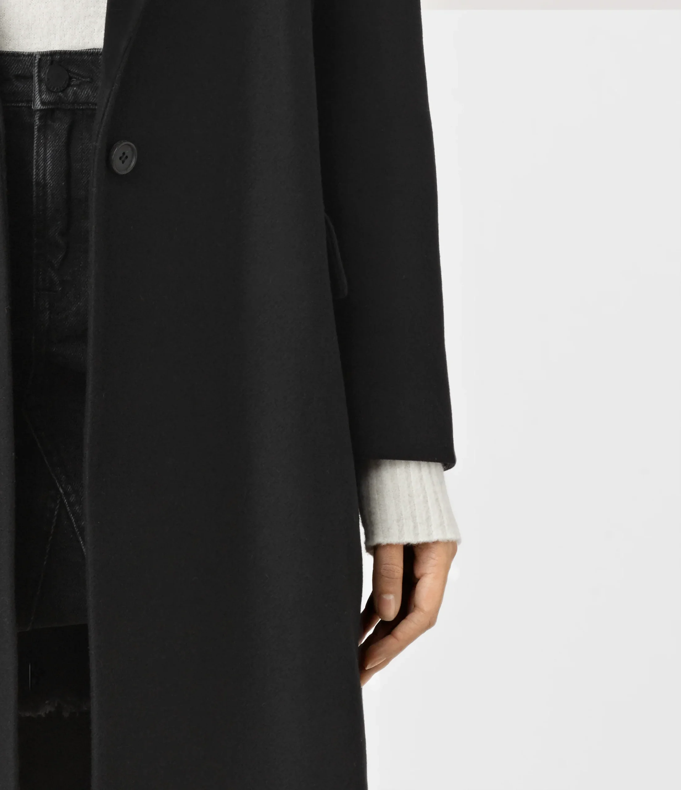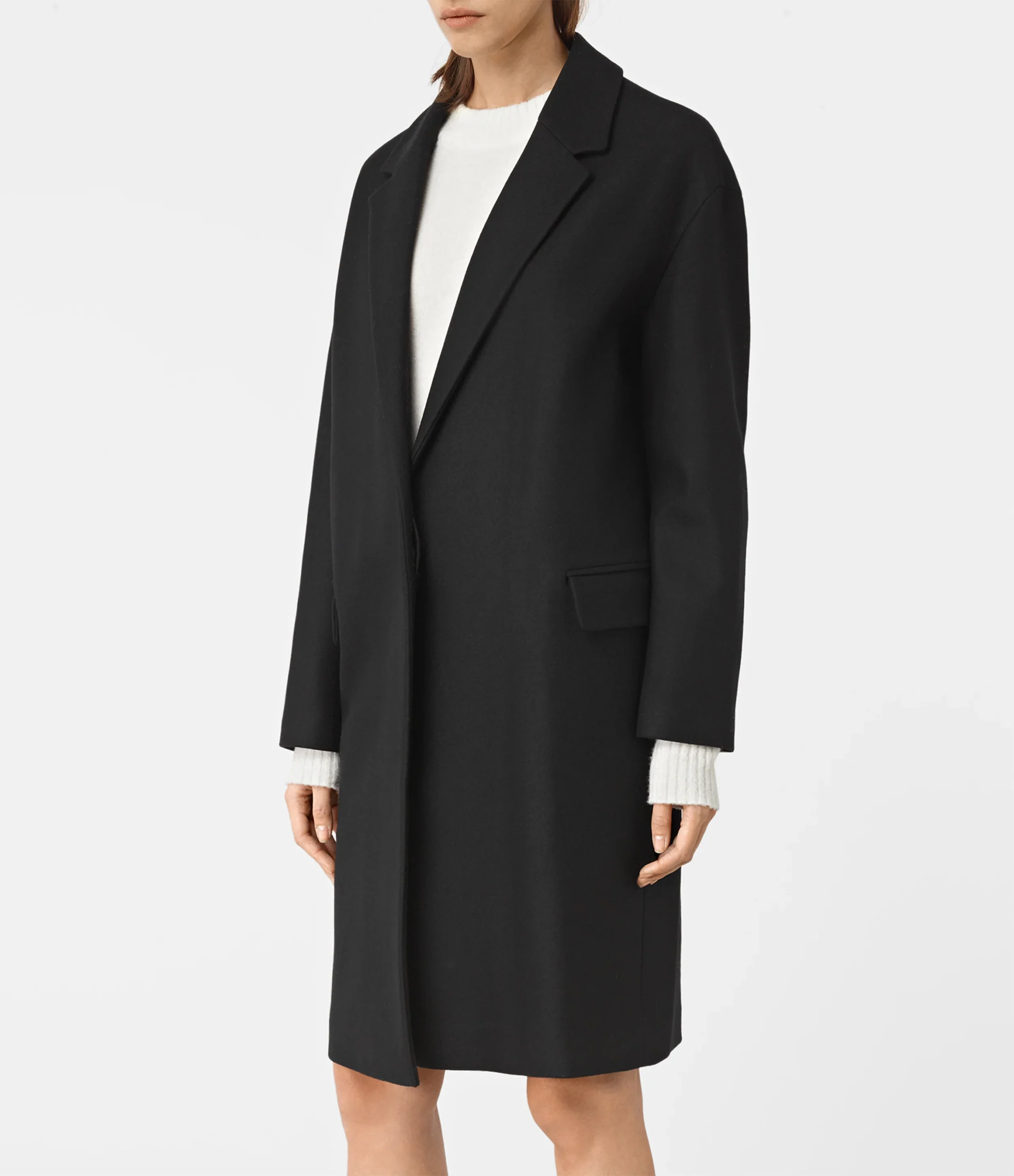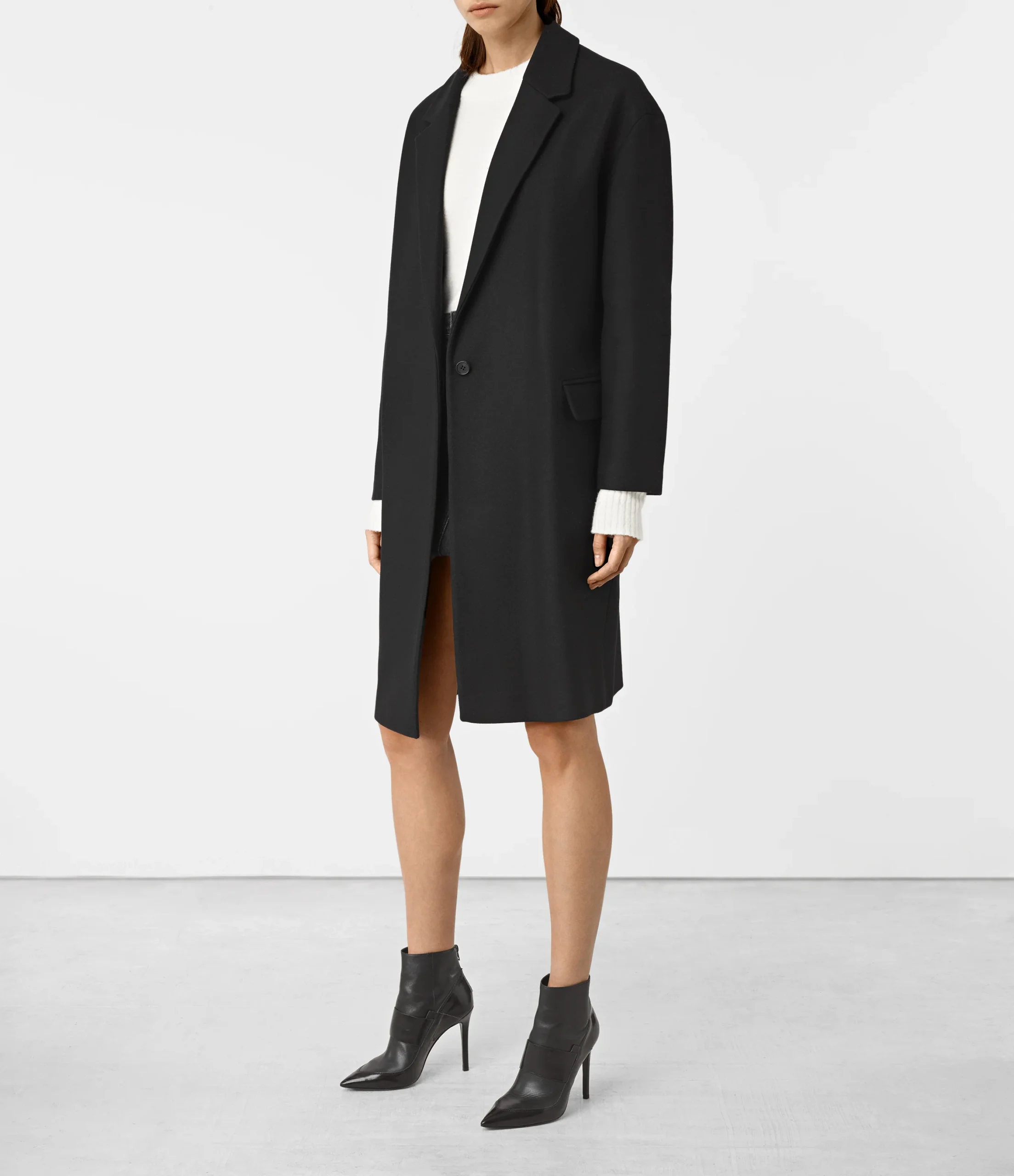 Abrigo Sancia Negro, marca AllSaints. Composición: Consultar etiqueta interna.