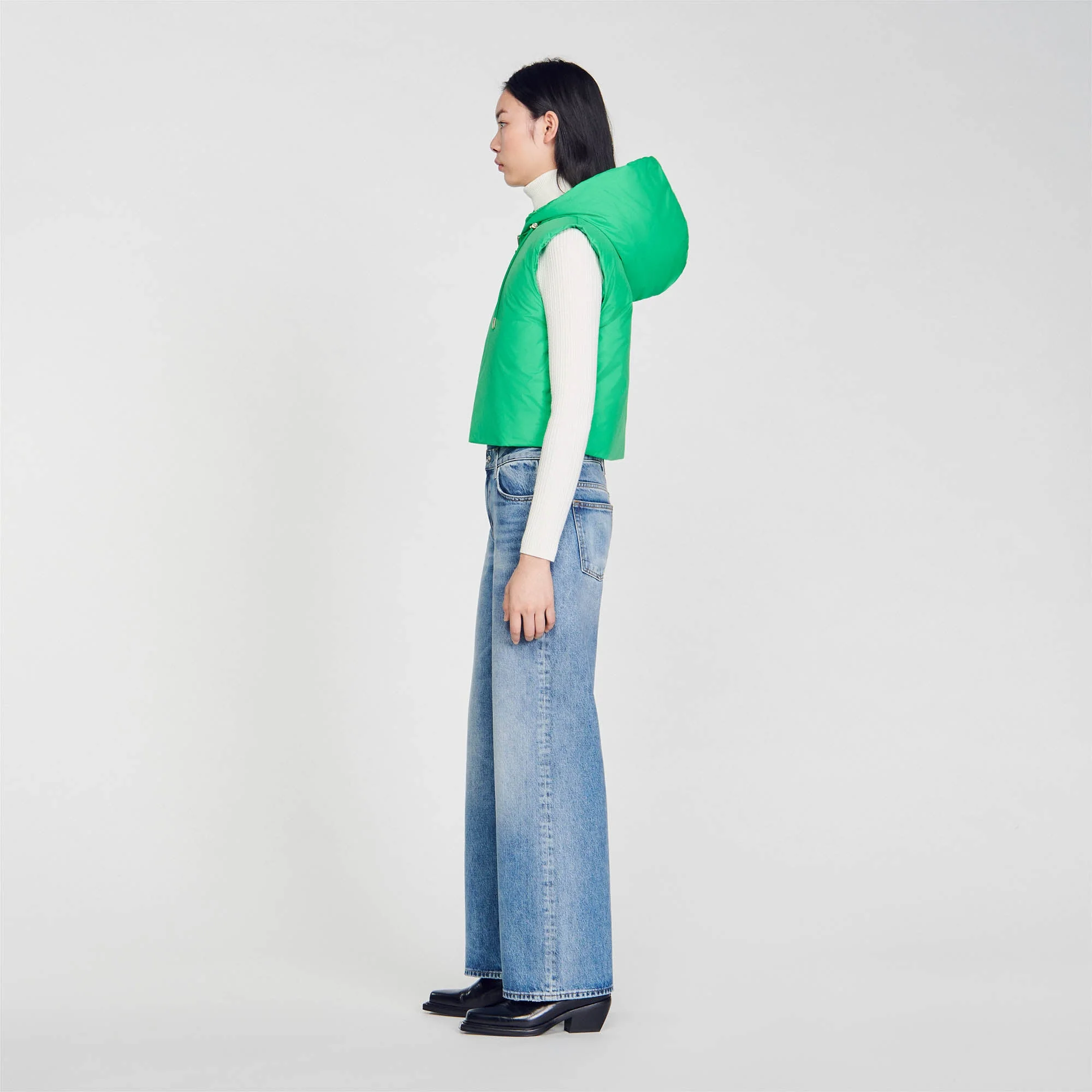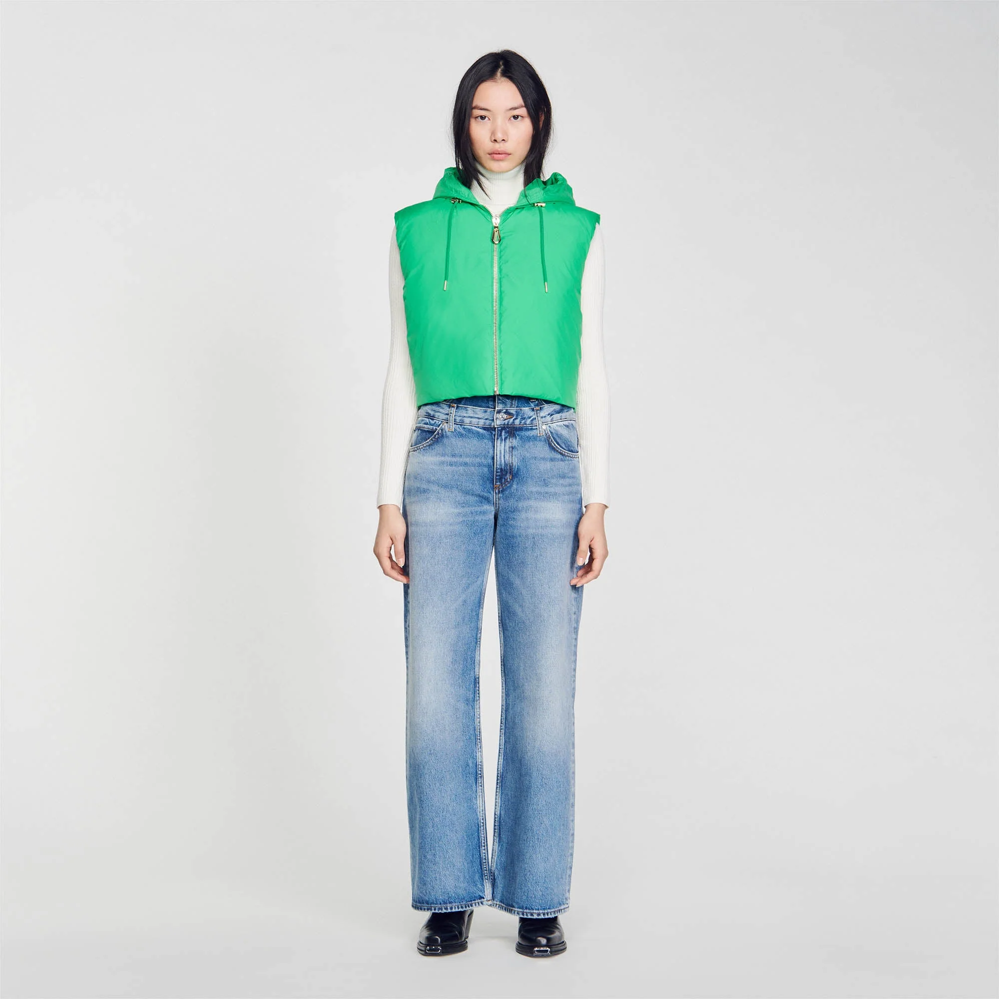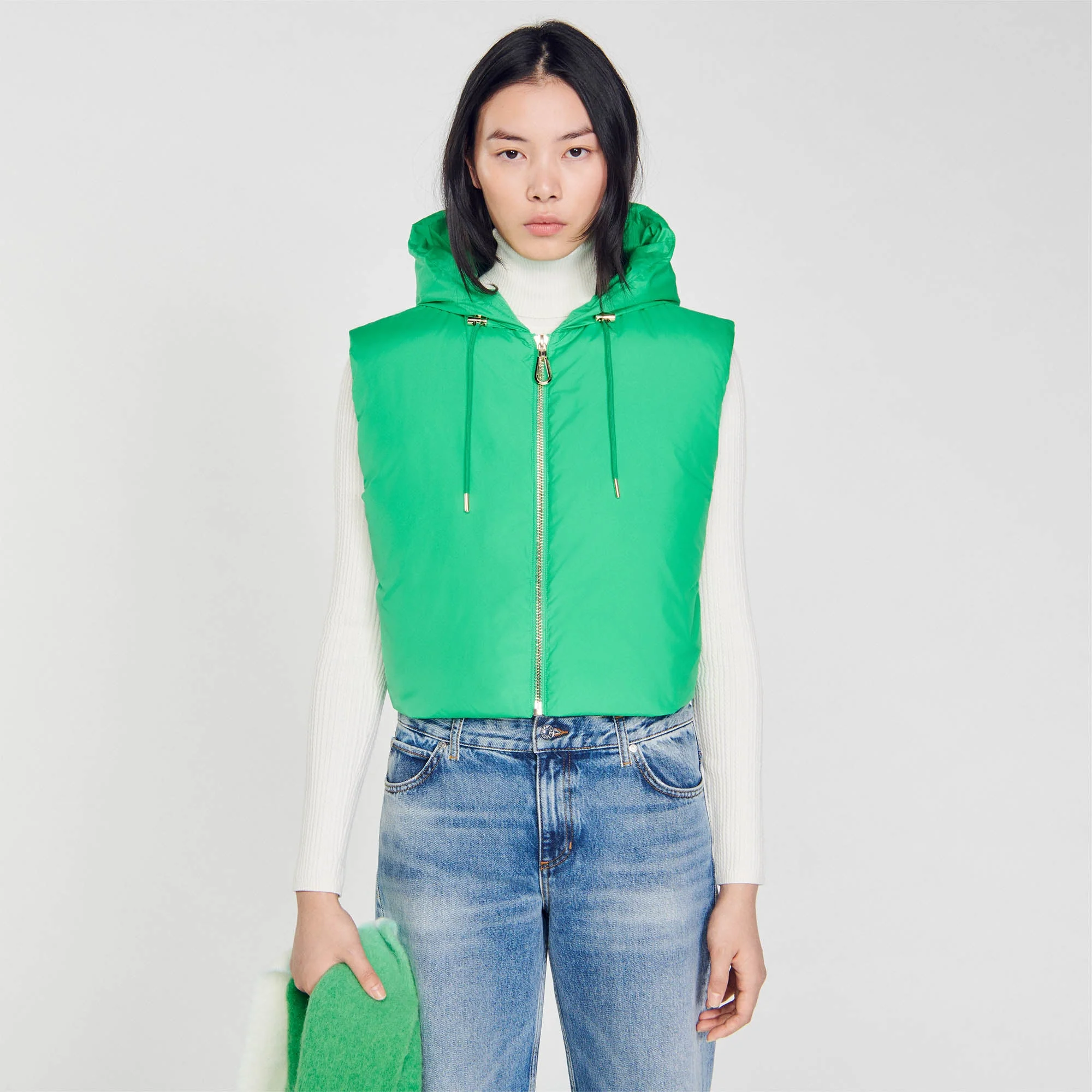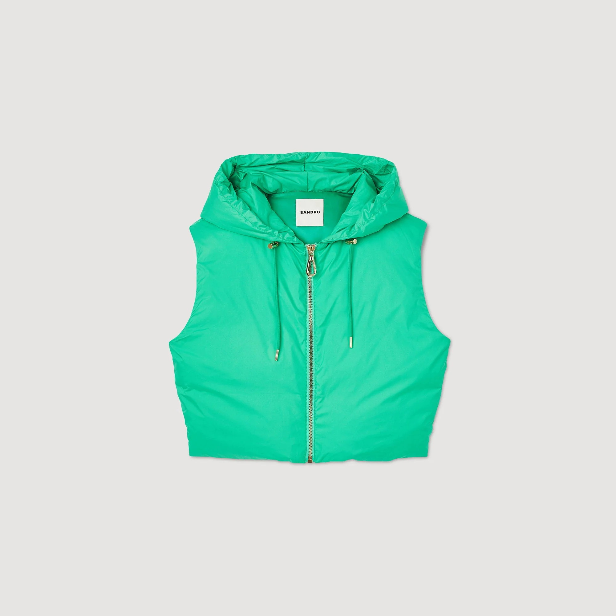 Anorak corto acolchado sin mangas, con capucha, cierre de cremallera y cordones de ajuste.• Anorak corto acolchado Sandro Femme