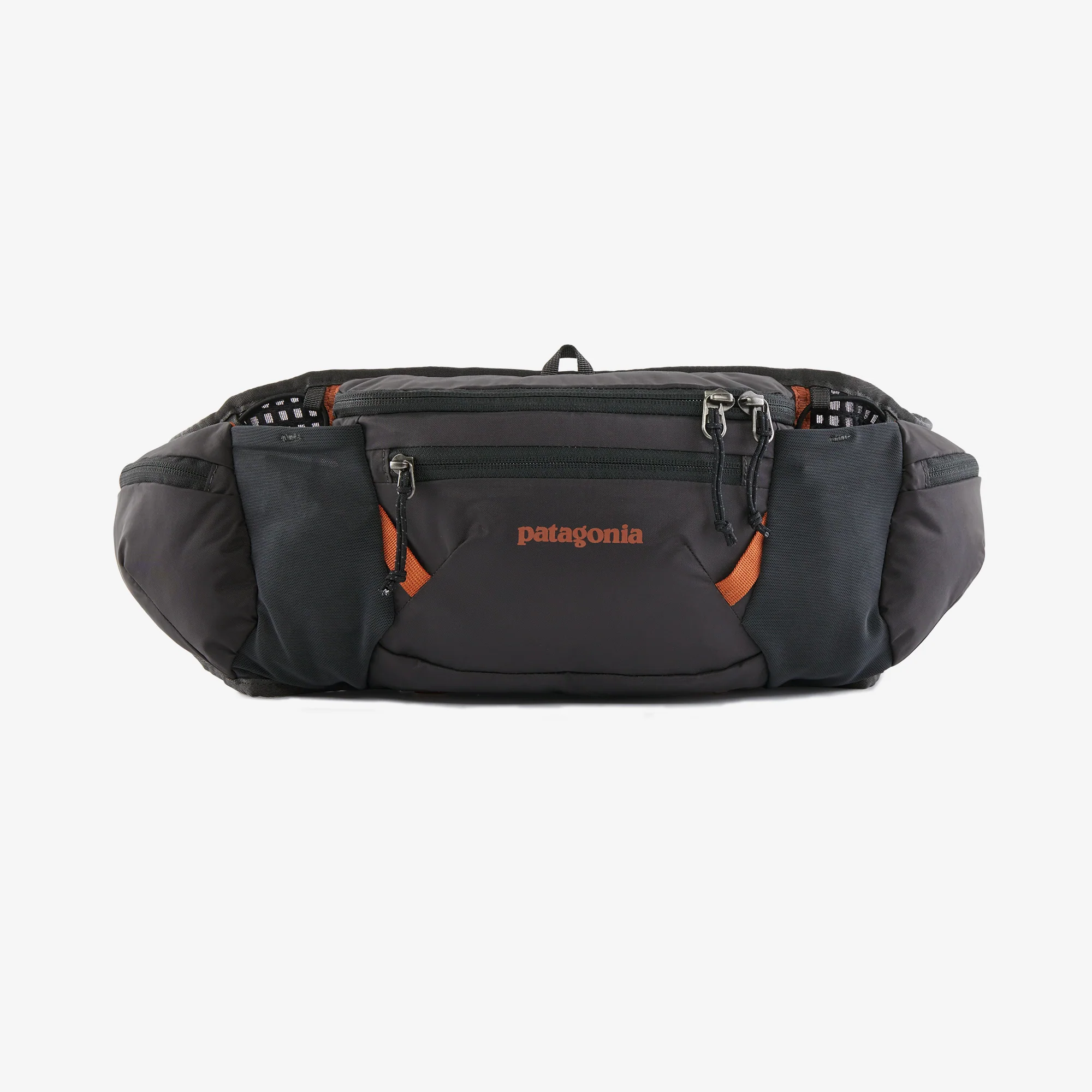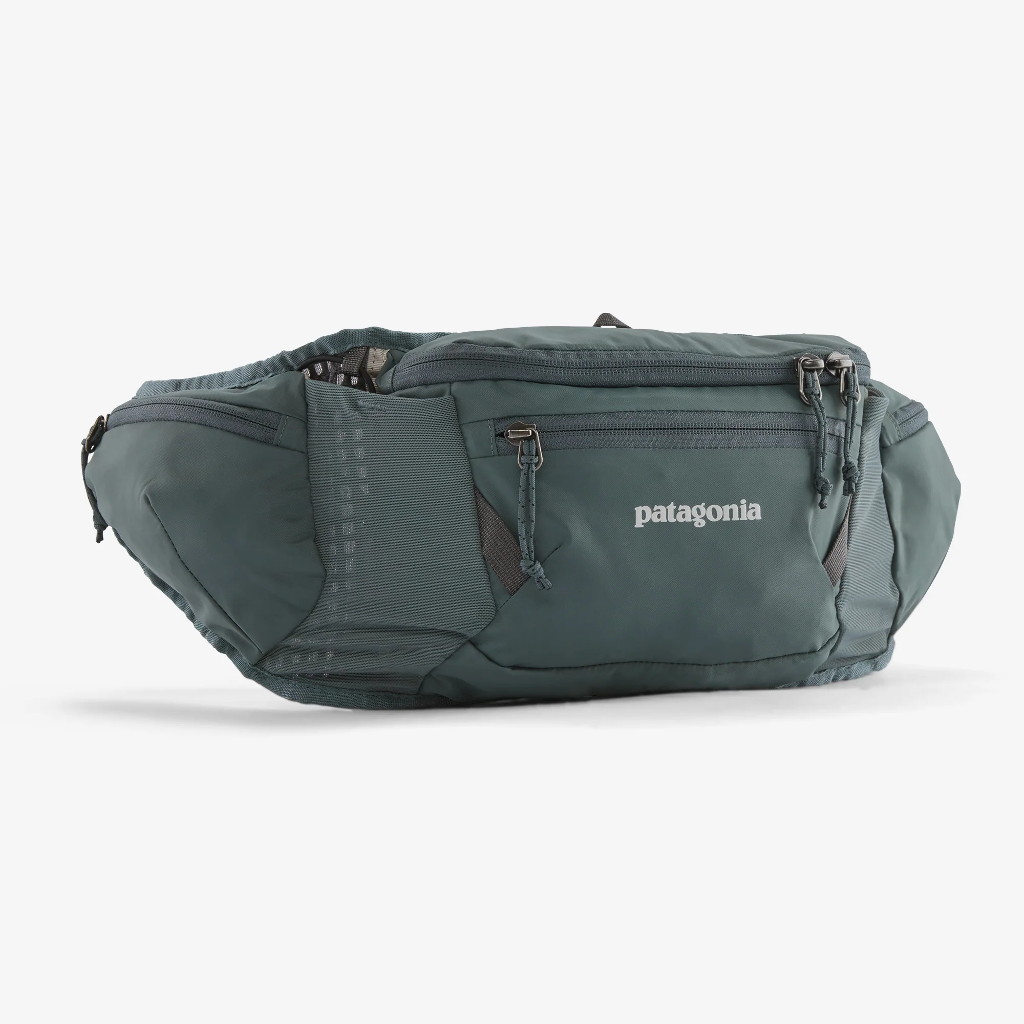 - Cuerpo: 4.7-oz (139 g) tejido liso de 210-denier 100% nylon reciclado con una capa PU y acabado DWR libre de PFC (capa durable repelente al agua sin químicos perfluorados). Forro: 3-oz (88.7 g) poliéster de 200-denier 100% reciclado con una capa PU. Cinturón y correas de hombros: 8.3-oz (245.46 g) malla 3D 100% poliéster.