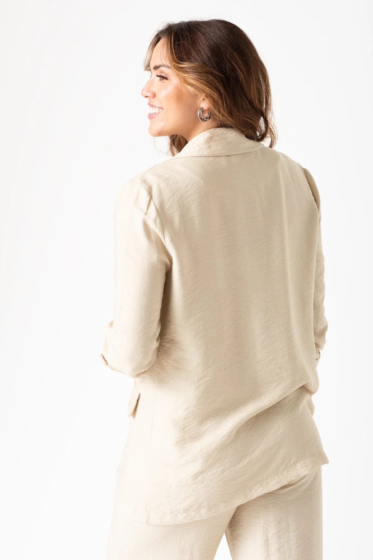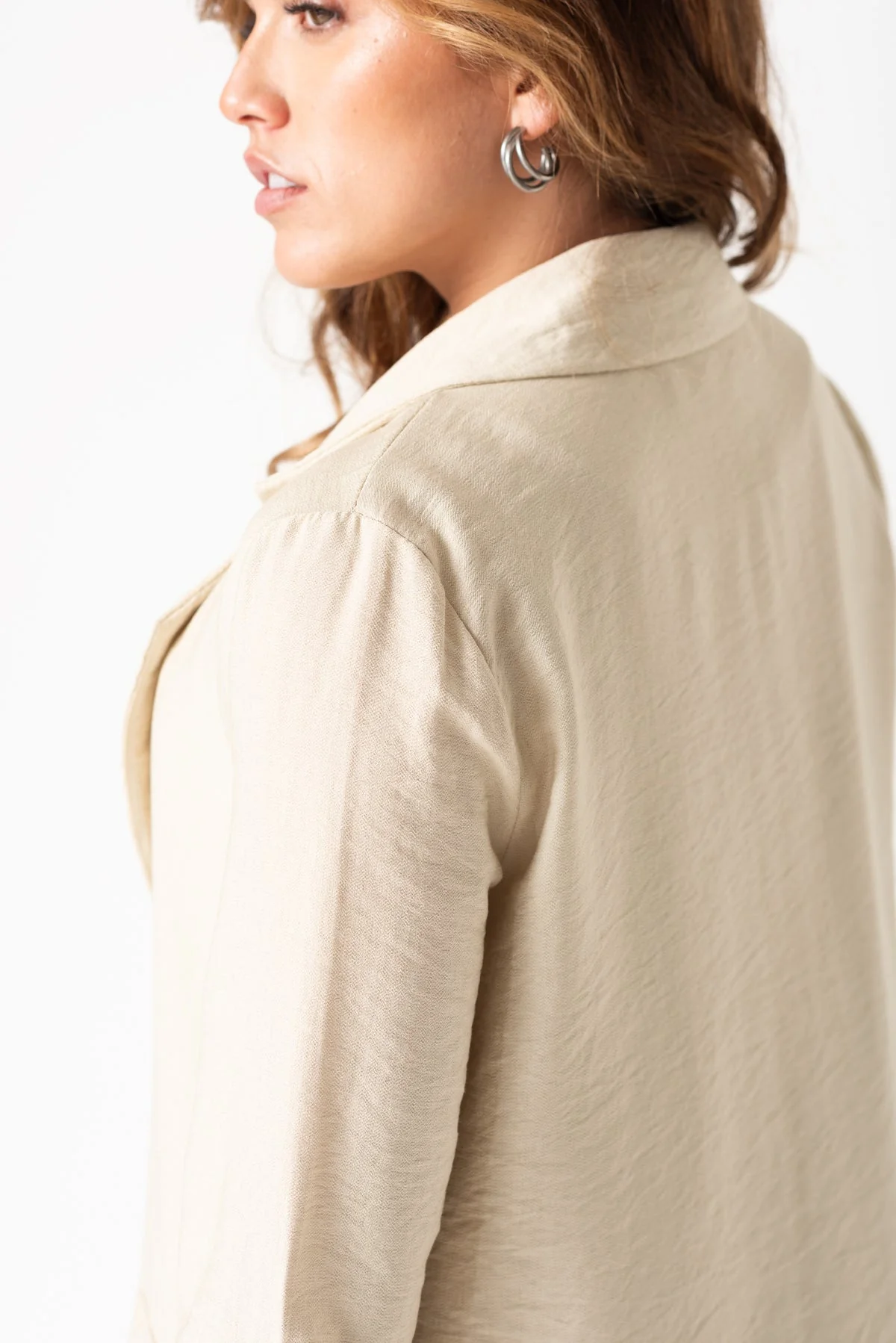 ¡Descubrí la sofisticación natural del Blazer Leger en beige! Este blazer te aporta confianza plena y un toque de distinción, ideal para mujeres que buscan destacar con elegancia y comodidad.