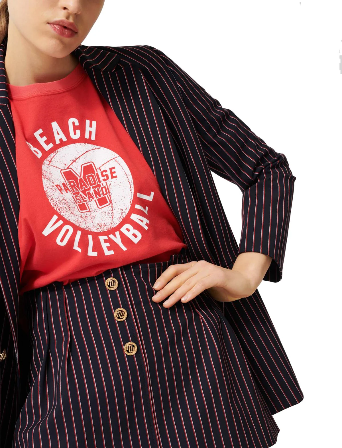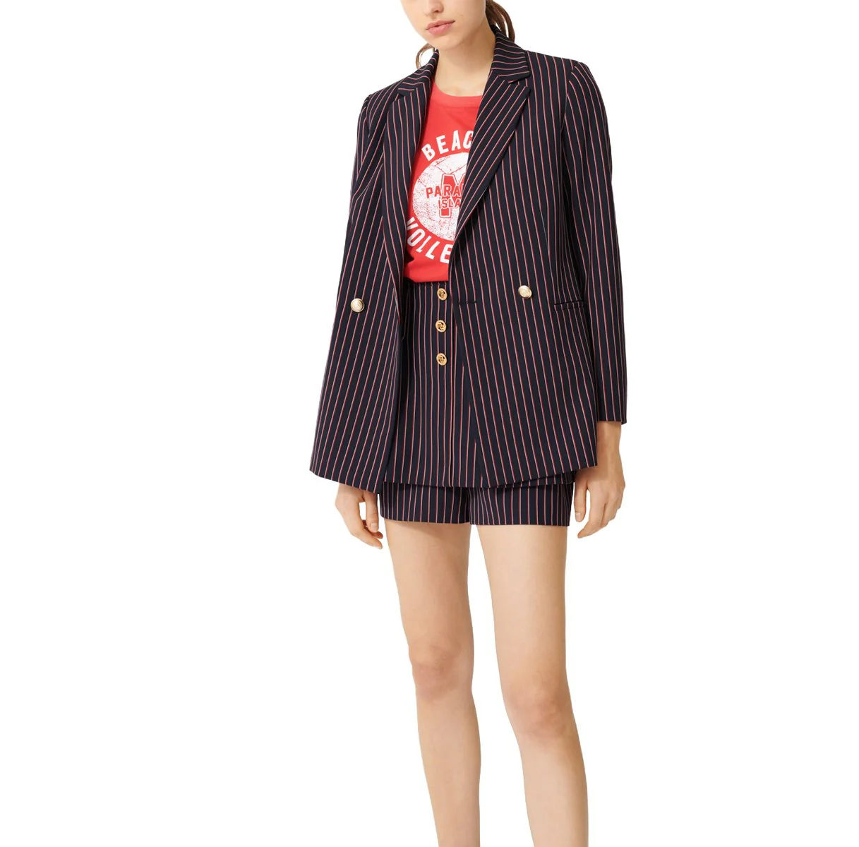 Americana recta cruzada de rayas