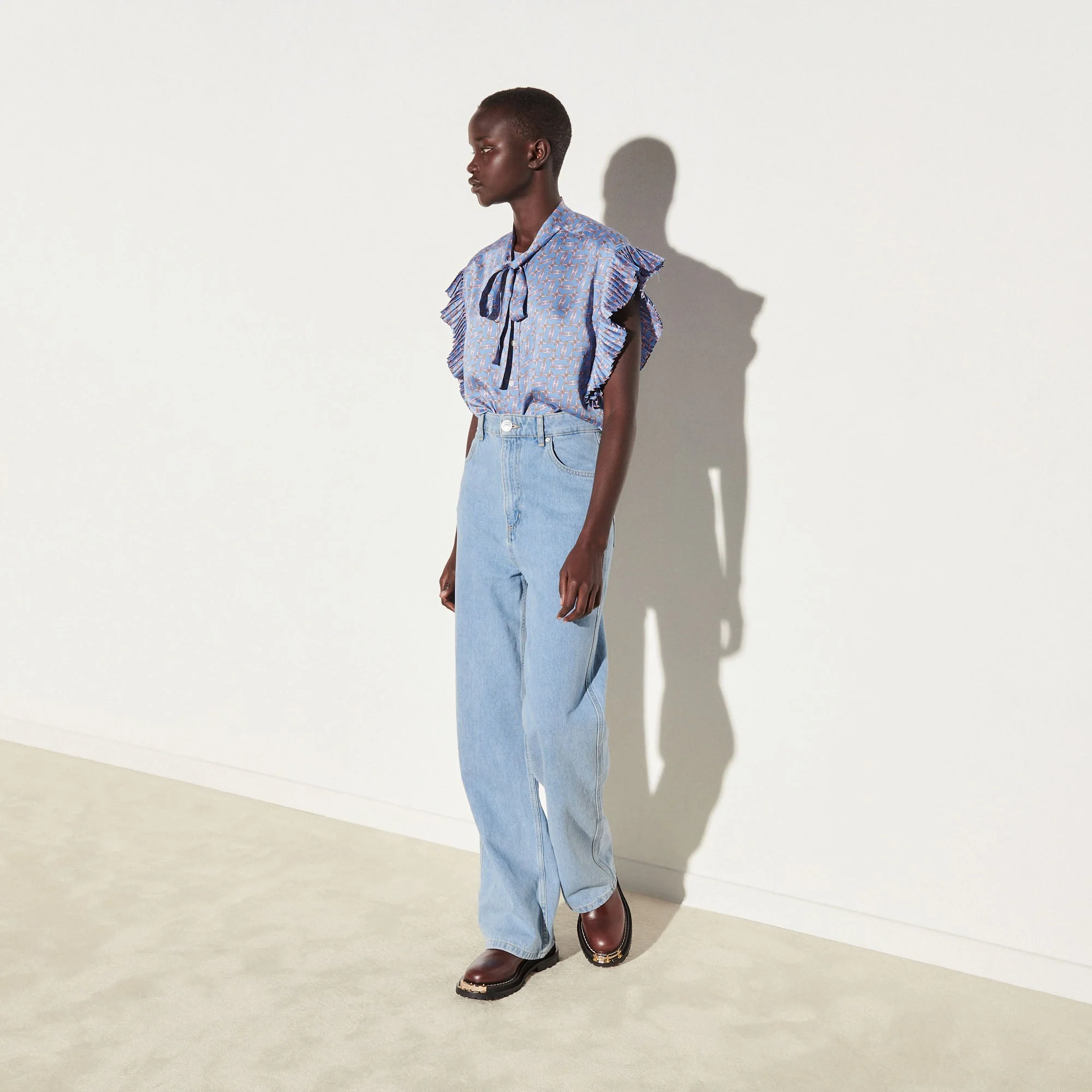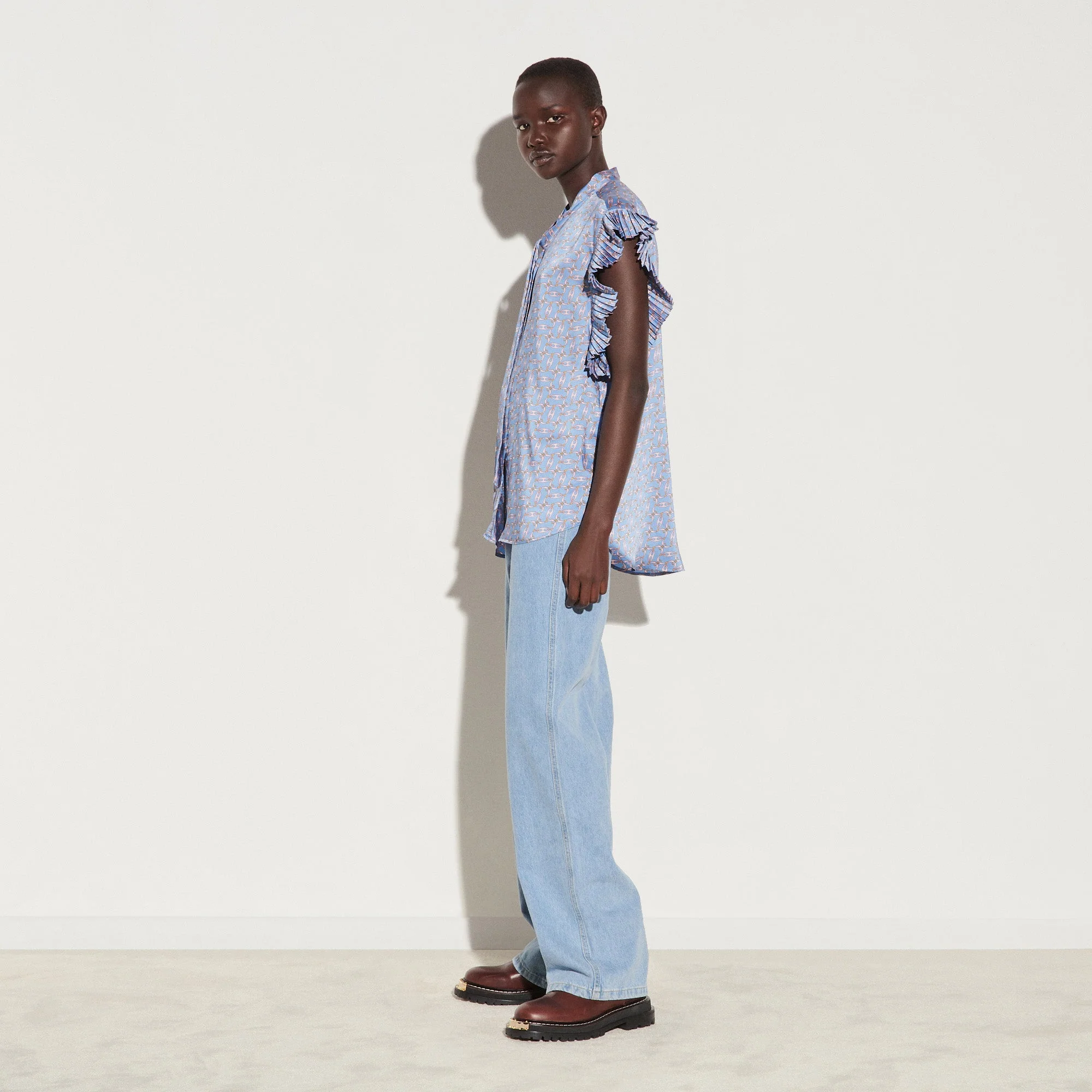 CAMISA CHEN AZUL CLARO, MARCA SANDRO. COMPOSICIÓN: REVISAR ETIQUETA INTERNA. INSTRUCCIONES DE LAVADO: R5