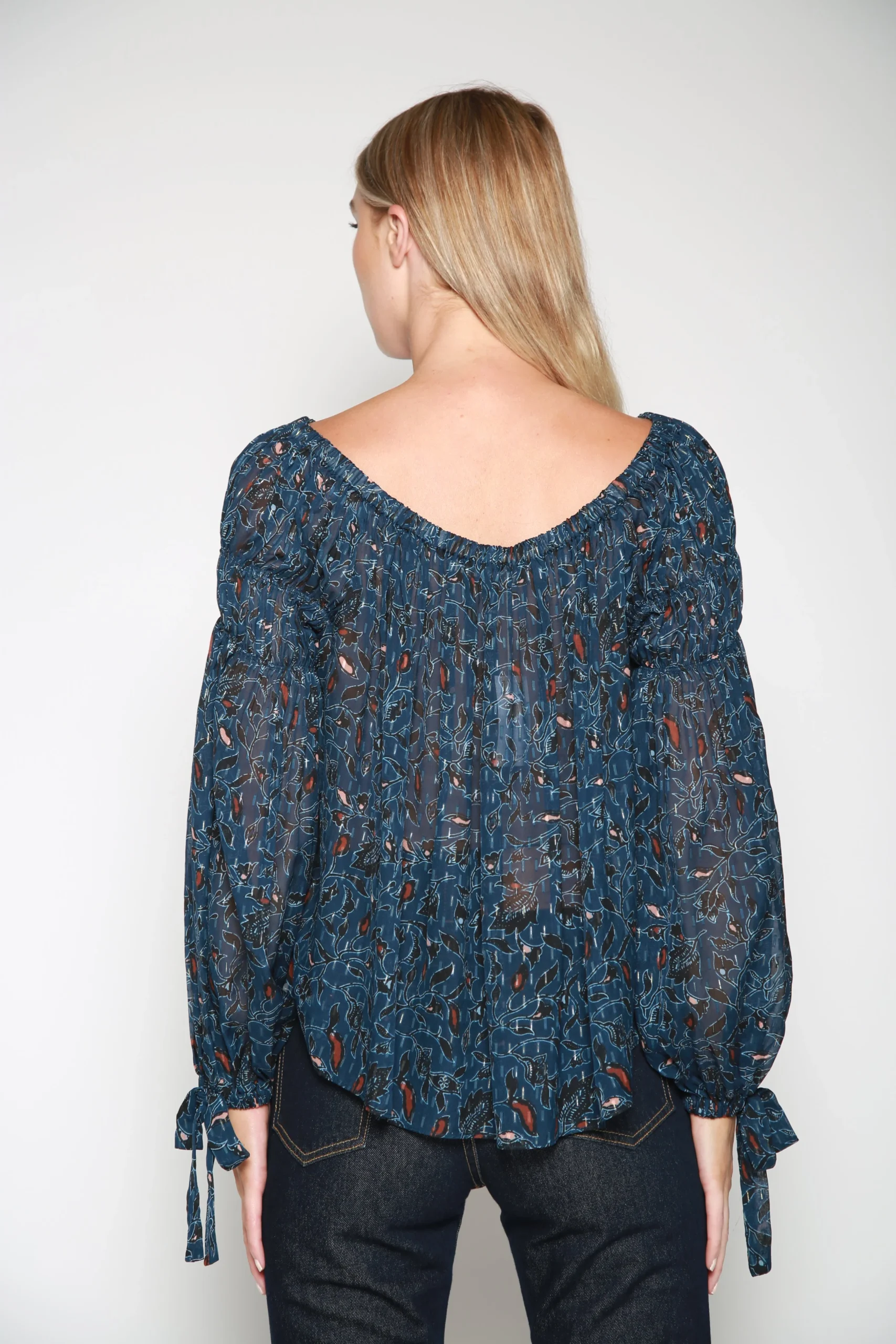 Blusa Farai Azul , marca Ulla Johnson. CONSULTAR COMPOSICIÓN Y CUIDADOS EN ETIQUETA INTERNA.