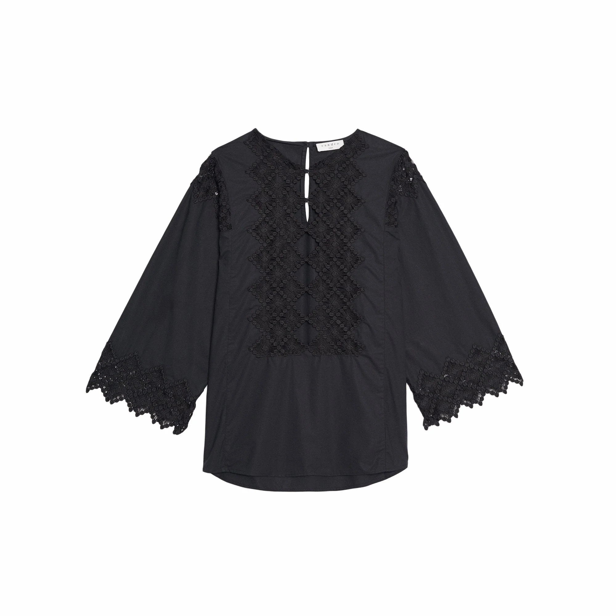 BLUSA BLACK, MARCA SANDRO. COMPOSICIÓN: CONSULTAR COMPOSICIÓN EN ETIQUETA INTERNA. INSTRUCCIONES DE LAVADO: CONSULTAR INSTRUCCIONES DE LAVADO EN ETIQUETA INTERNA.