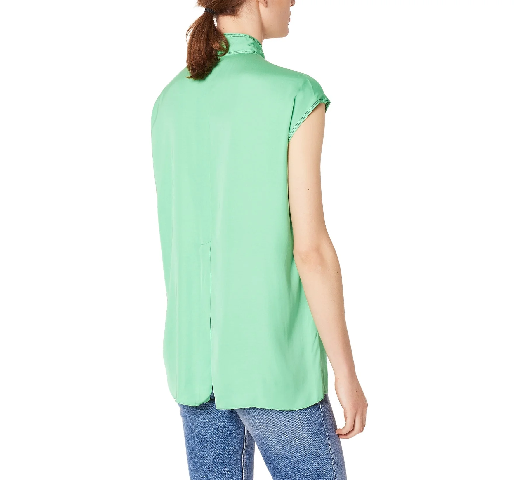 BLUSA LISA SIN MANGAS, CON CORBATA EN CUELLO. 100% VISCOSA. LIMPIEZA EN SECO PROFESIONAL. REVISAR ETIQUETA INTERNA DE LAVADO PARA MÁS INFORMACIÓN.