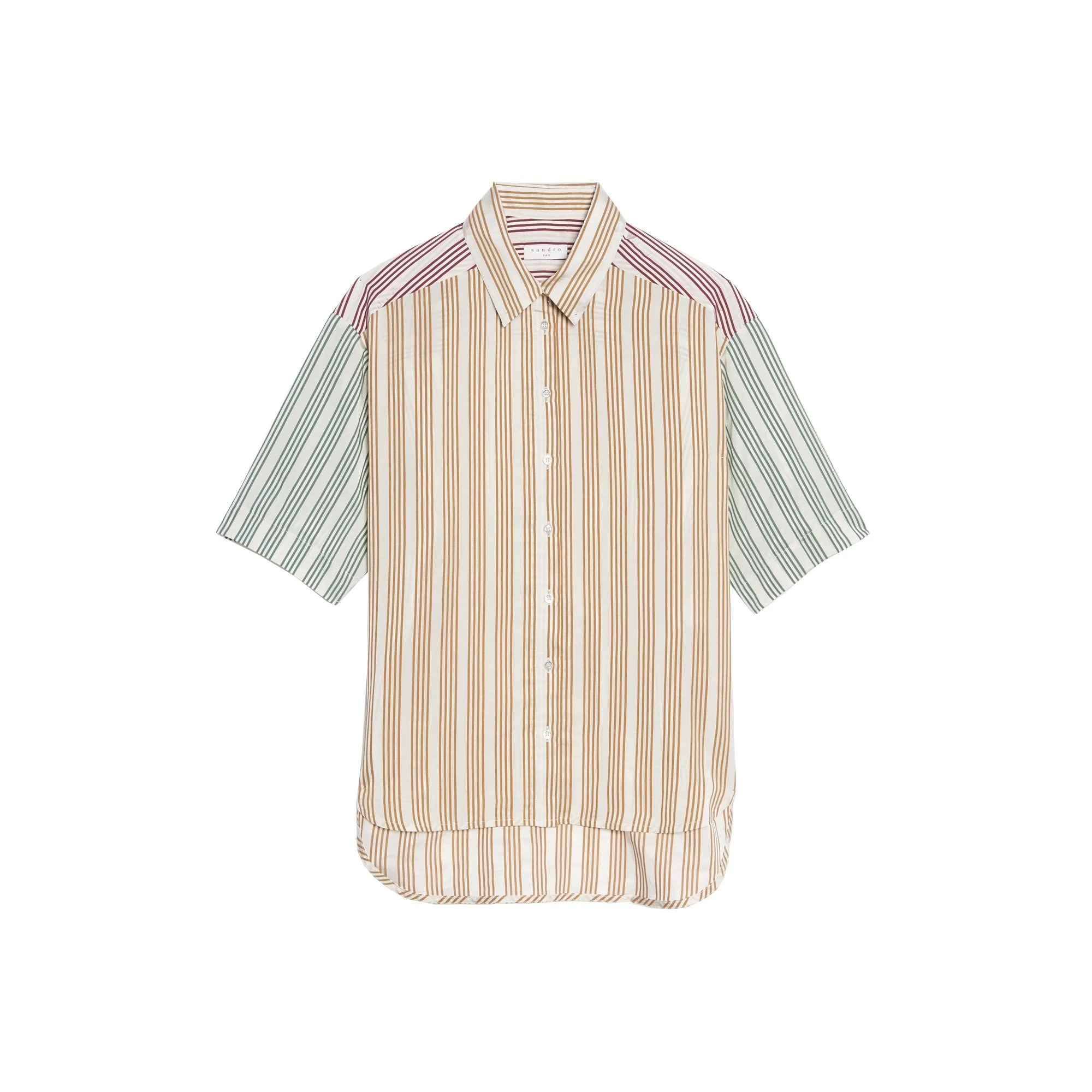 BLUSA BOTONES MANGA CORTA, MARCA SANDRO. CONSULTAR COMPOSICIÓN E INSTRUCCIONES DE LAVADO EN ETIQUETA INTERNA.
