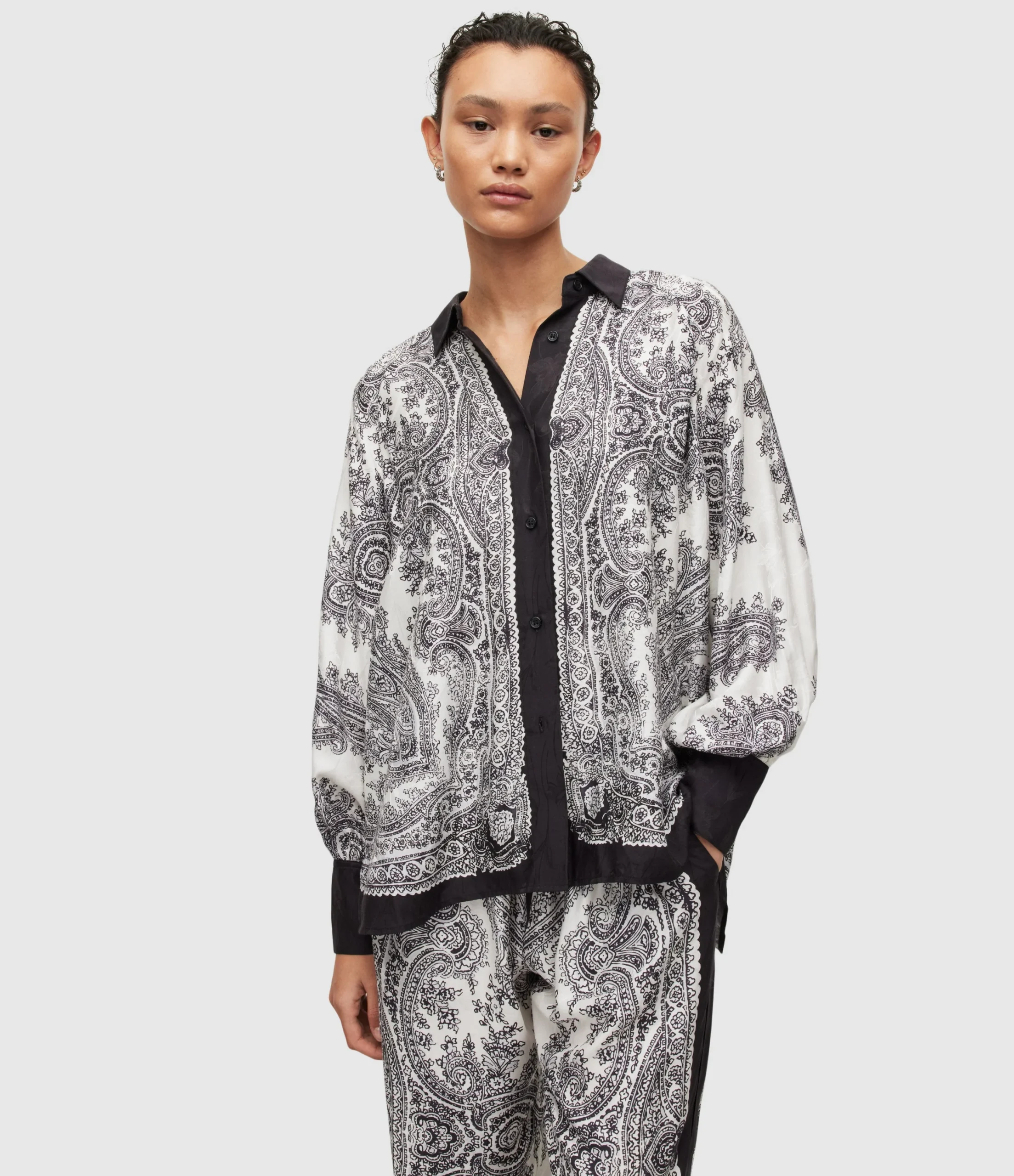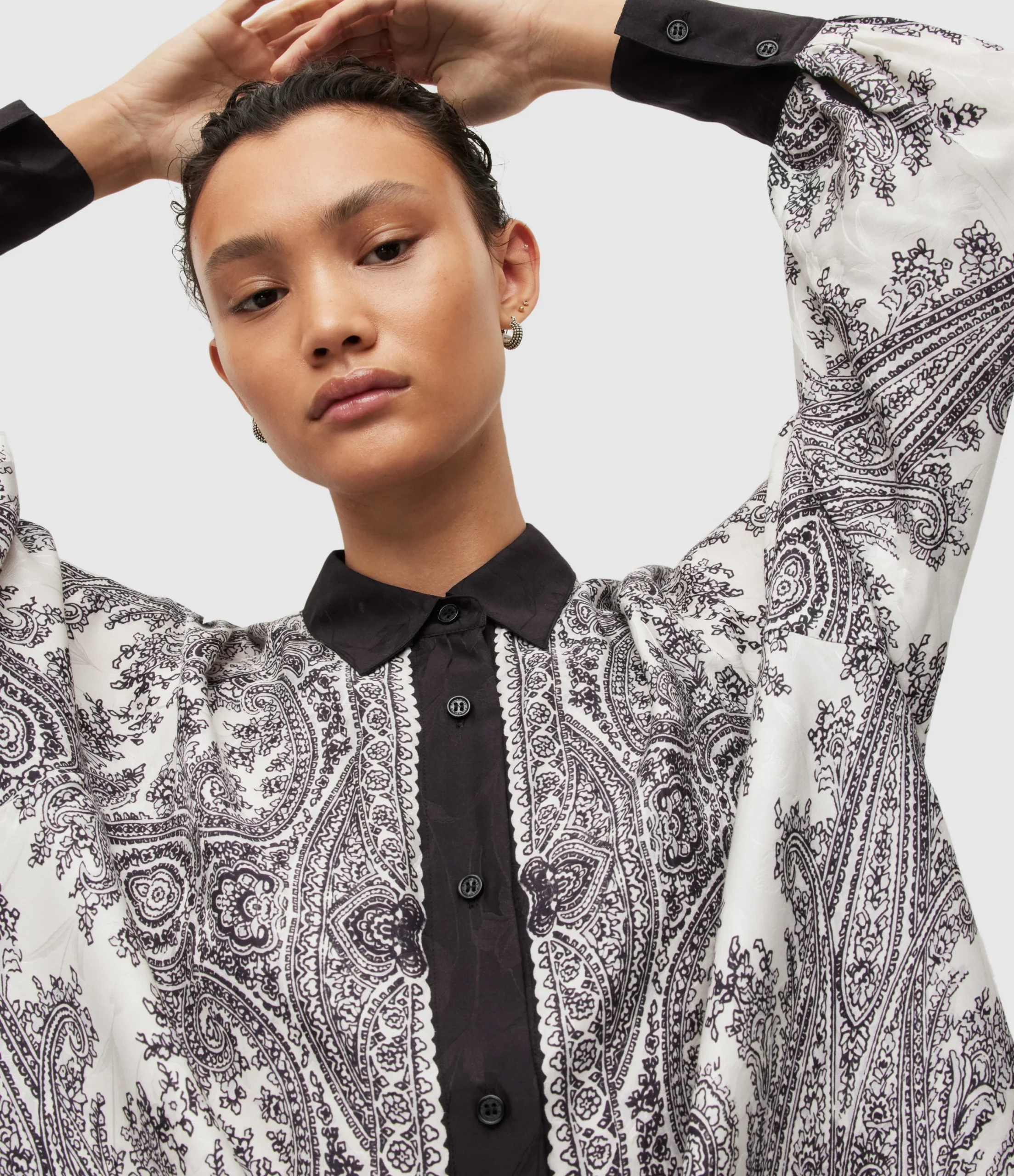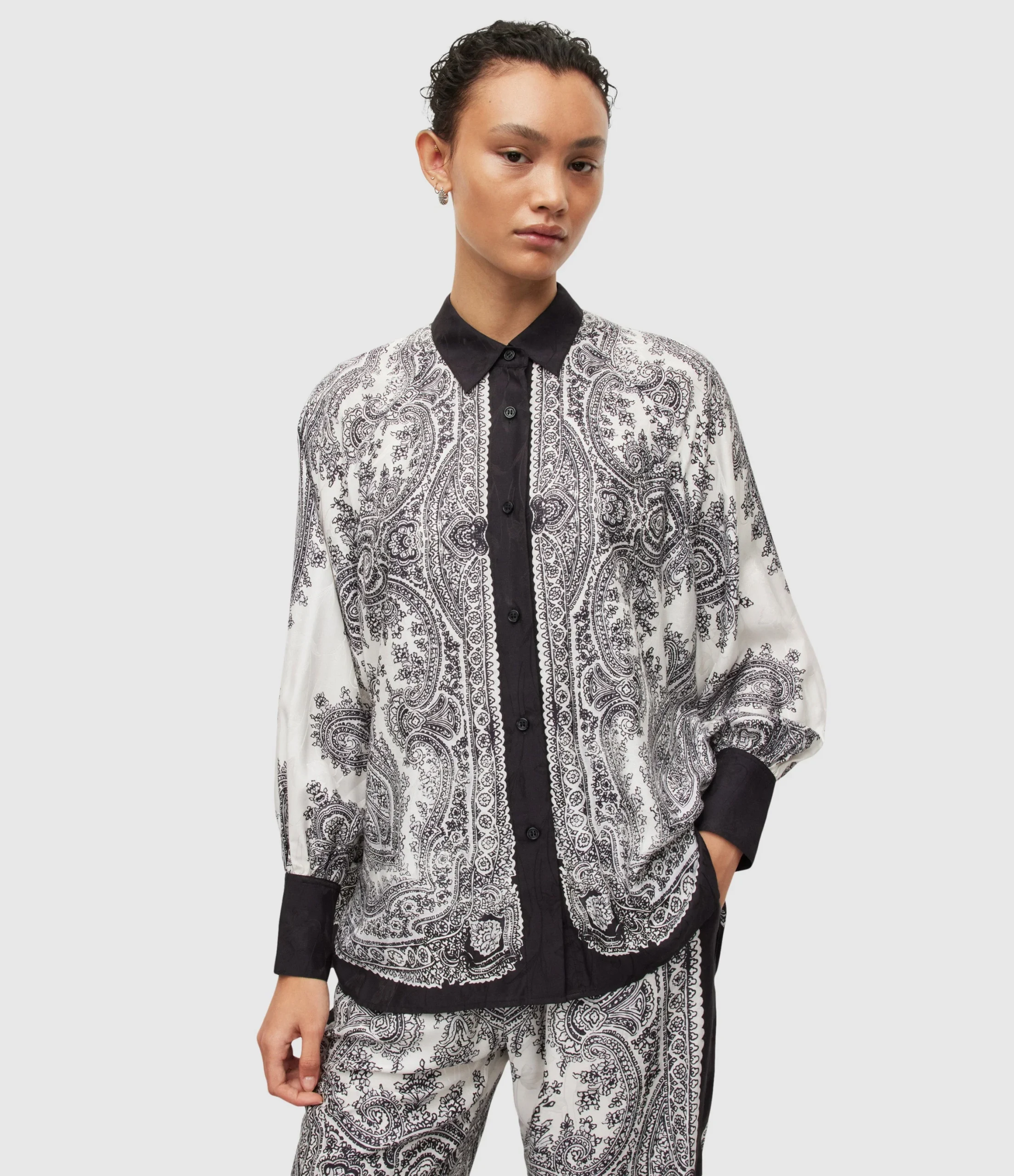 Blusa Oana Rafaela Blanco para mujer, marca AllSaints. COMPOSICIÓN Y LAVADO: Consultar etiqueta interna.