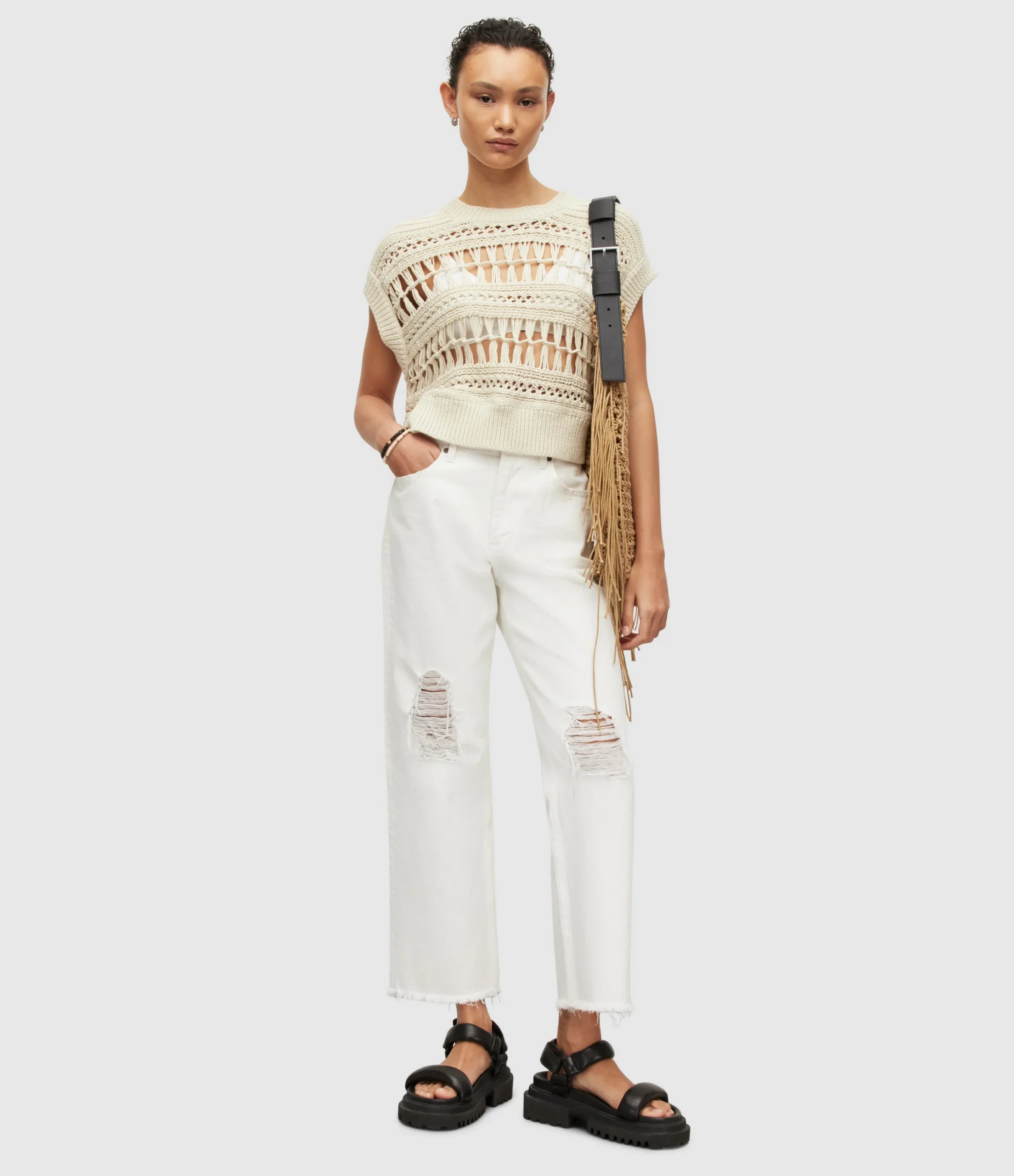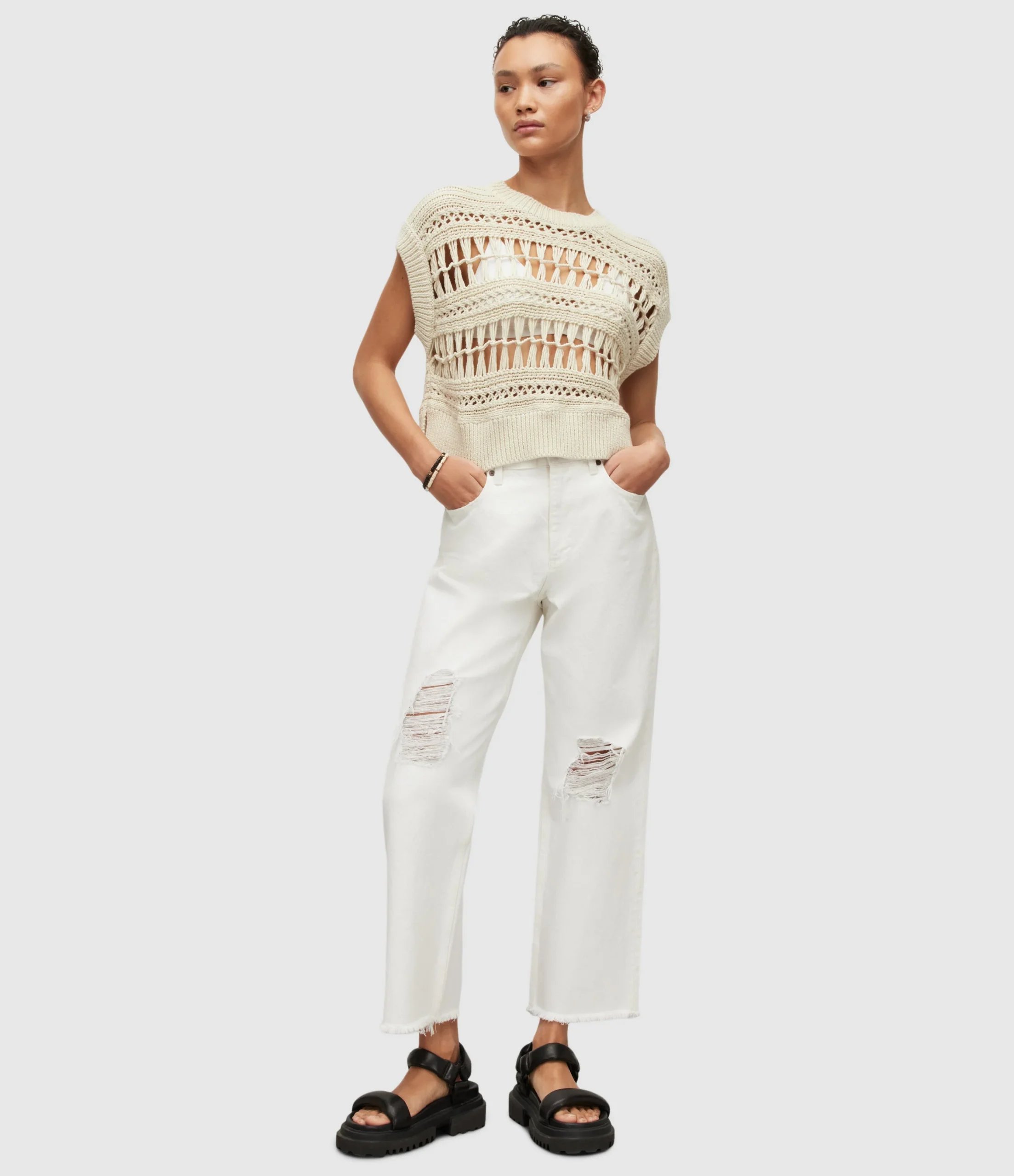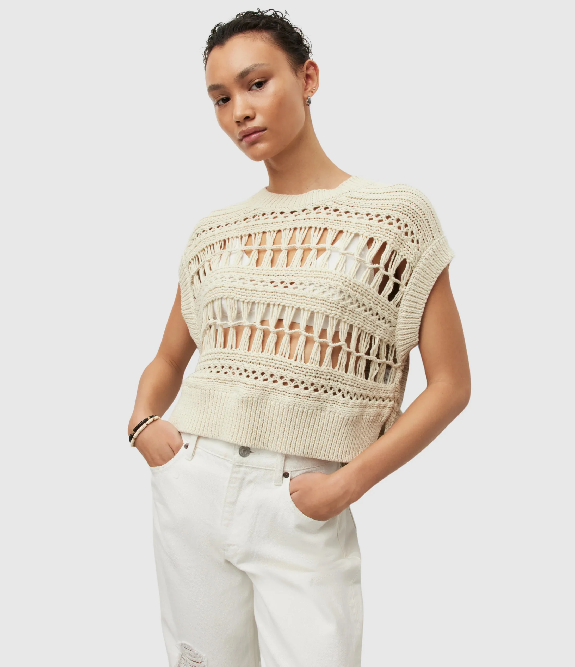 Blusa Rafaela Blanco para mujer, marca AllSaints, estilo tank. COMPOSICIÓN Y LAVADO: Consultar etiqueta interna.
