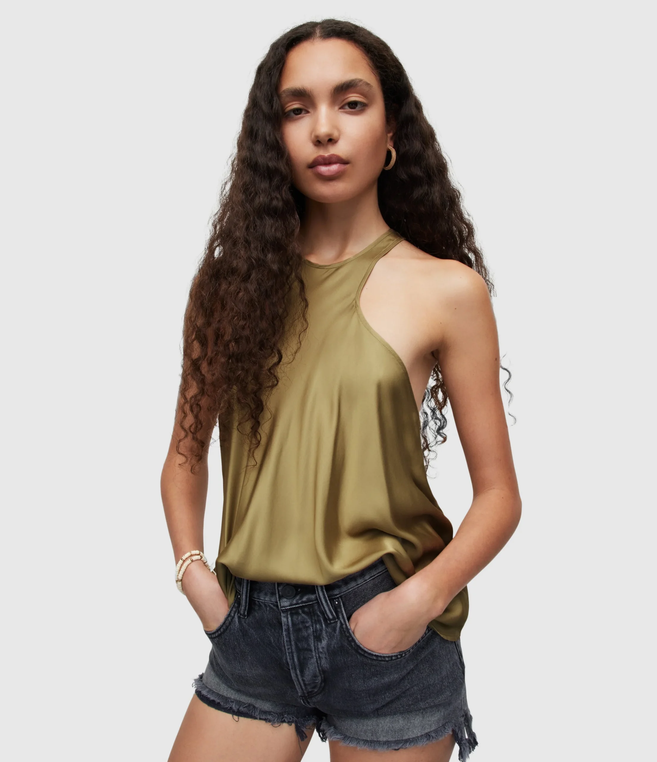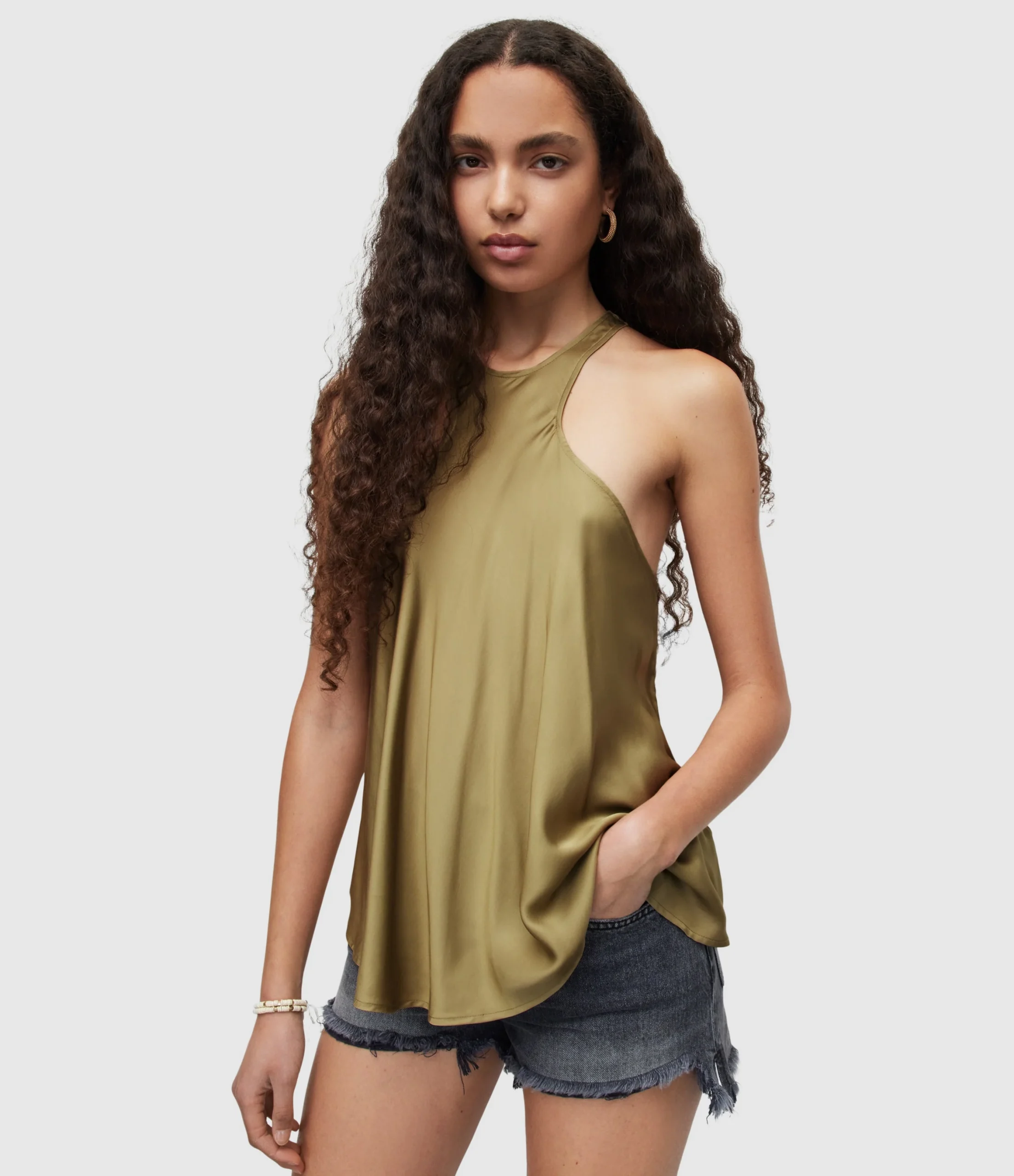 Blusa Verna Verde para mujer, marca AllSaints. COMPOSICIÓN Y LAVADO: Consultar etiqueta interna.
