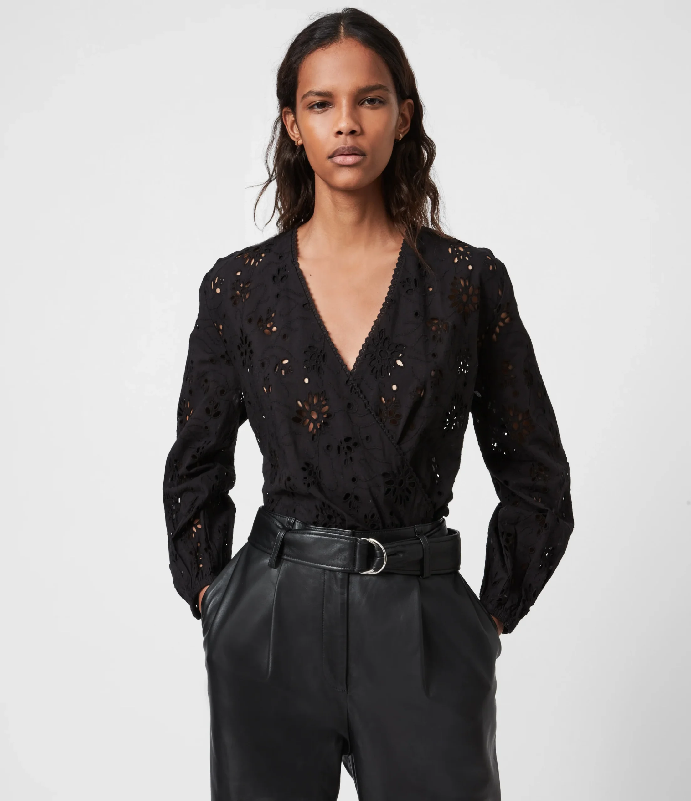 Bodysuit Amara Broderie Black, marca AllSaints. Composición: 100% COTTON