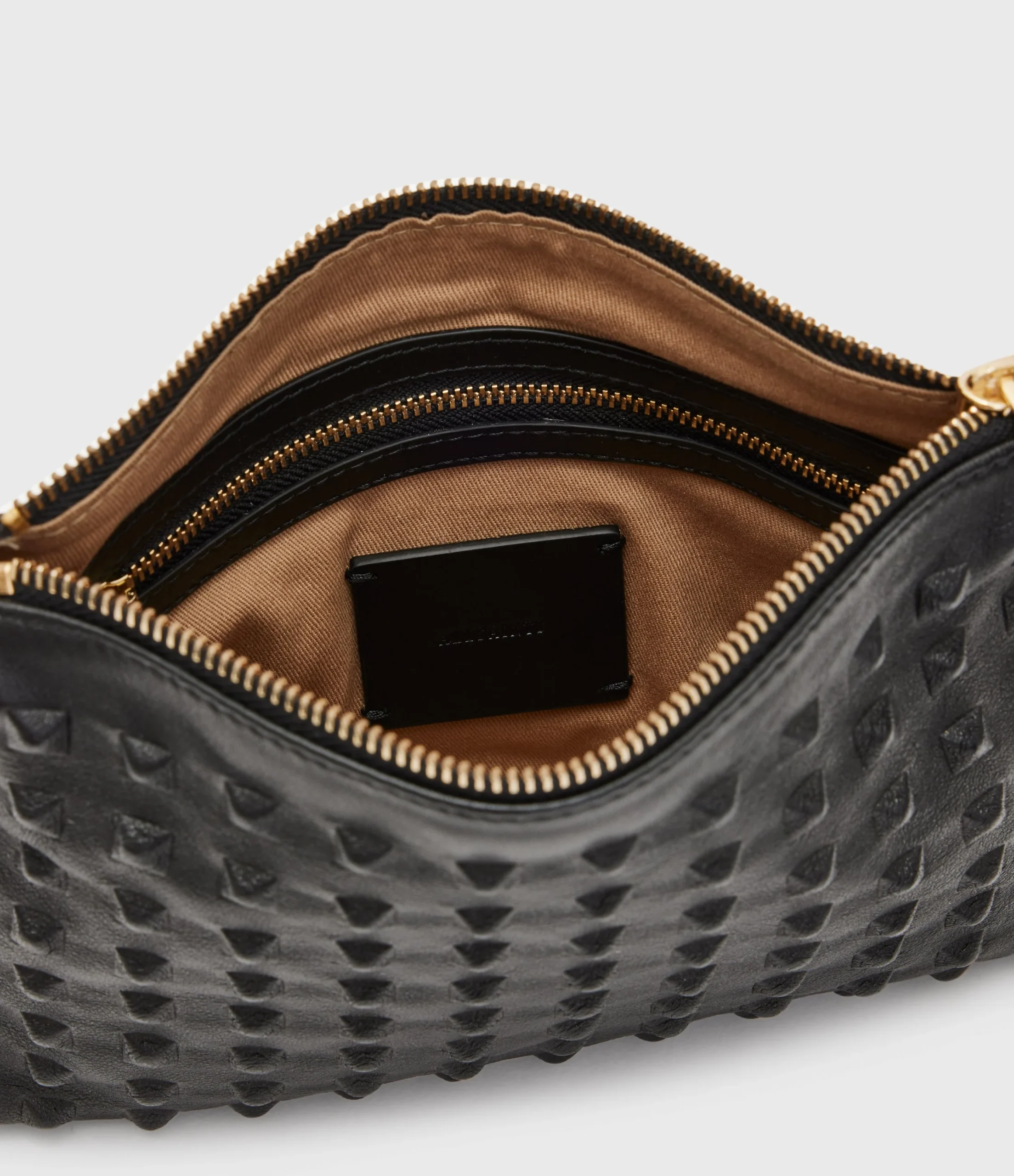 Bolsa Eve Negro para mujer, marca AllSaints, estilo crossbody con estoperoles. COMPOSICIÓN Y LAVADO: Consultar etiqueta interna.