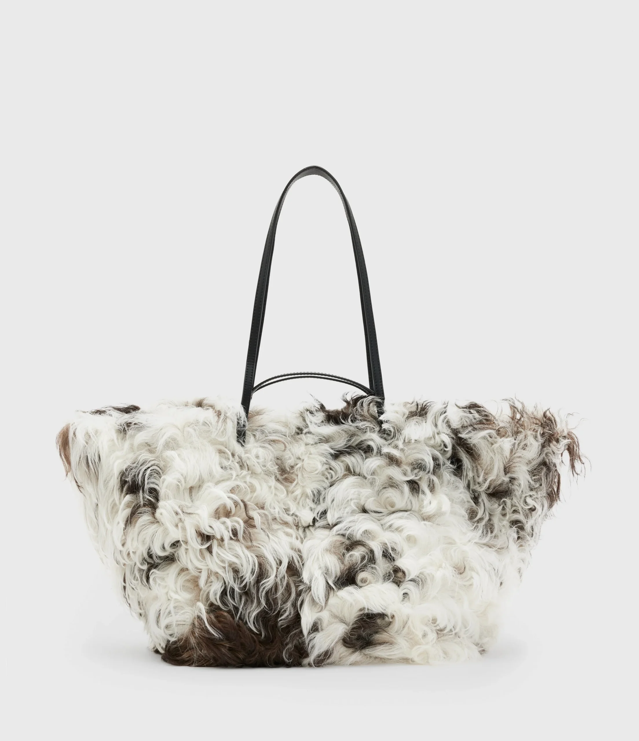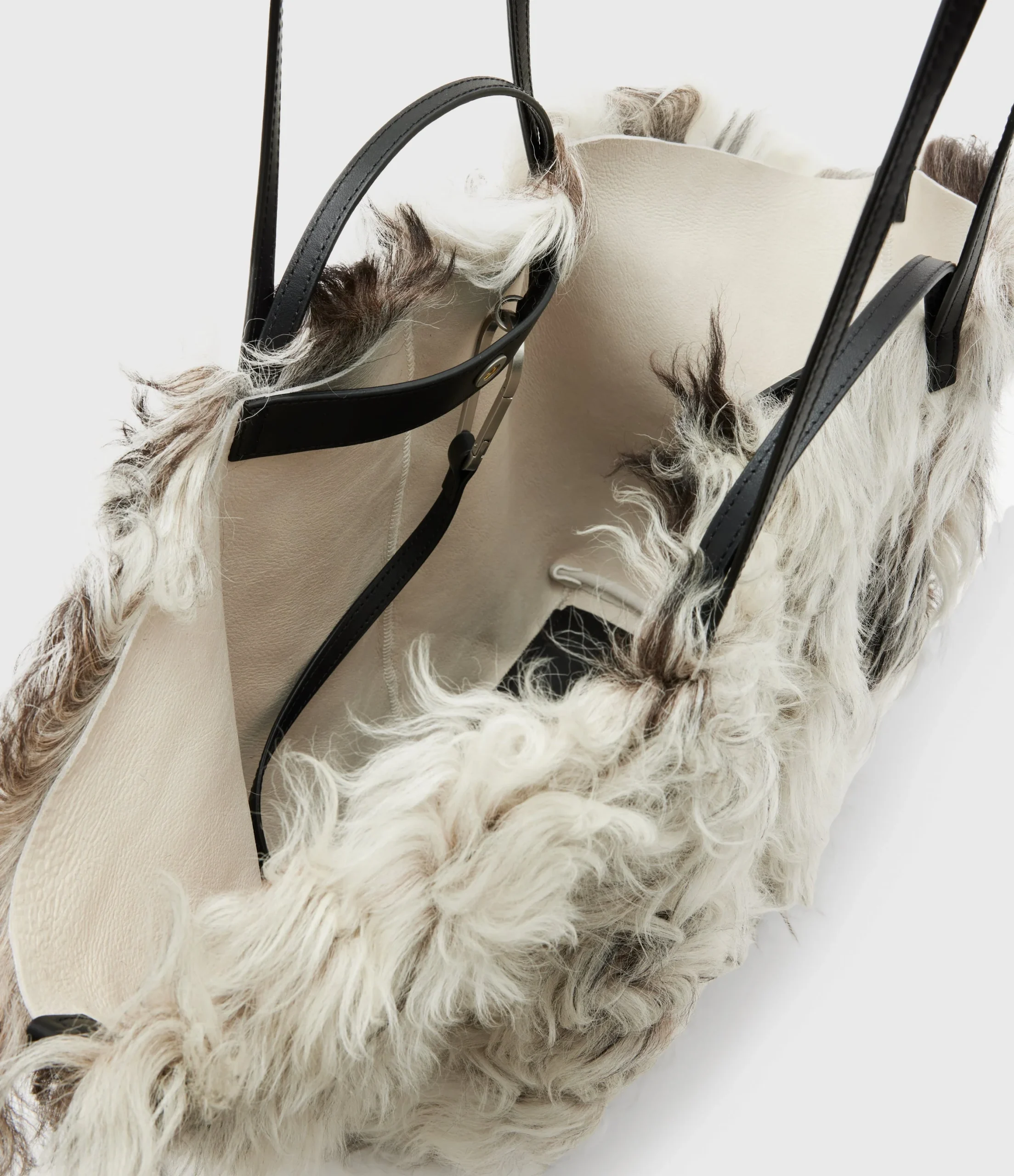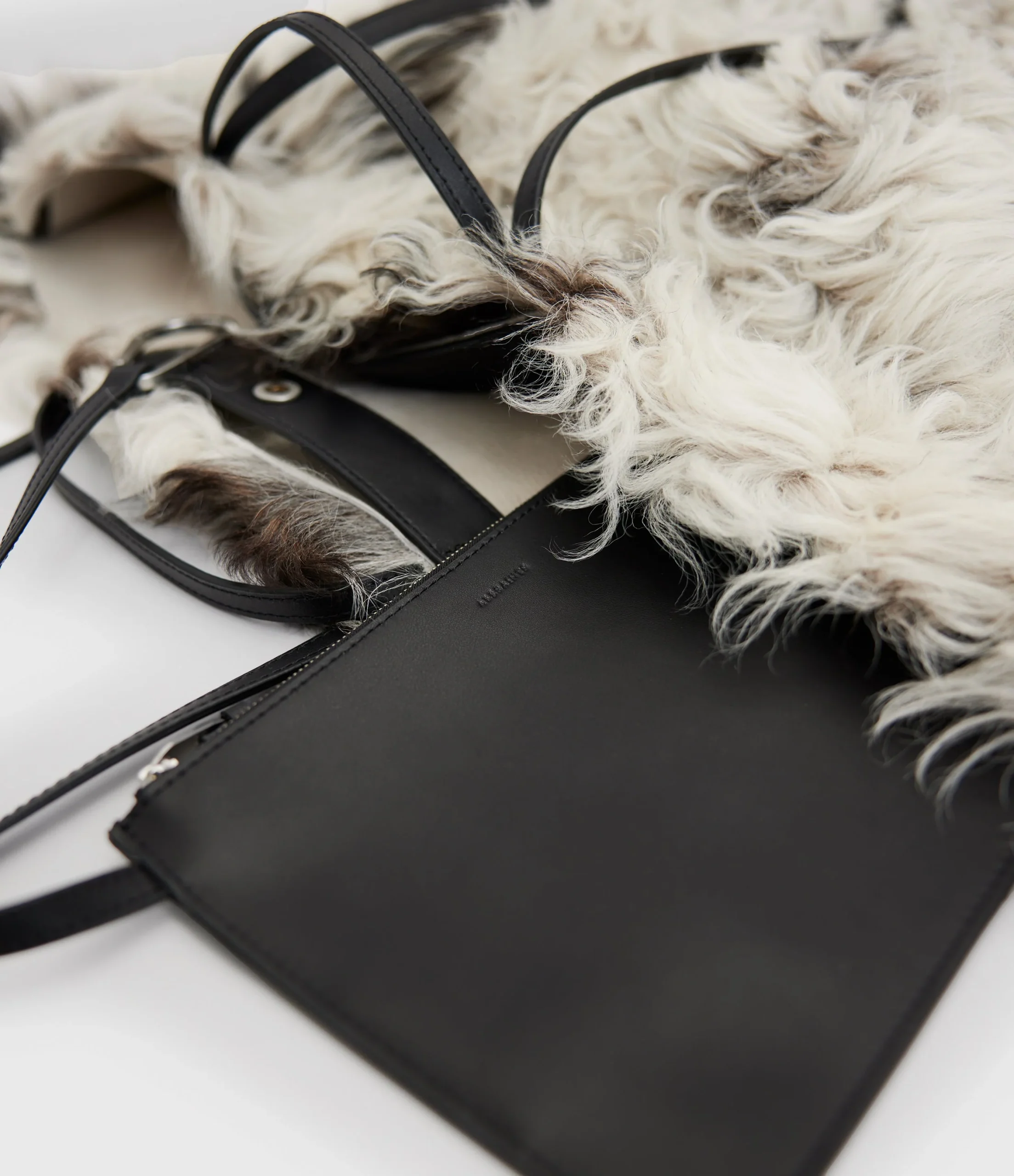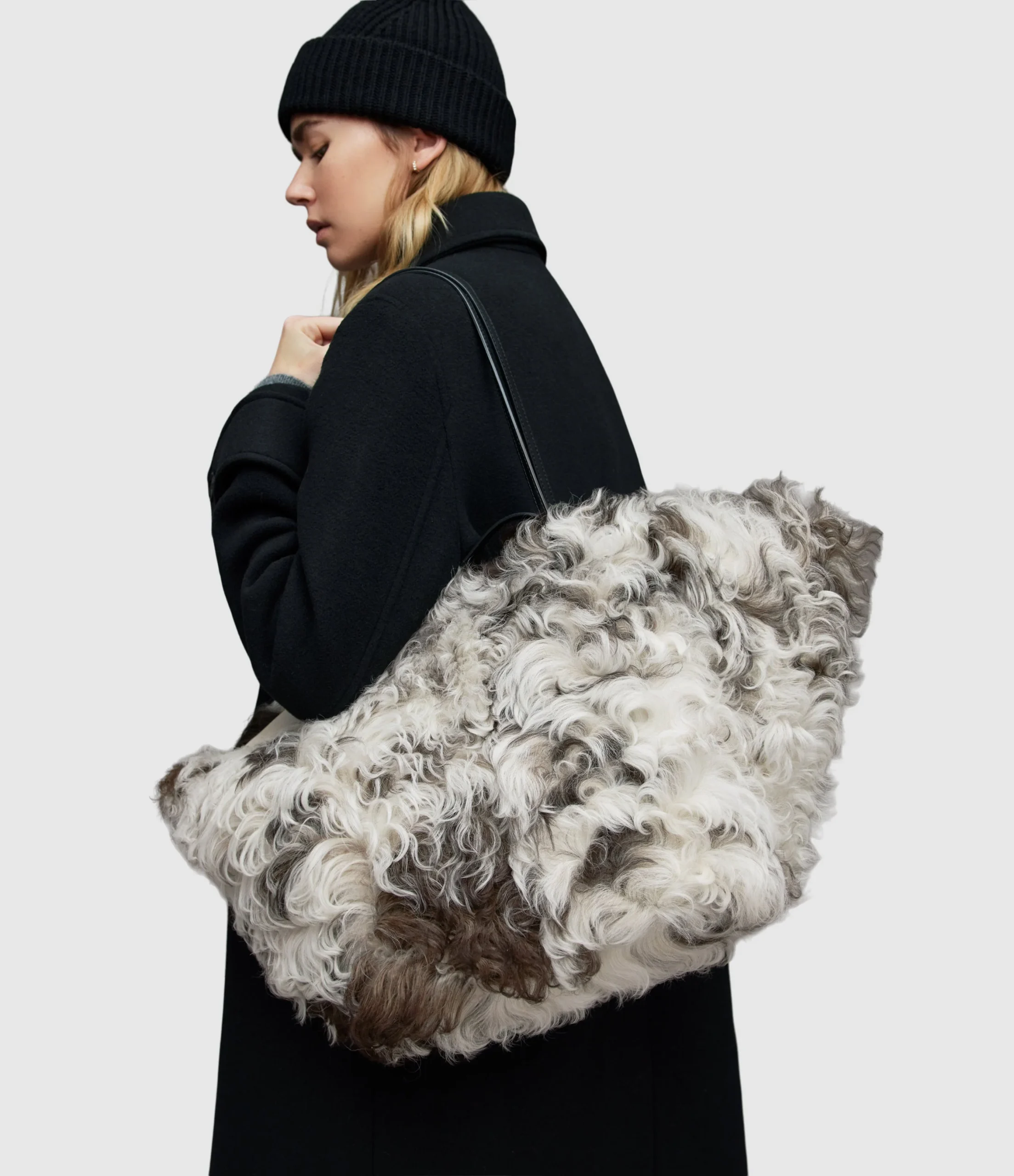 Bolsa Hannah Negro para mujer, marca AllSaints, estilo tote de borrega estilo shearling. COMPOSICIÓN Y LAVADO: Consultar etiqueta interna.