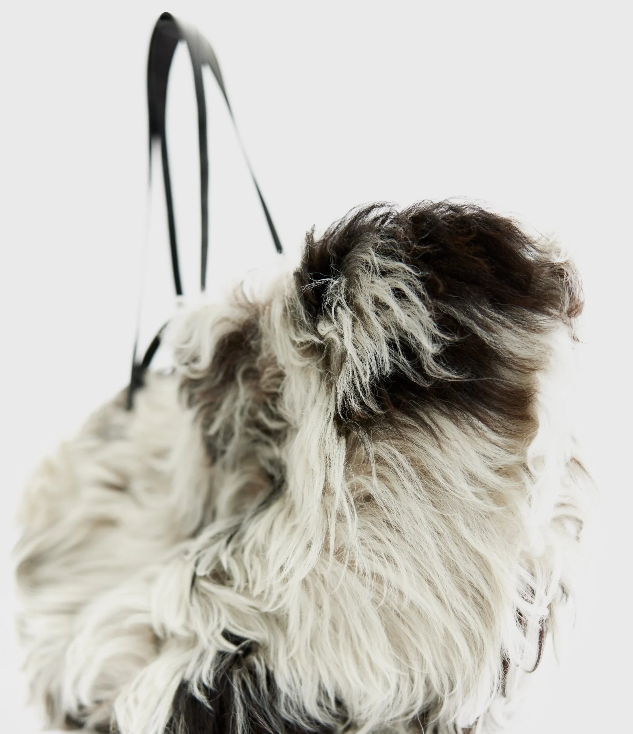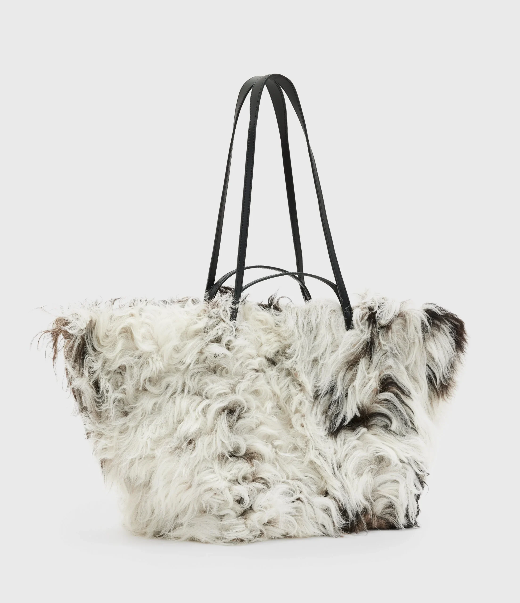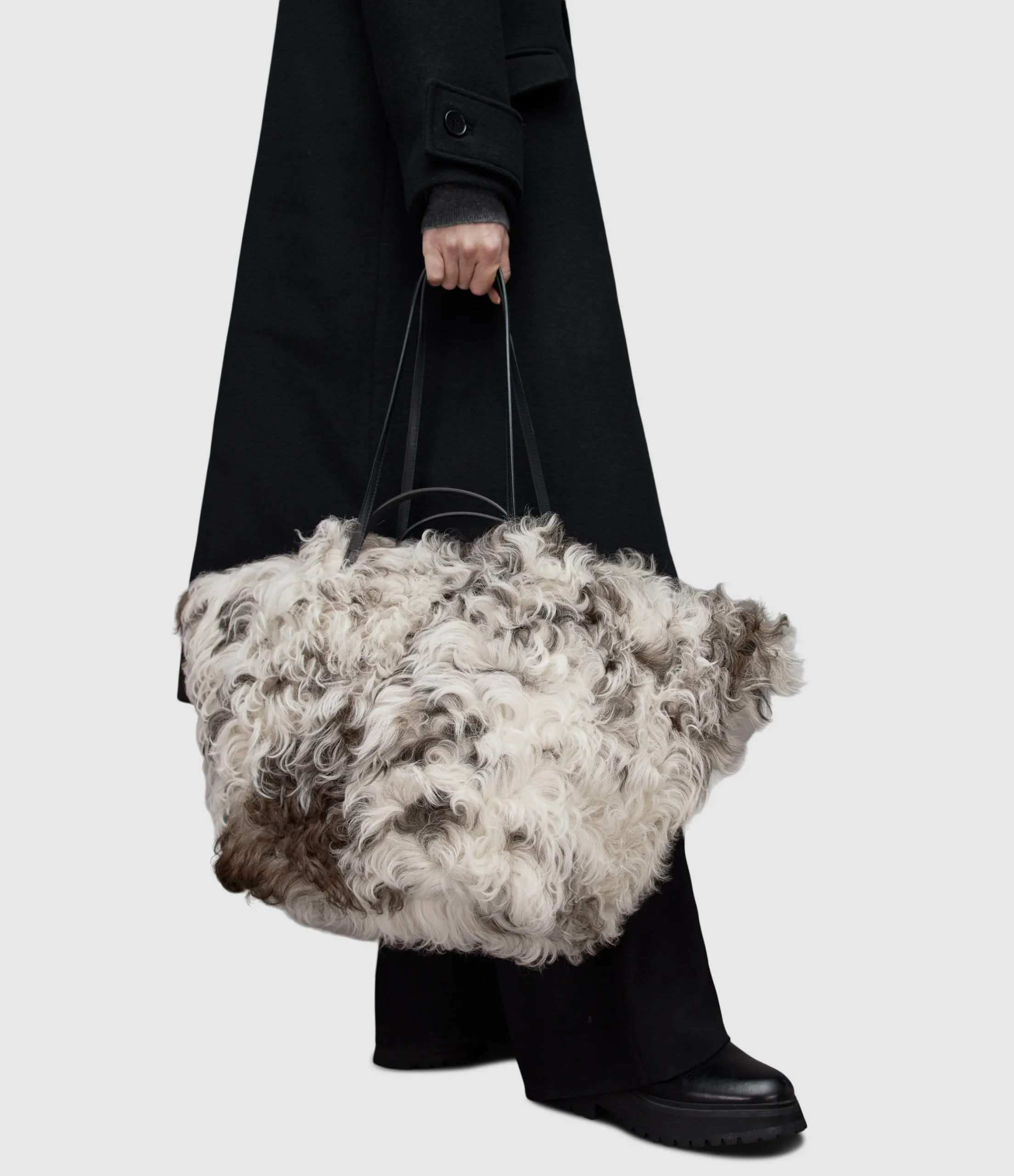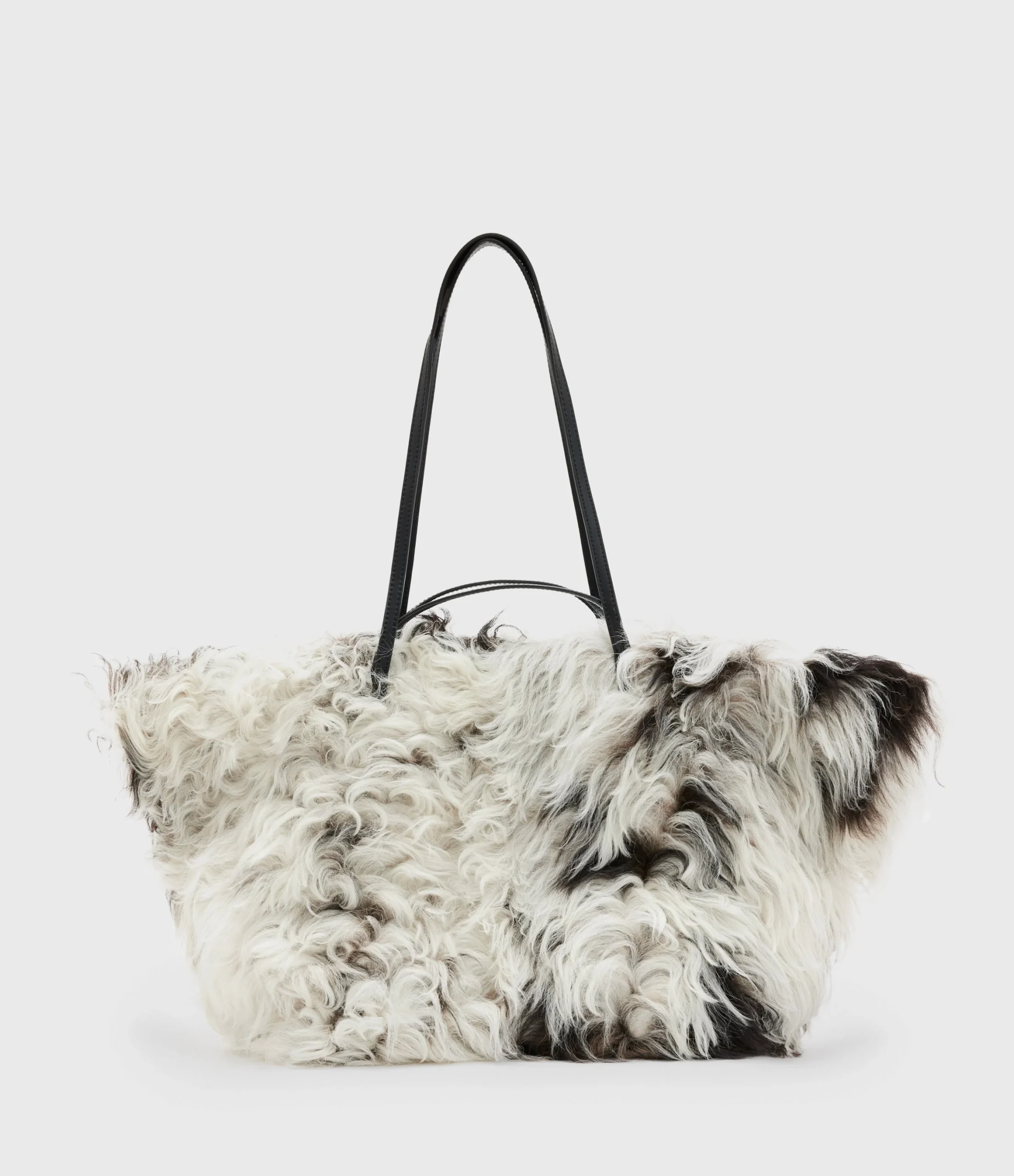 Bolsa Hannah Negro para mujer, marca AllSaints, estilo tote de borrega estilo shearling. COMPOSICIÓN Y LAVADO: Consultar etiqueta interna.