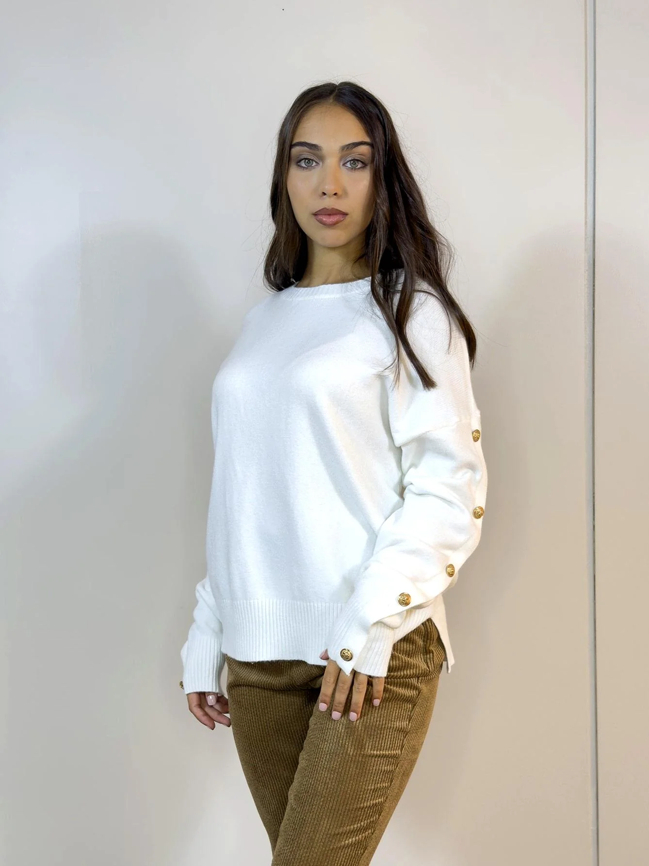 ✨ Por qué te va a encantar: Blanco puro que nunca pasa de moda, detalles Bottoni que marcan tendencia, mezcla de fibras para confort y suavidad, versatilidad ideal para cualquier ocasión.