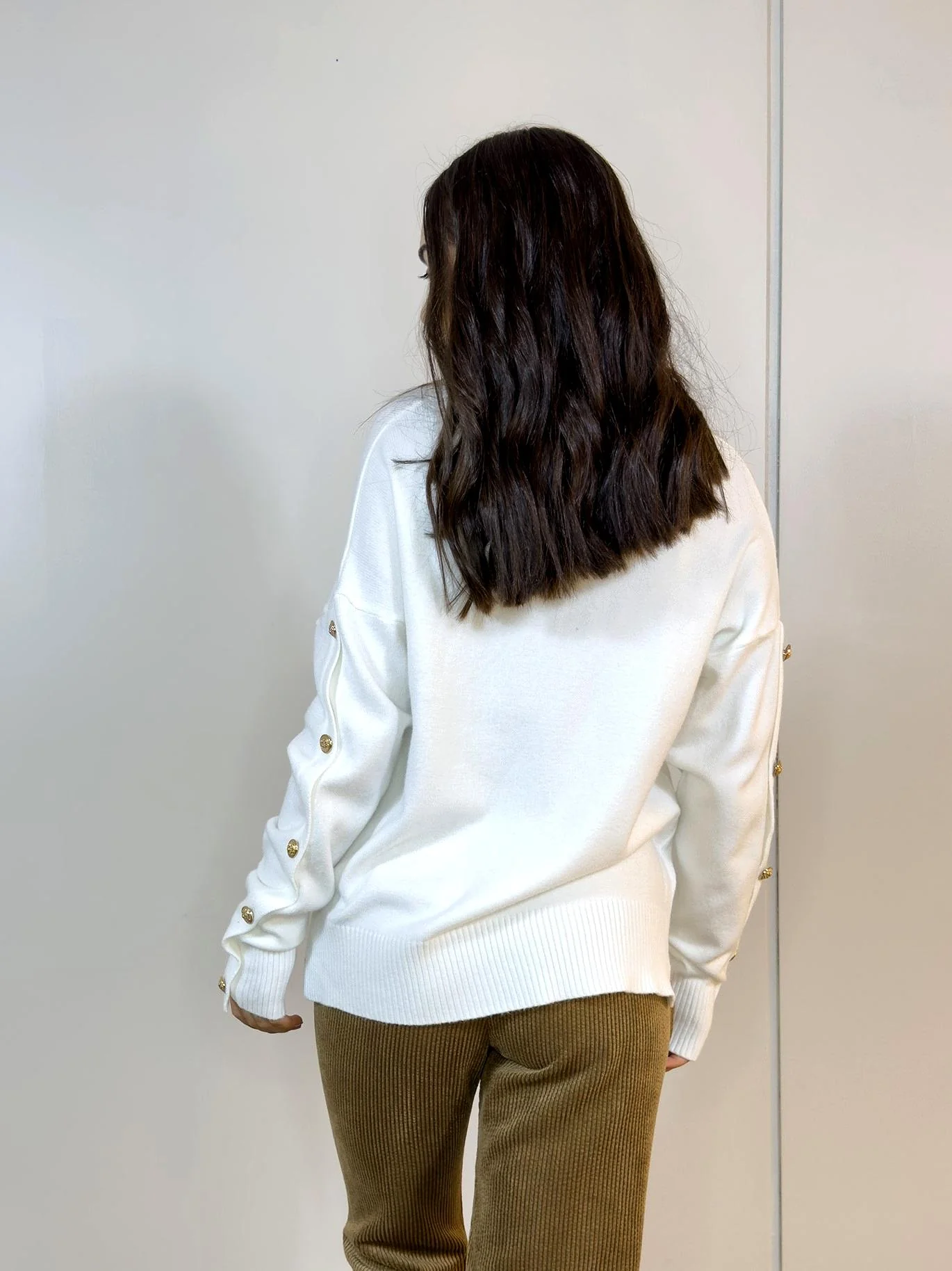 ¡Descubrí la elegancia minimalista del Buzo Bottoni Blanco! Este buzo te aporta sofisticación y calidez, ideal para mujeres que buscan comodidad con un toque de distinción.