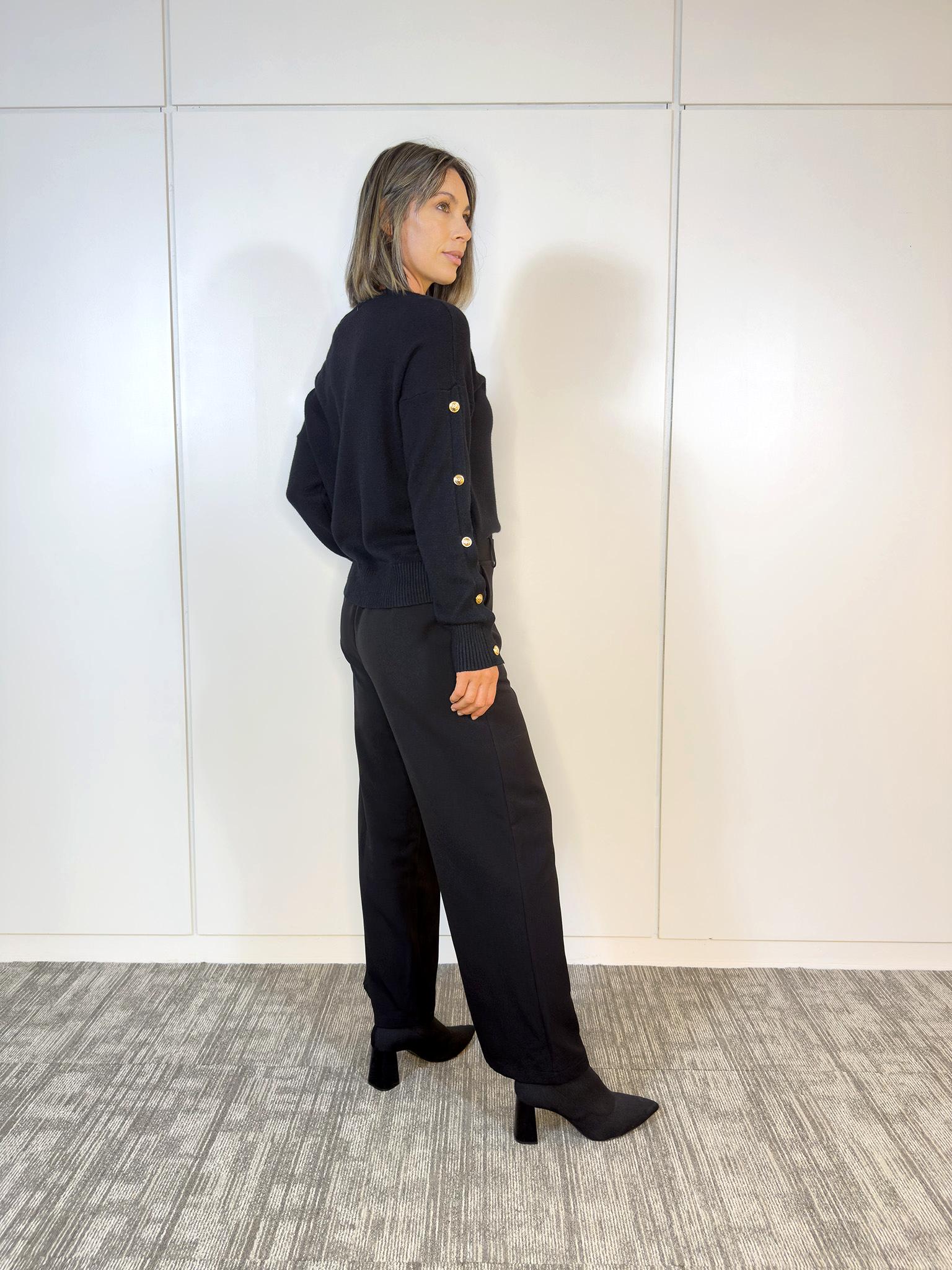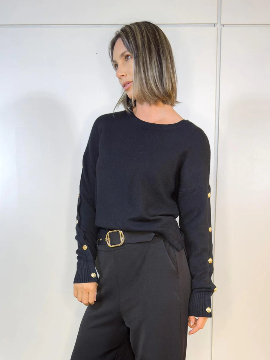 ¡Descubrí la elegancia atemporal del Buzo Bottoni Negro! Este buzo te aporta una confianza absoluta y estilo, ideal para mujeres que buscan comodidad sin sacrificar sofisticación con un toque de autoridad.