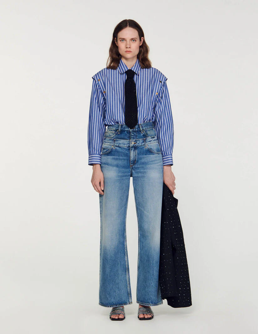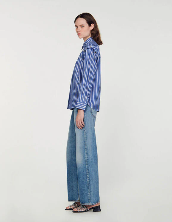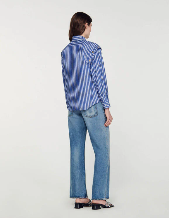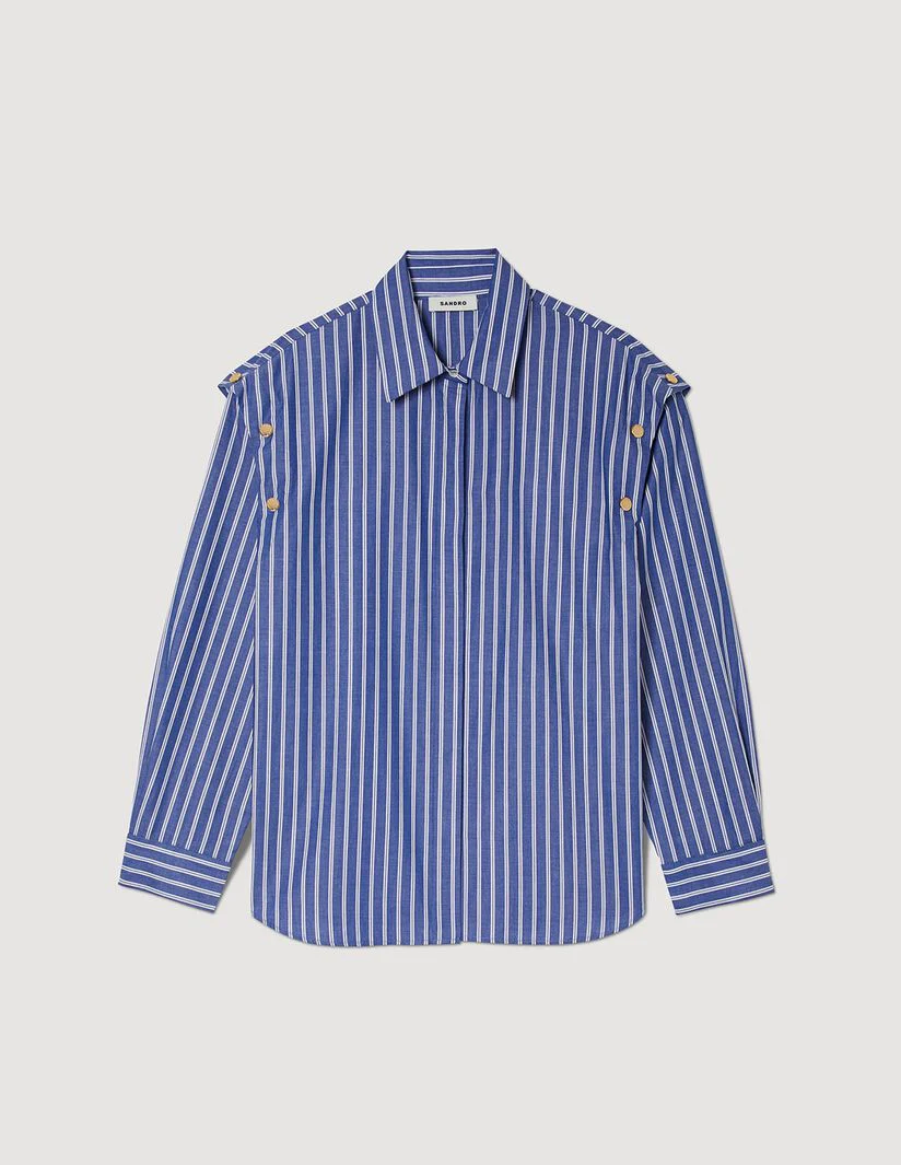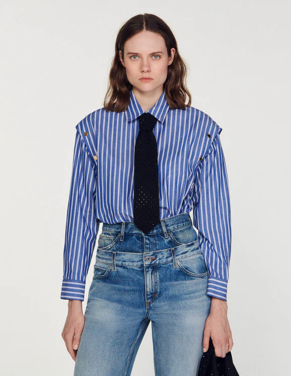Camisa a rayas con mangas largas desmontables y botones de presión en las sisas, cuello de camisa y cierre de tapeta de botones recubiertos.• Camisa a rayas Sandro Femme