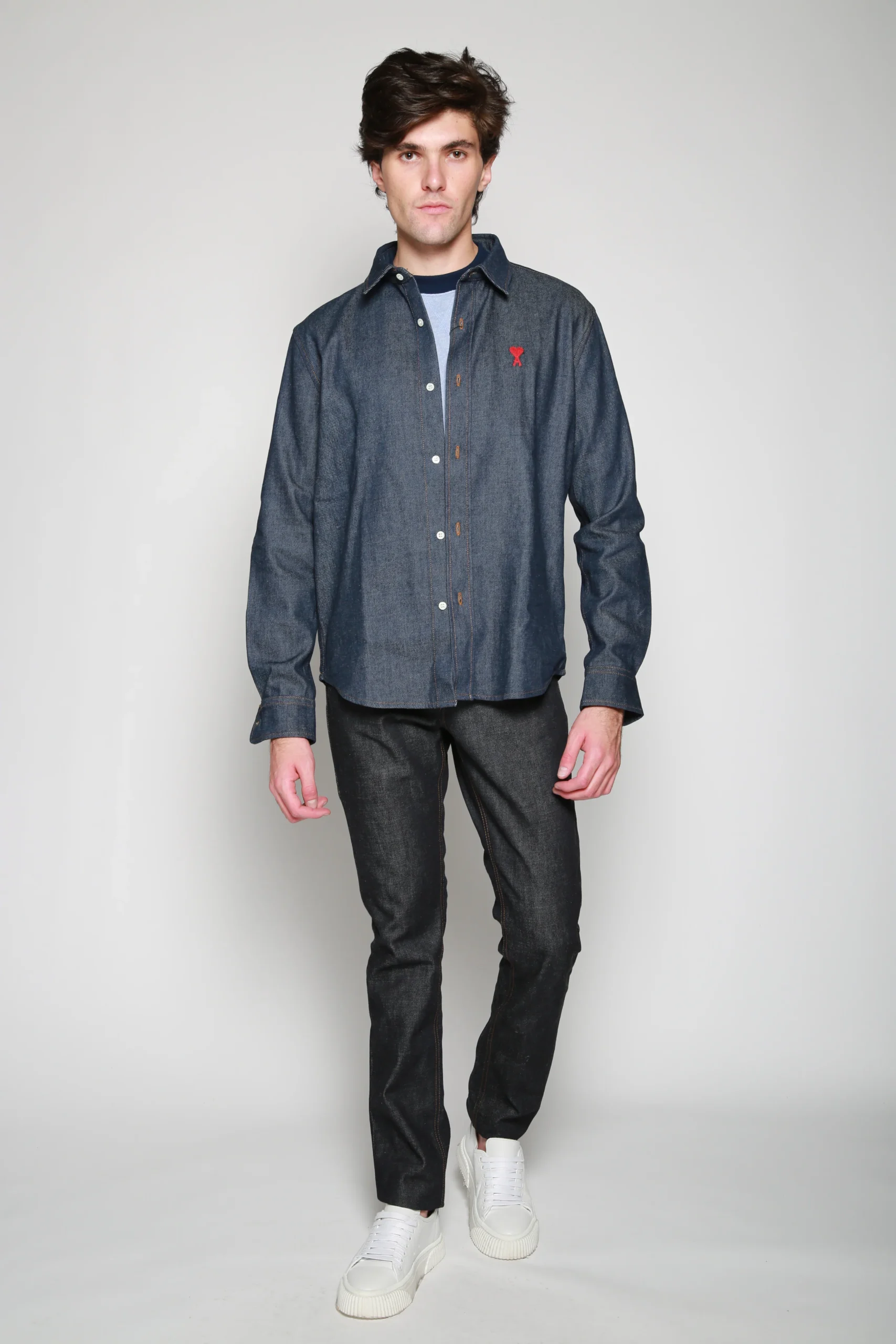 Camisa Azul para hombre, marca AMI Paris. COMPOSICIÓN Y LAVADO: Consultar etiqueta interna.