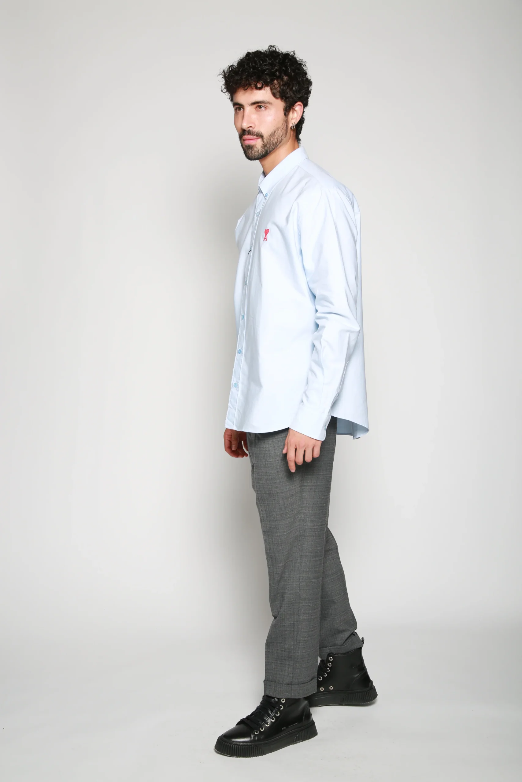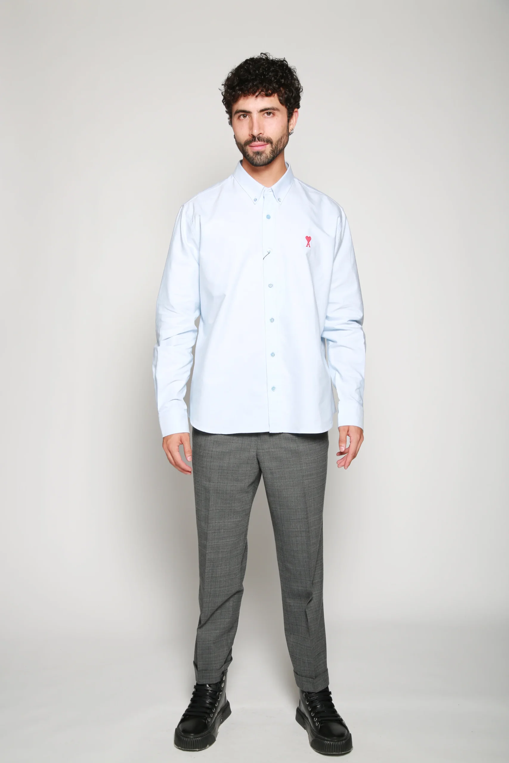 Camisa Azul Claro para hombre, marca AMI Paris. COMPOSICIÓN Y LAVADO: Consultar etiqueta interna.