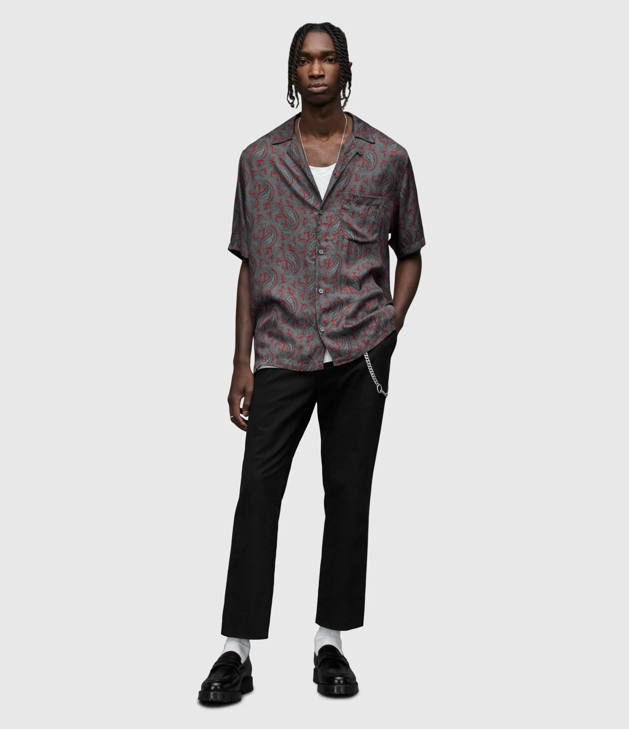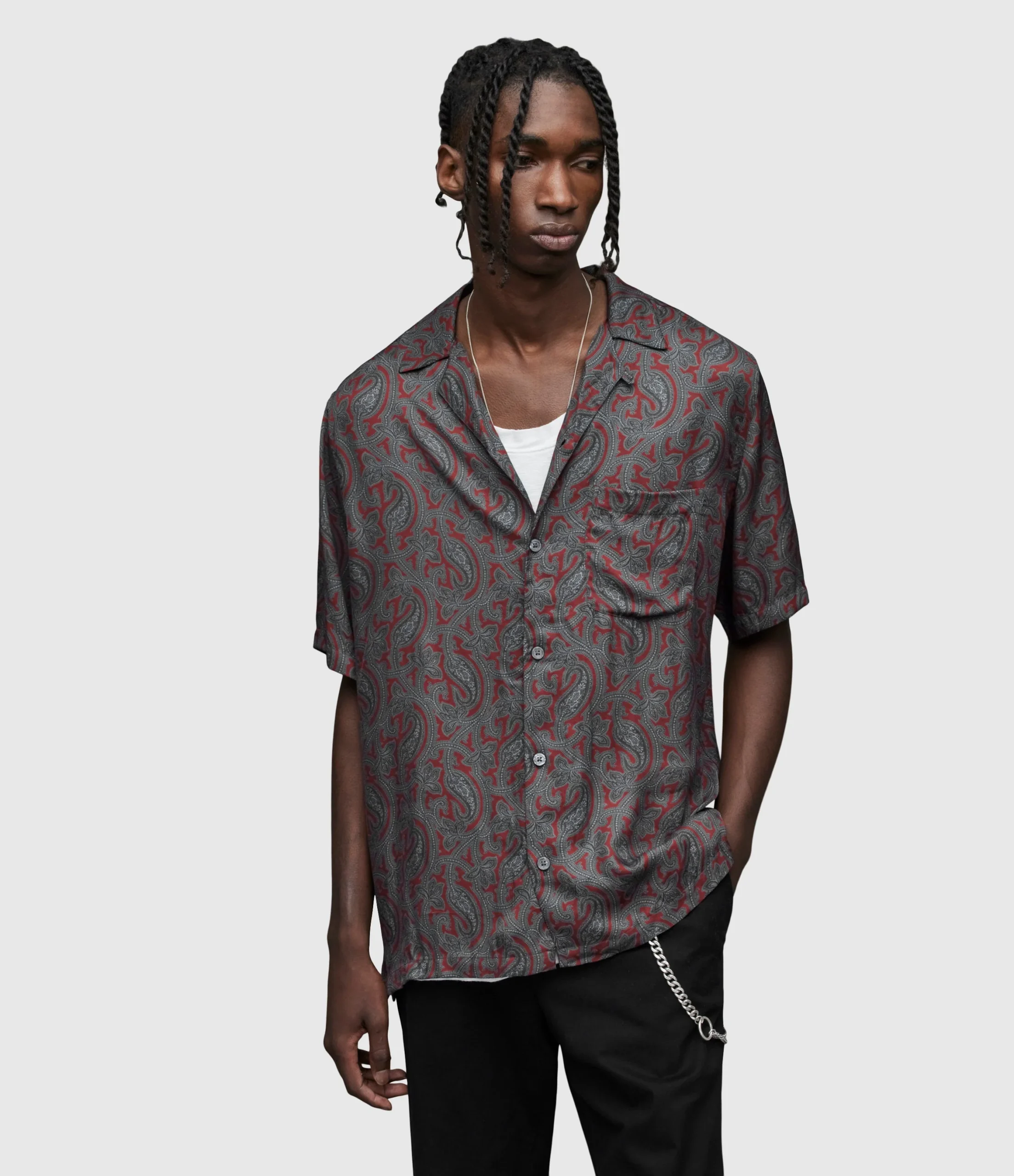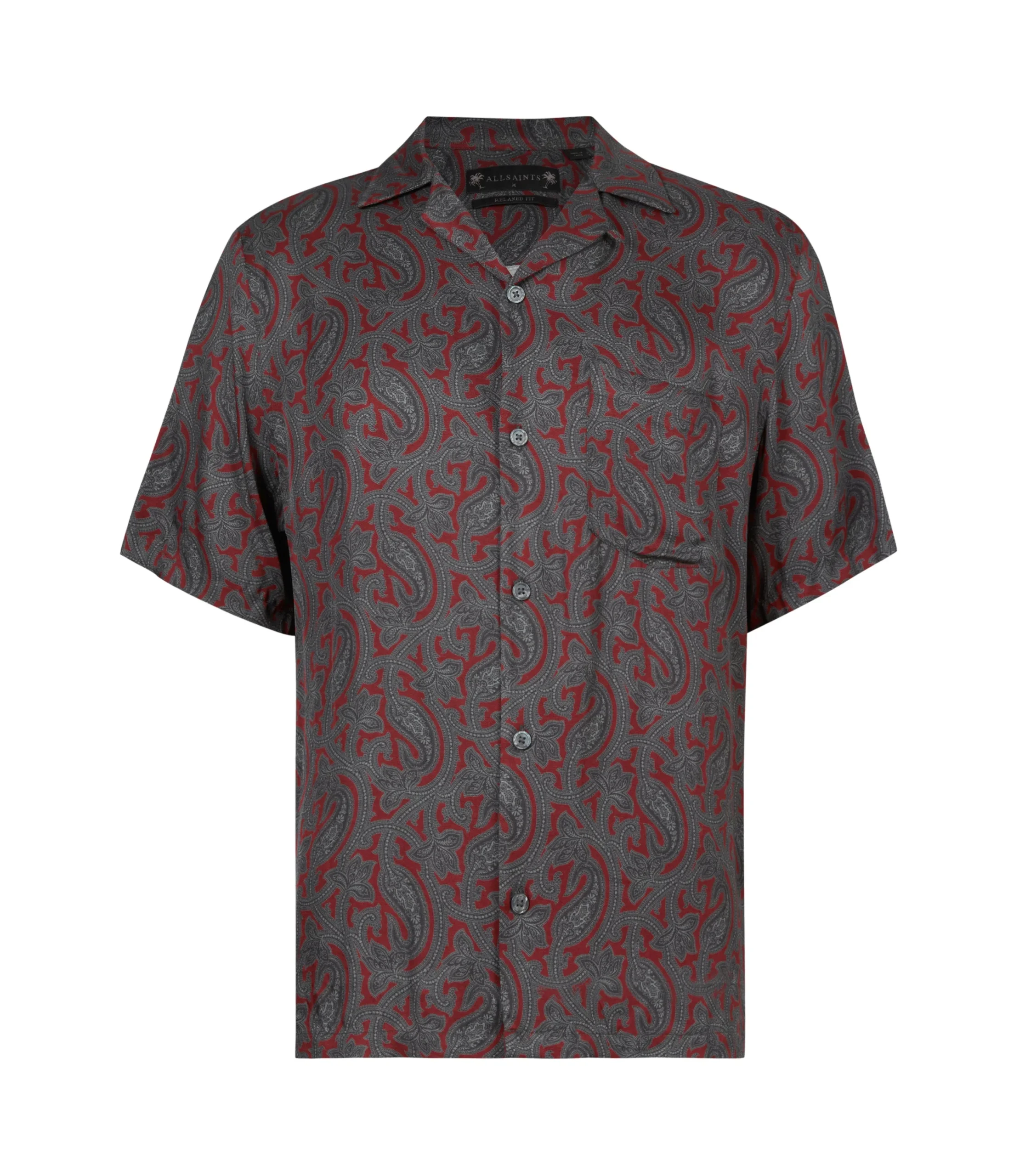 Camisa Idaho Rojo para hombre, marca AllSaints, de manga corta. COMPOSICIÓN Y LAVADO: Consultar etiqueta interna.