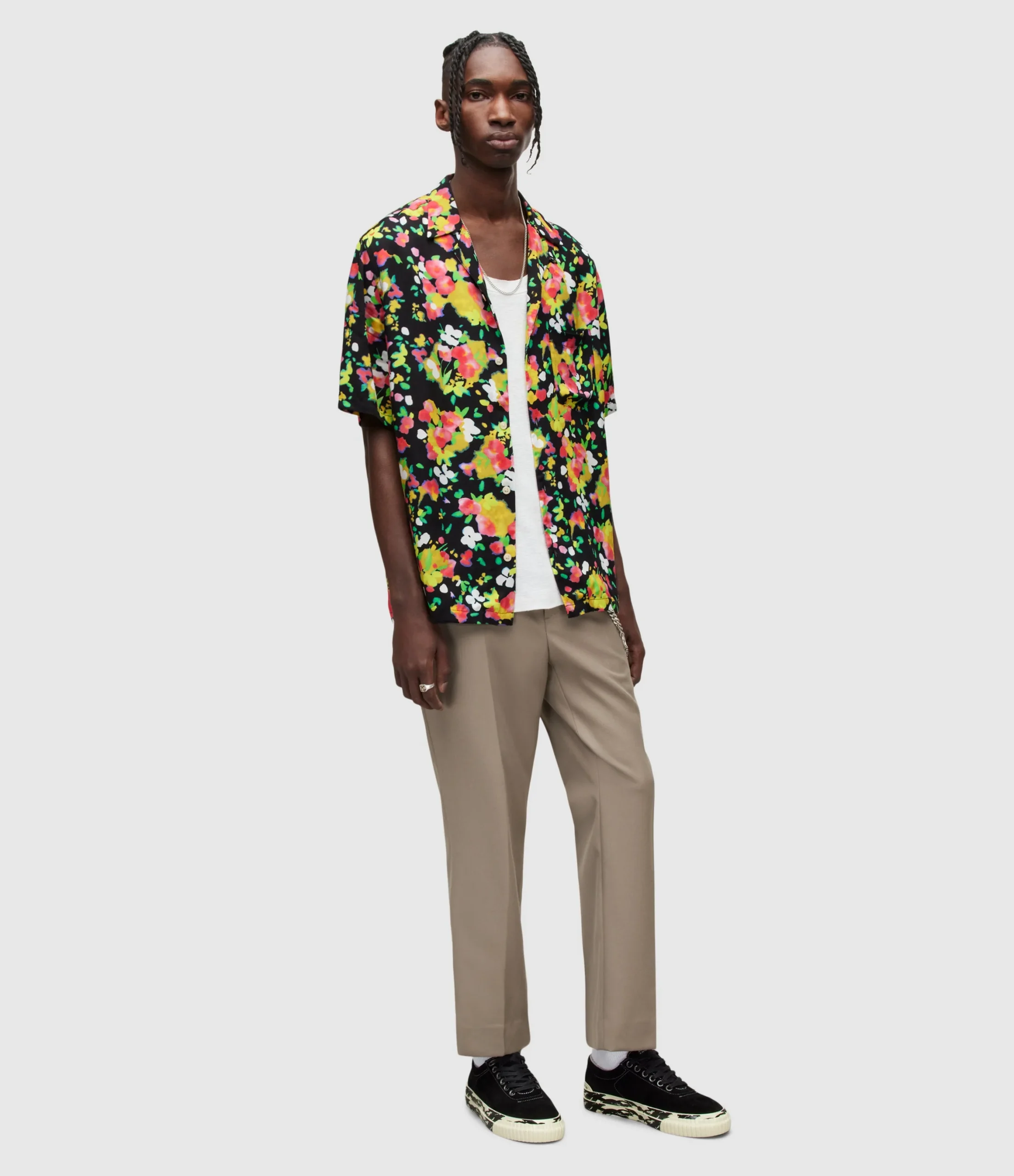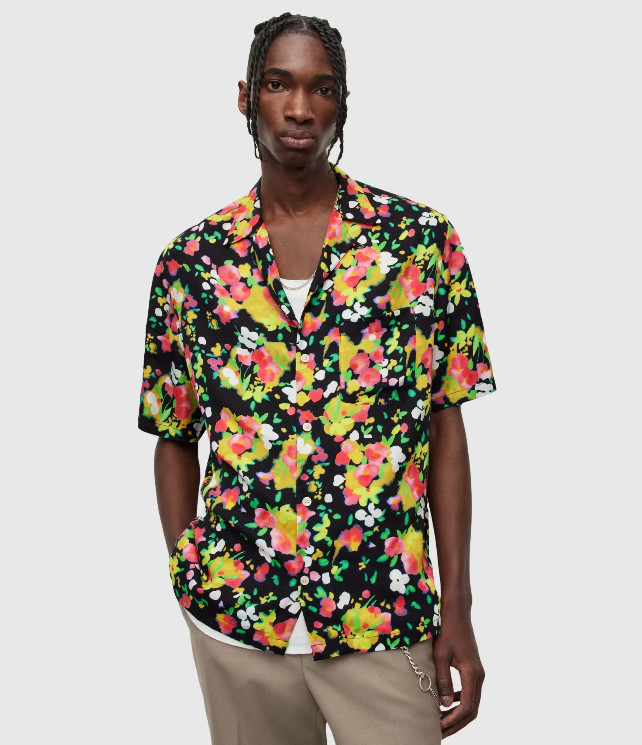 Camisa Marino Negro para hombre, marca AllSaints, de manga corta. COMPOSICIÓN Y LAVADO: Consultar etiqueta interna.