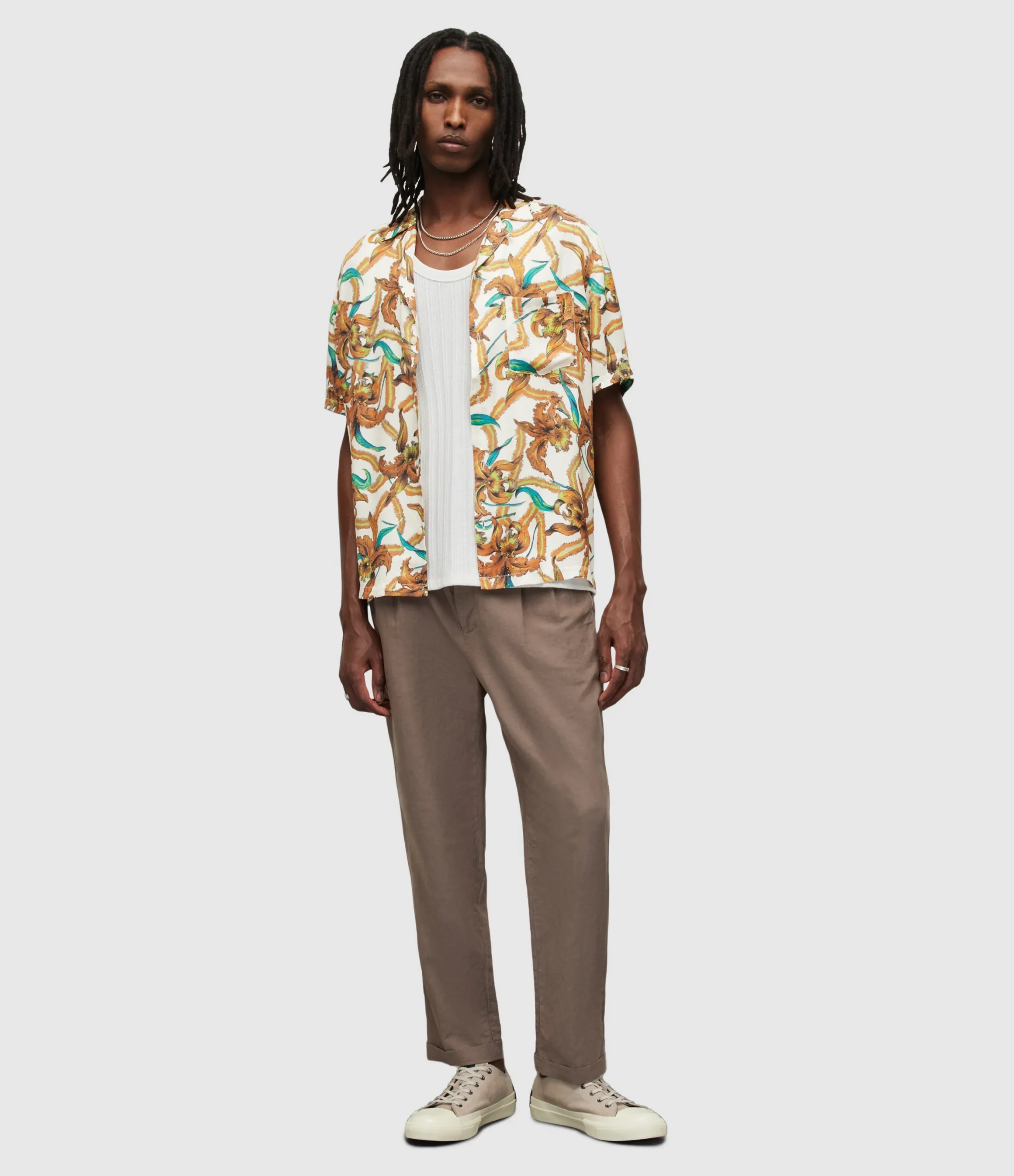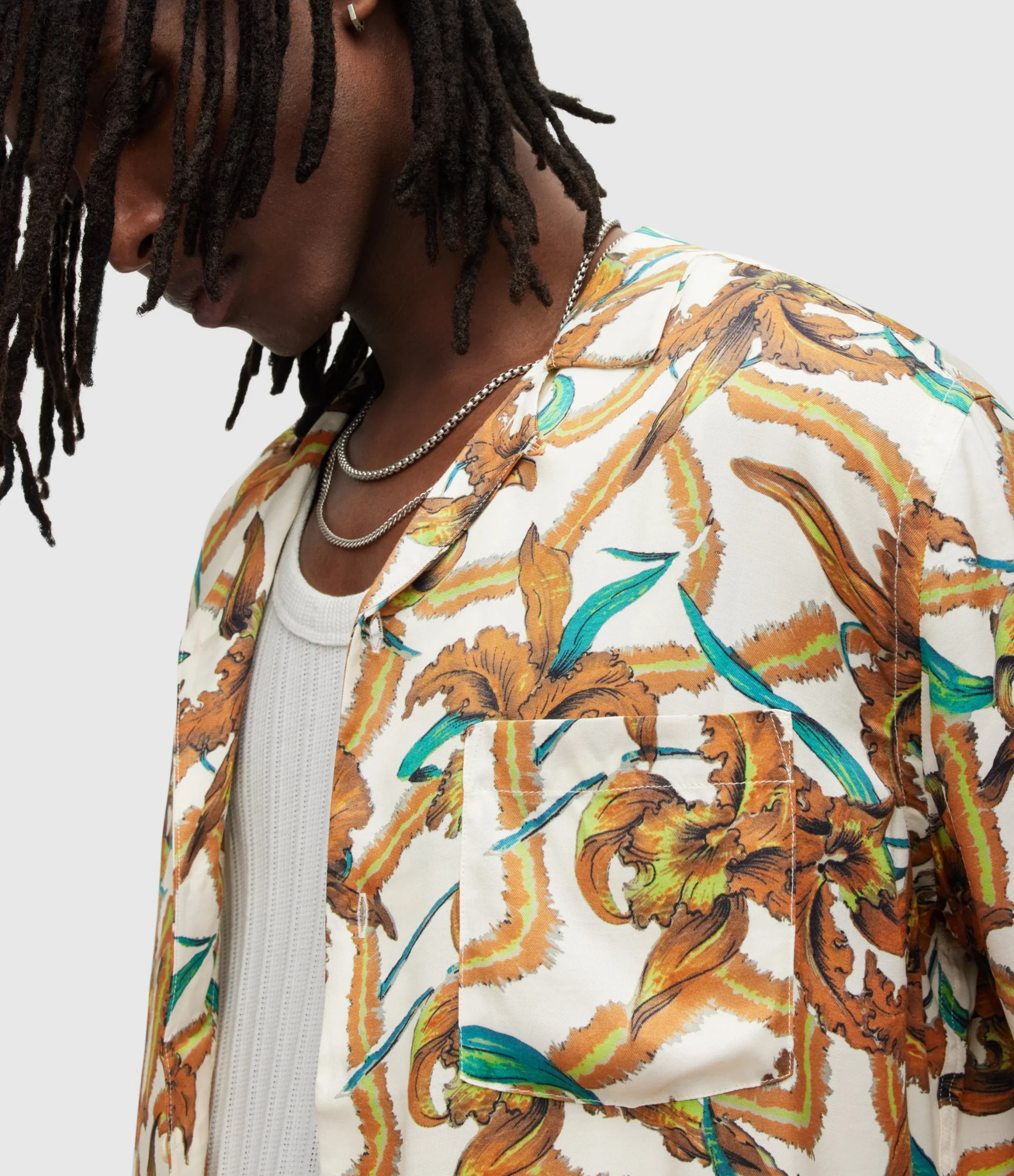Camisa Mesquida Blanco para hombre, marca AllSaints, de manga corta. COMPOSICIÓN Y LAVADO: Consultar etiqueta interna.