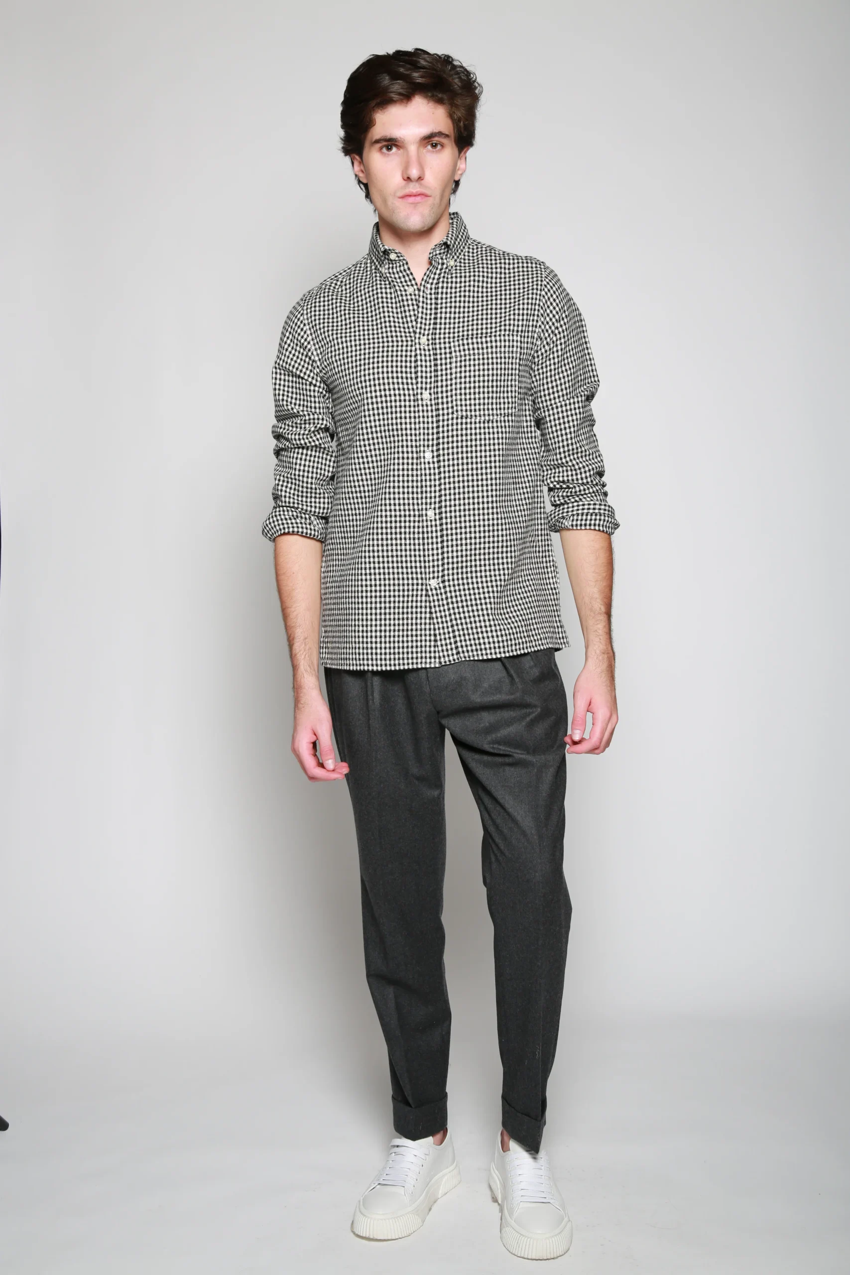 Camisa Negro para hombre, marca Officine Générale. COMPOSICIÓN Y LAVADO: Consultar etiqueta interna.