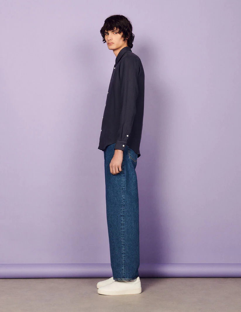 Camisa de cáñamo de corte clásico, con cuello, cierre de botones y manga larga.
