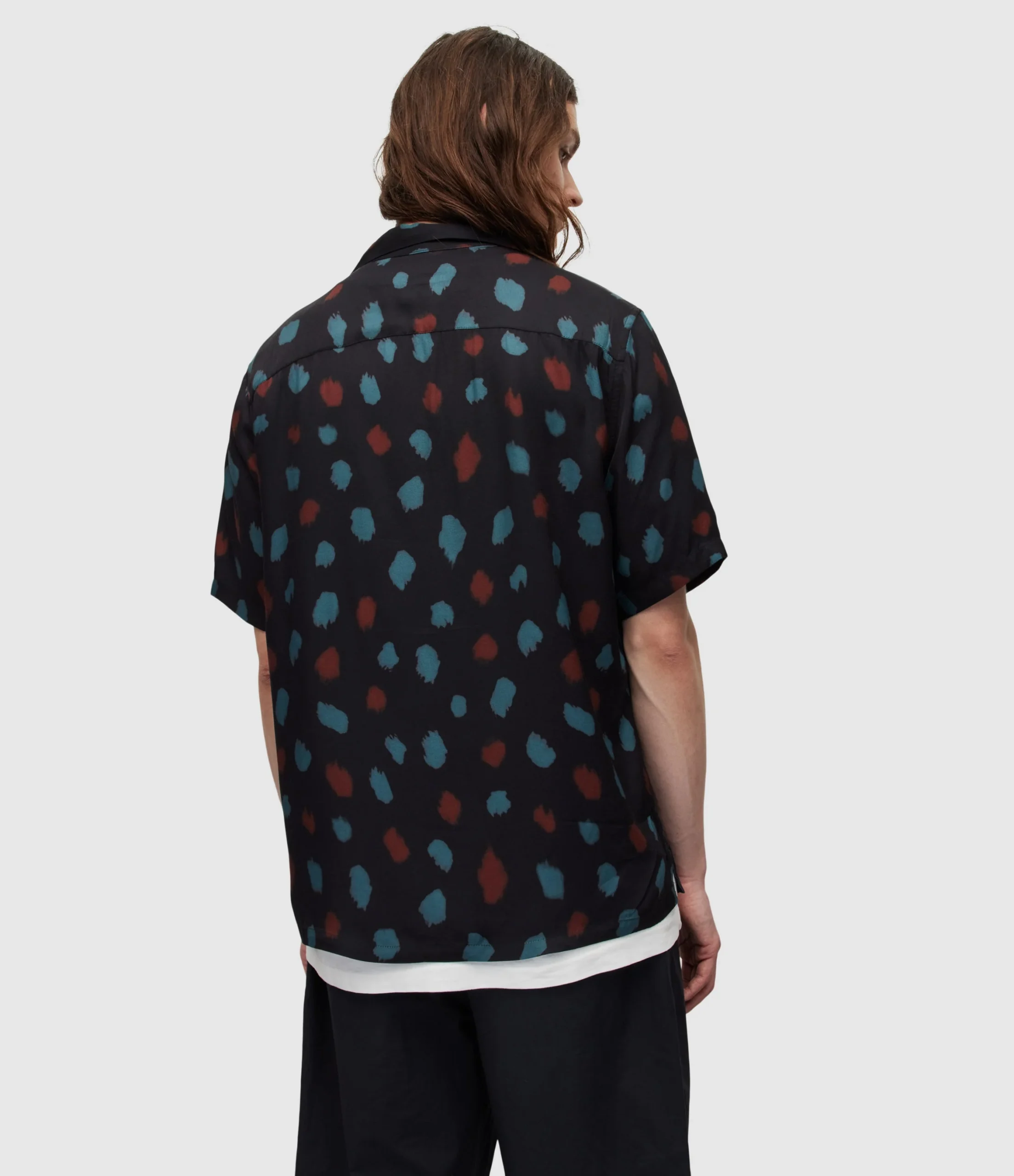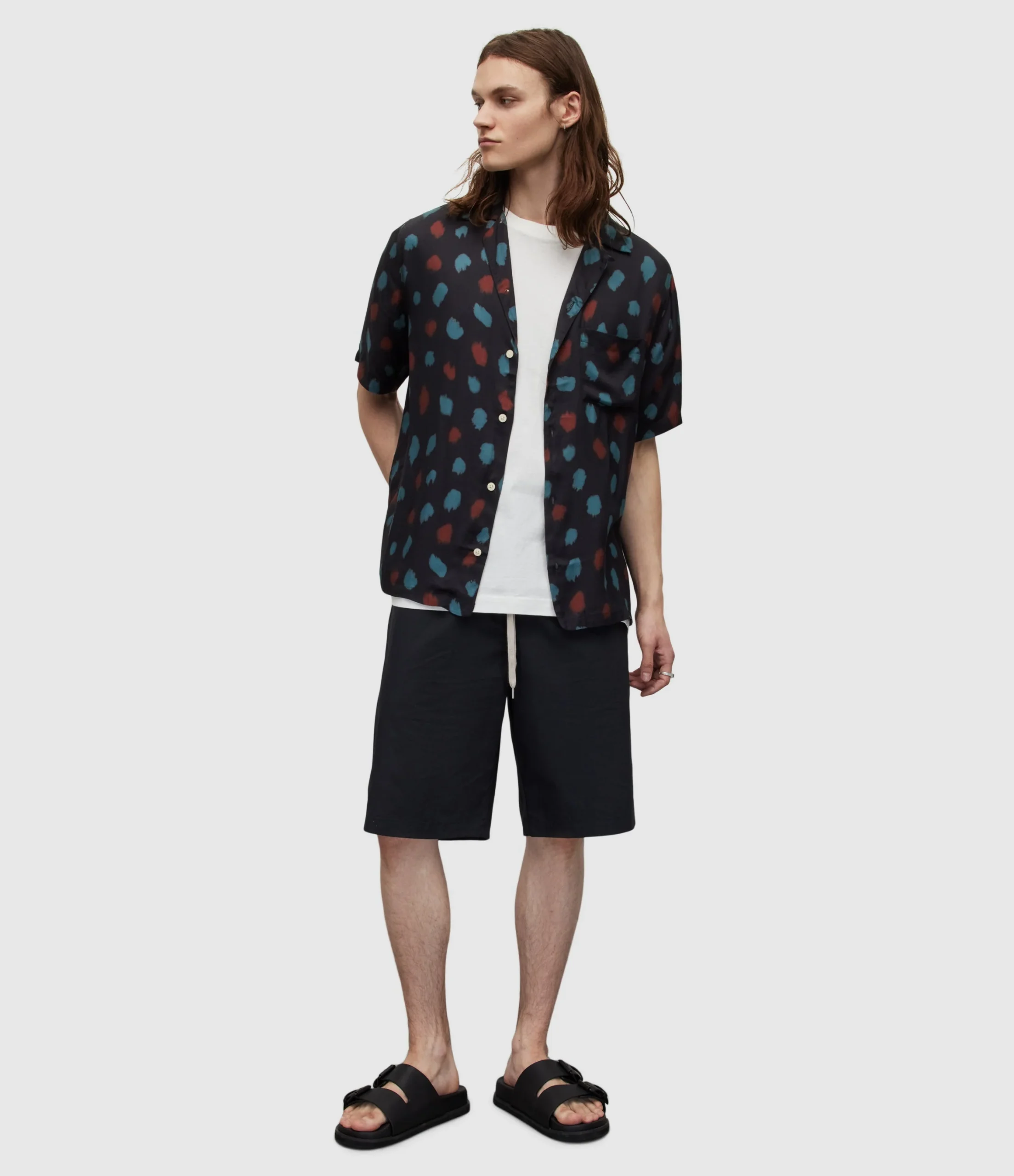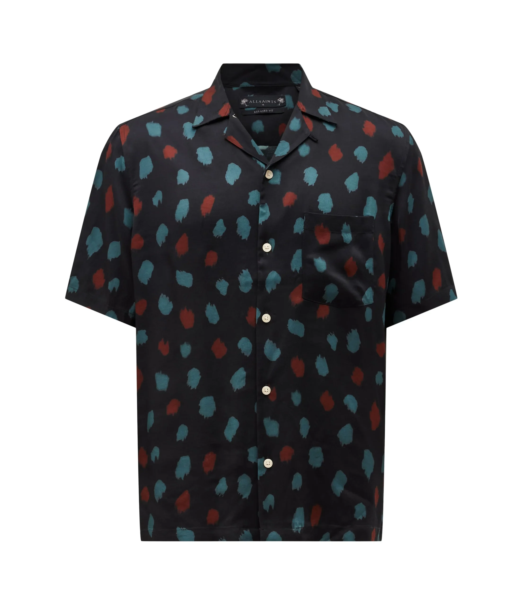 Camisa Tab Negro para hombre, marca AllSaints, de manga corta. COMPOSICIÓN Y LAVADO: Consultar etiqueta interna.