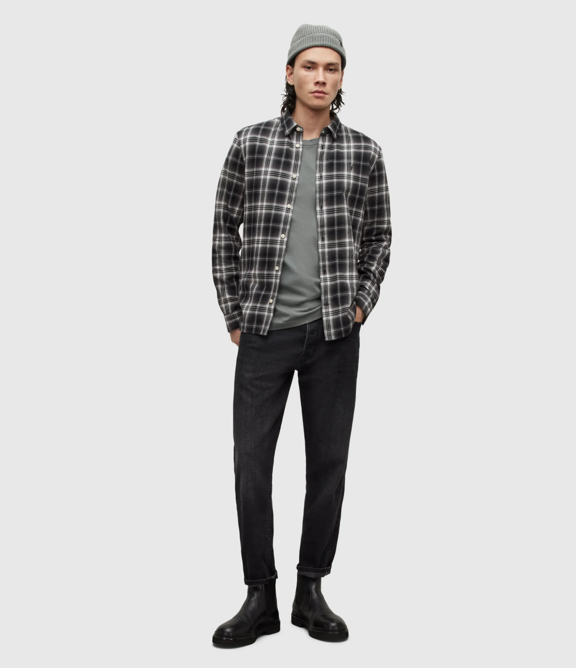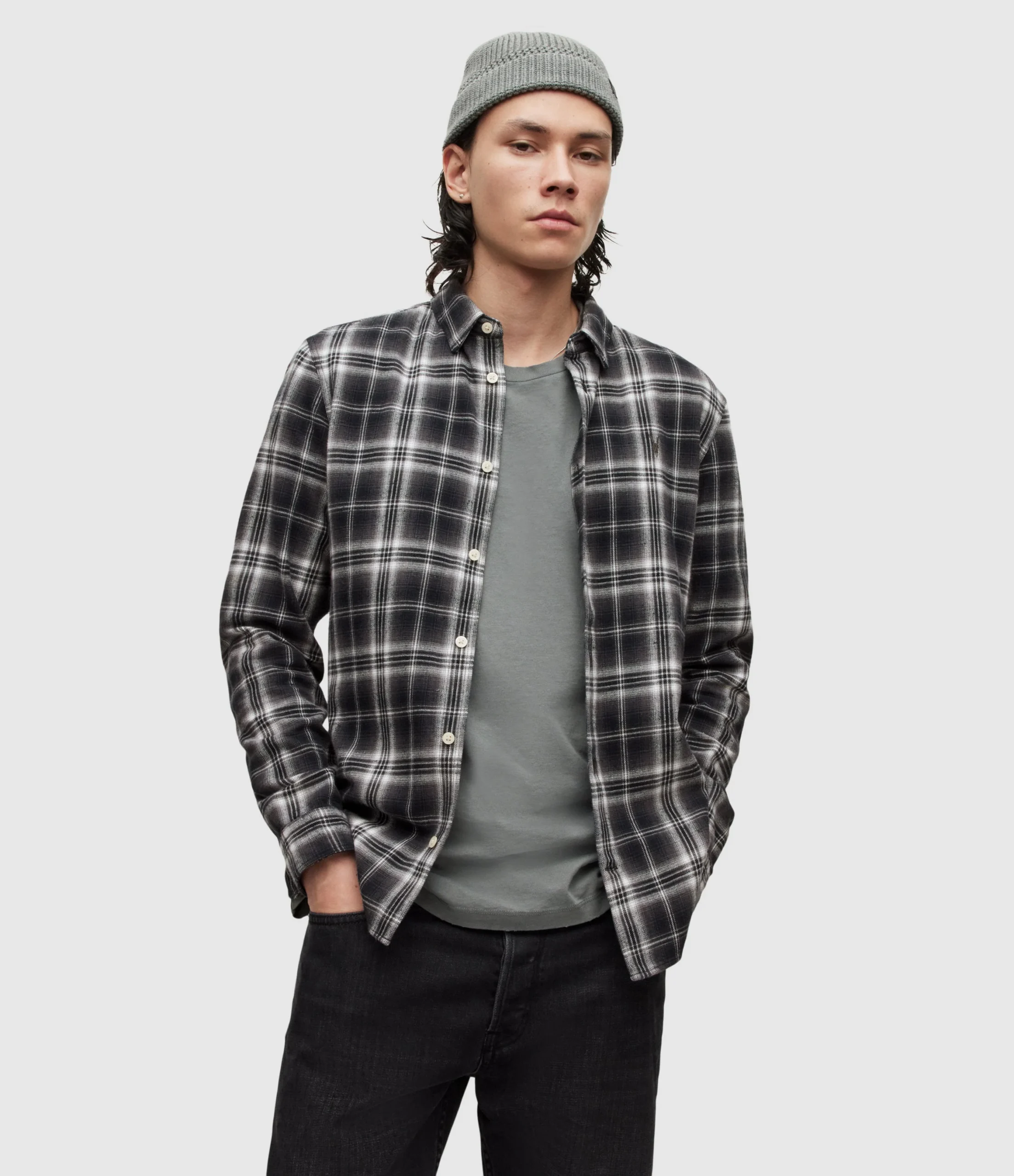 Camisa Vilotta Negro para hombre, marca AllSaints, de manga larga. COMPOSICIÓN Y LAVADO: Consultar etiqueta interna.