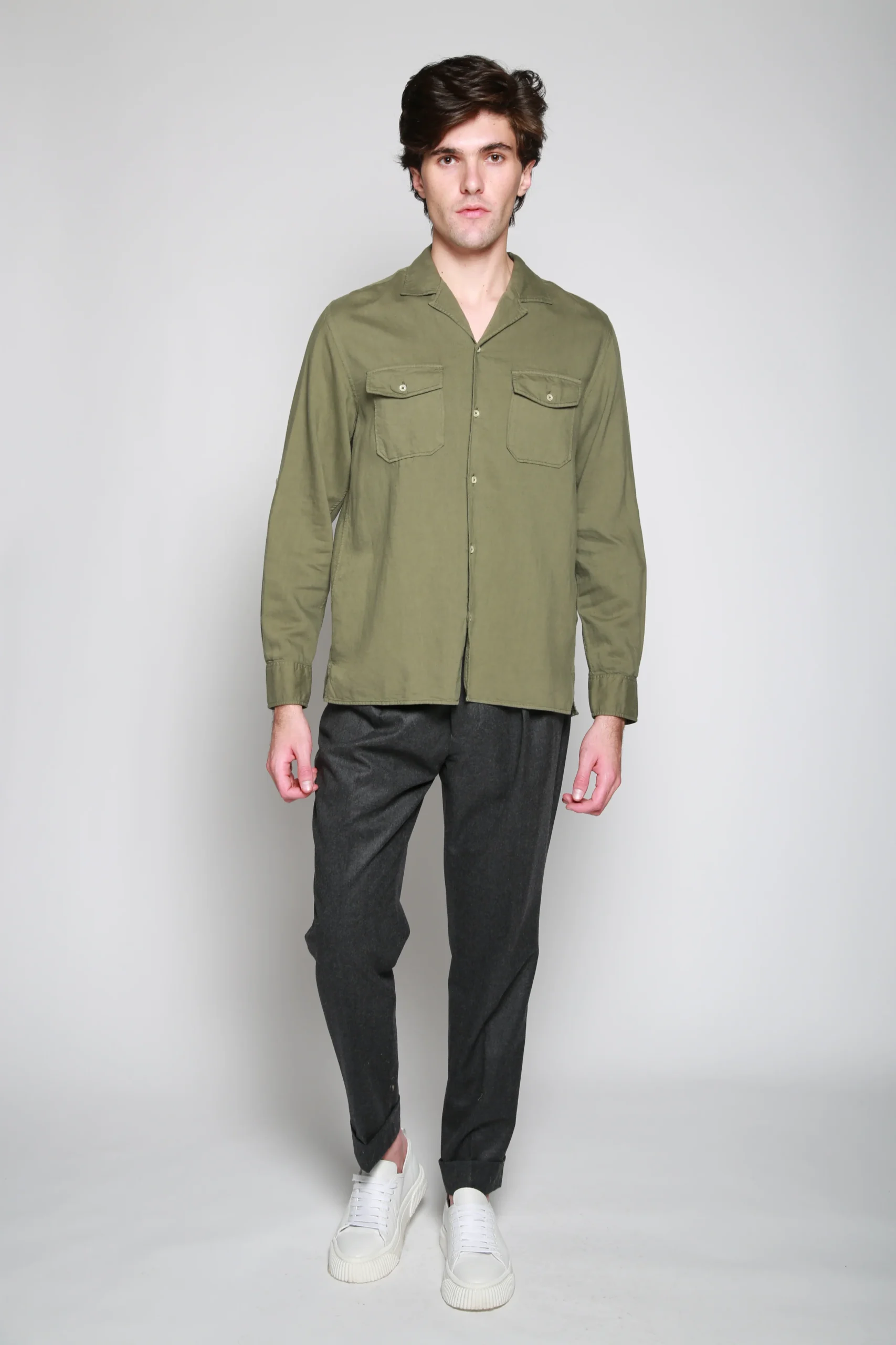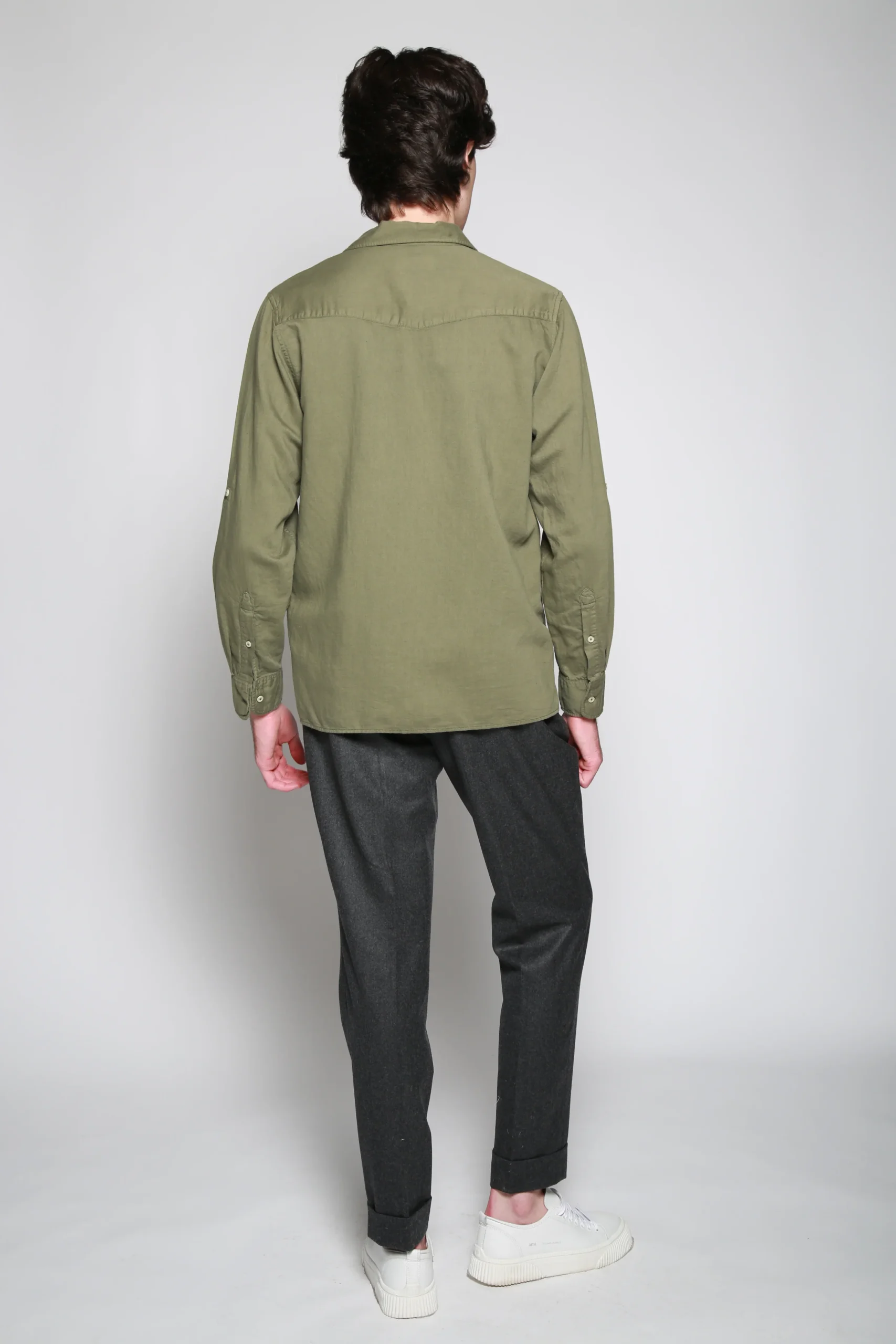 Camisa Woven Eric Pgmt Dye Olivo para hombre, marca Officine Générale. COMPOSICIÓN Y LAVADO: Consultar etiqueta interna.