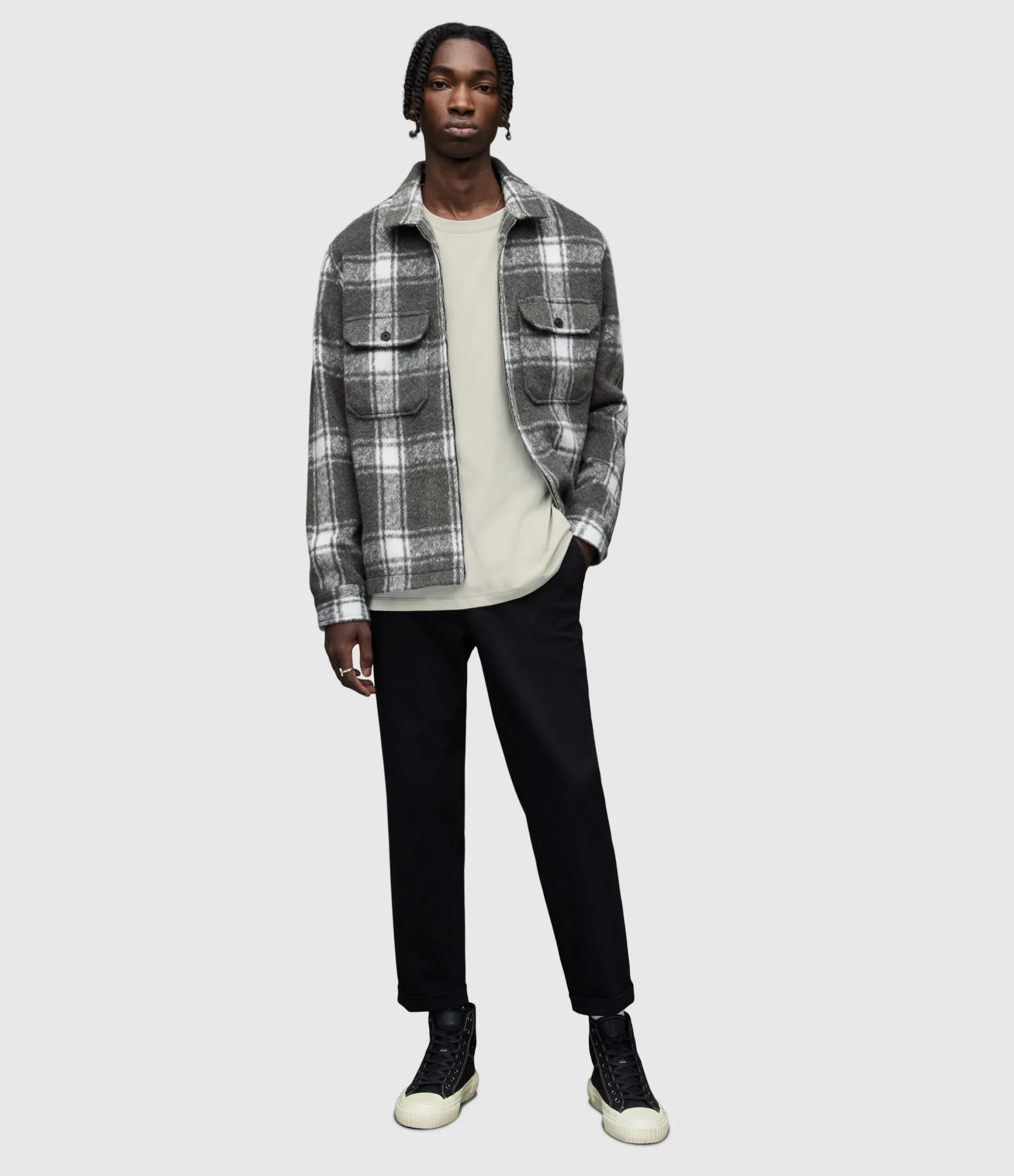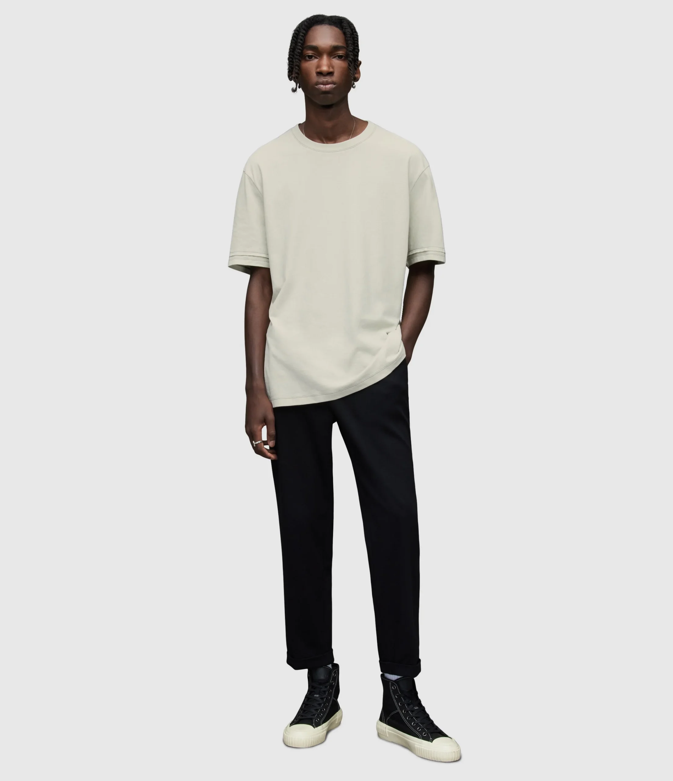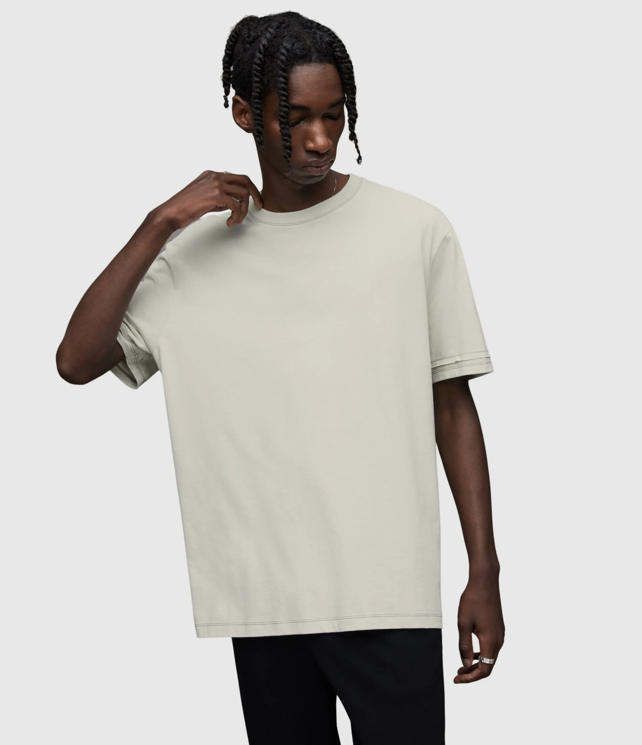 Camiseta Archer Gris para hombre, marca AllSaints, de manga corta y cuello redondo. COMPOSICIÓN Y LAVADO: Consultar etiqueta interna.