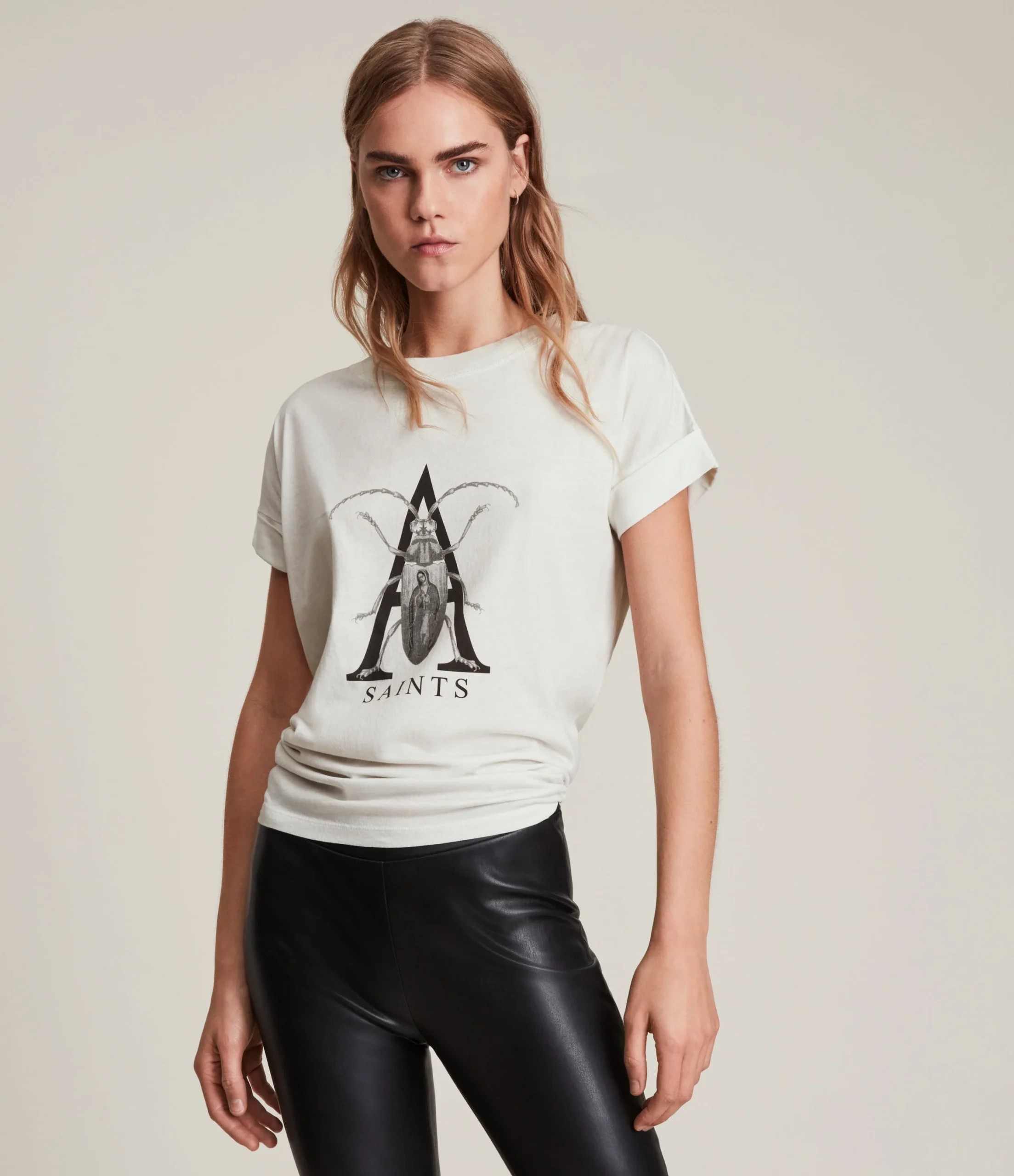 Camiseta Chasma Blanco para mujer, marca AllSaints. COMPOSICIÓN Y LAVADO: Consultar etiqueta interna.