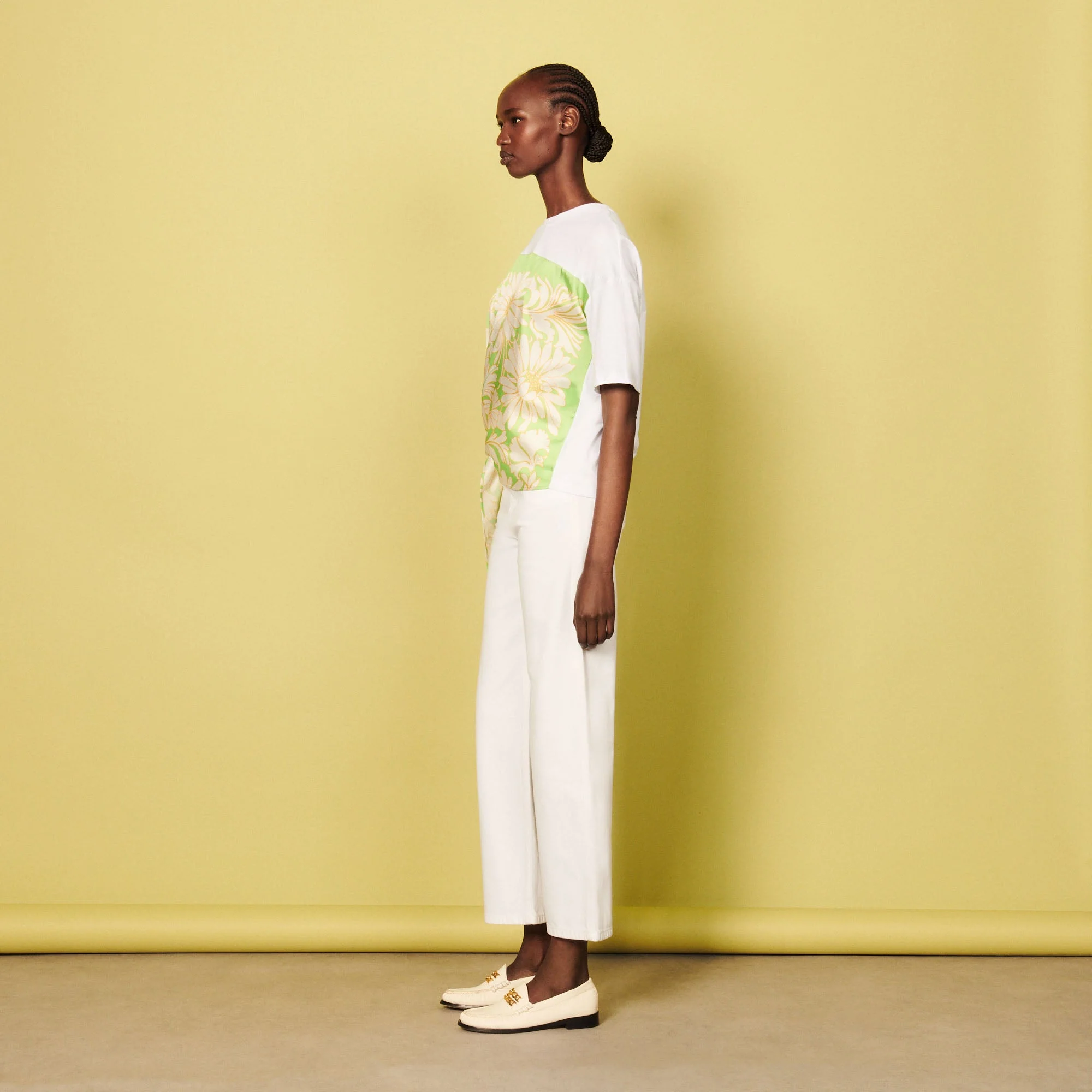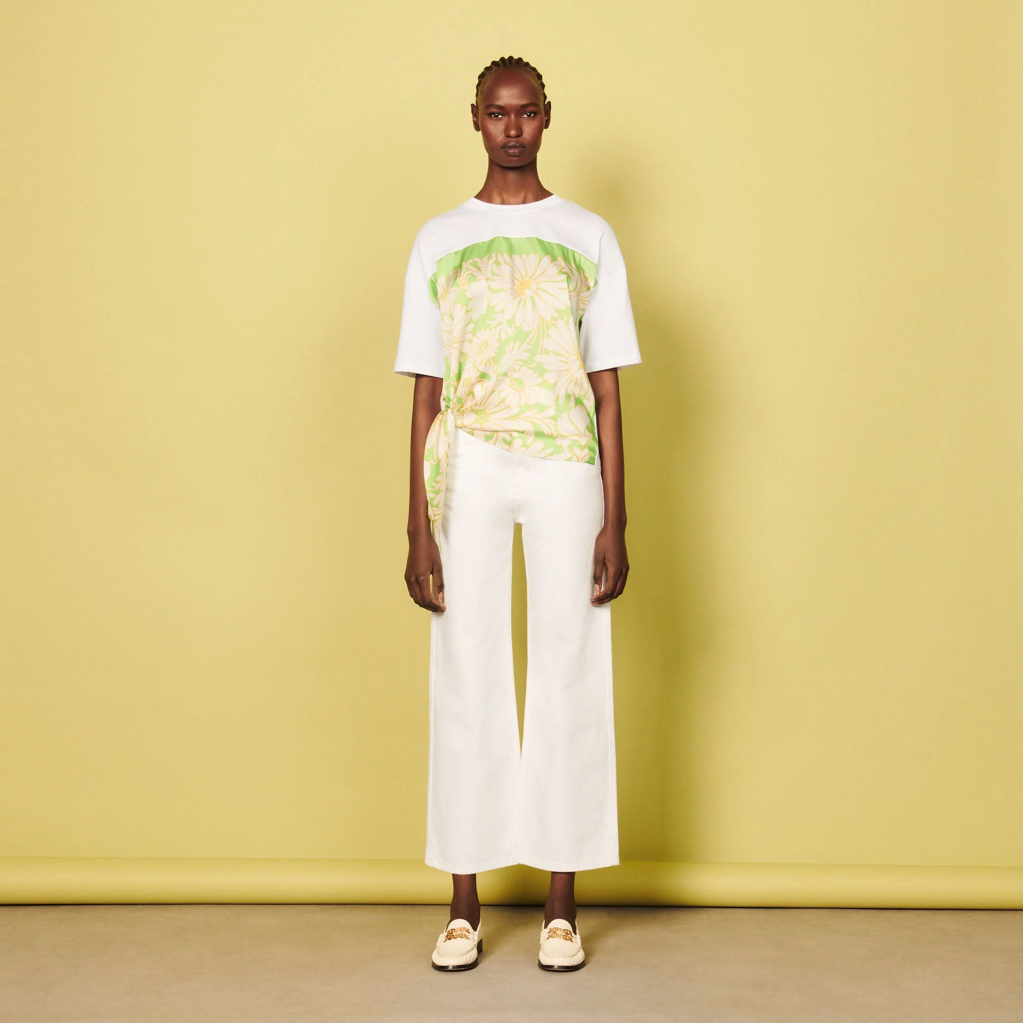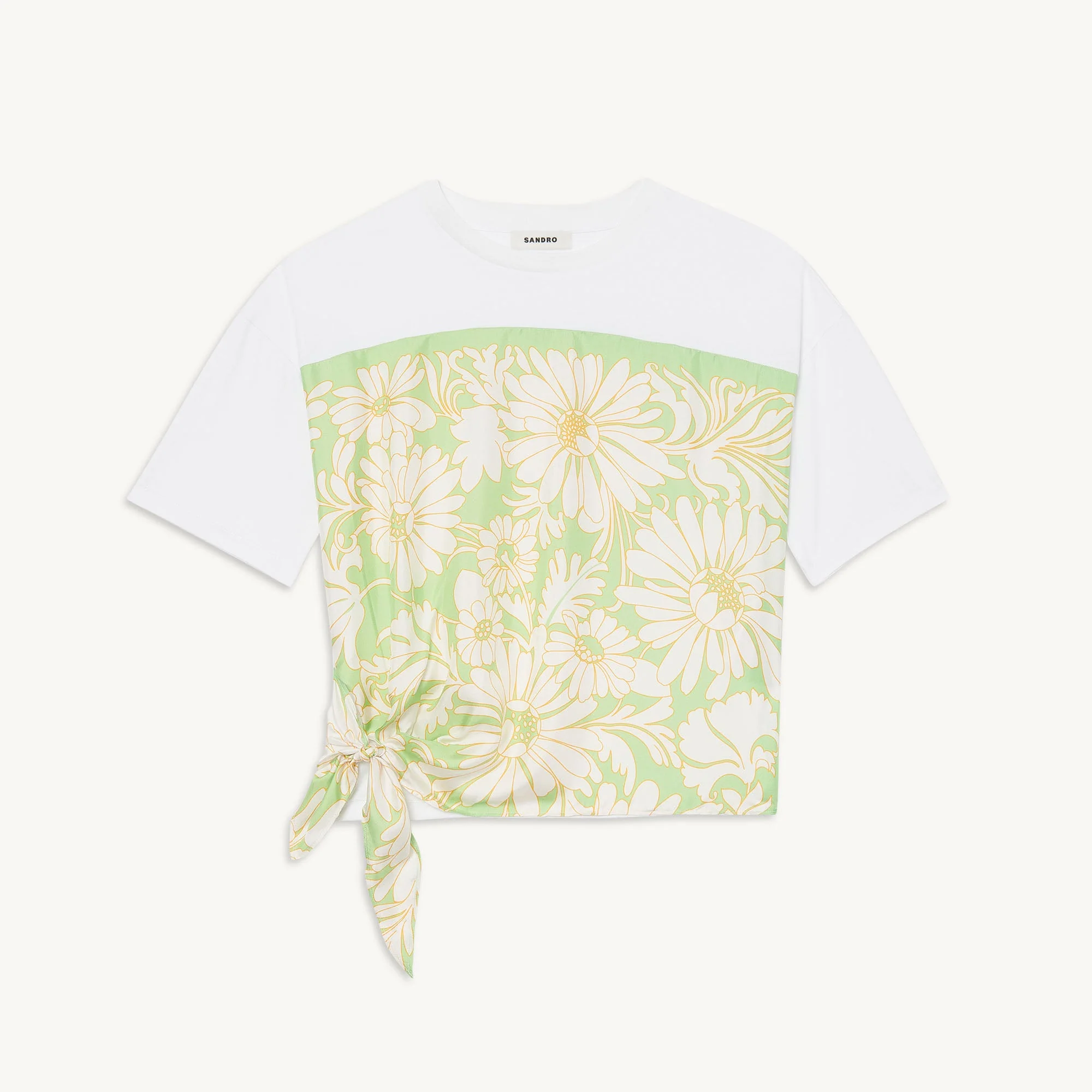 Camiseta con cuello redondo y manga corta, sublimada con un fular con estampado de margaritas.