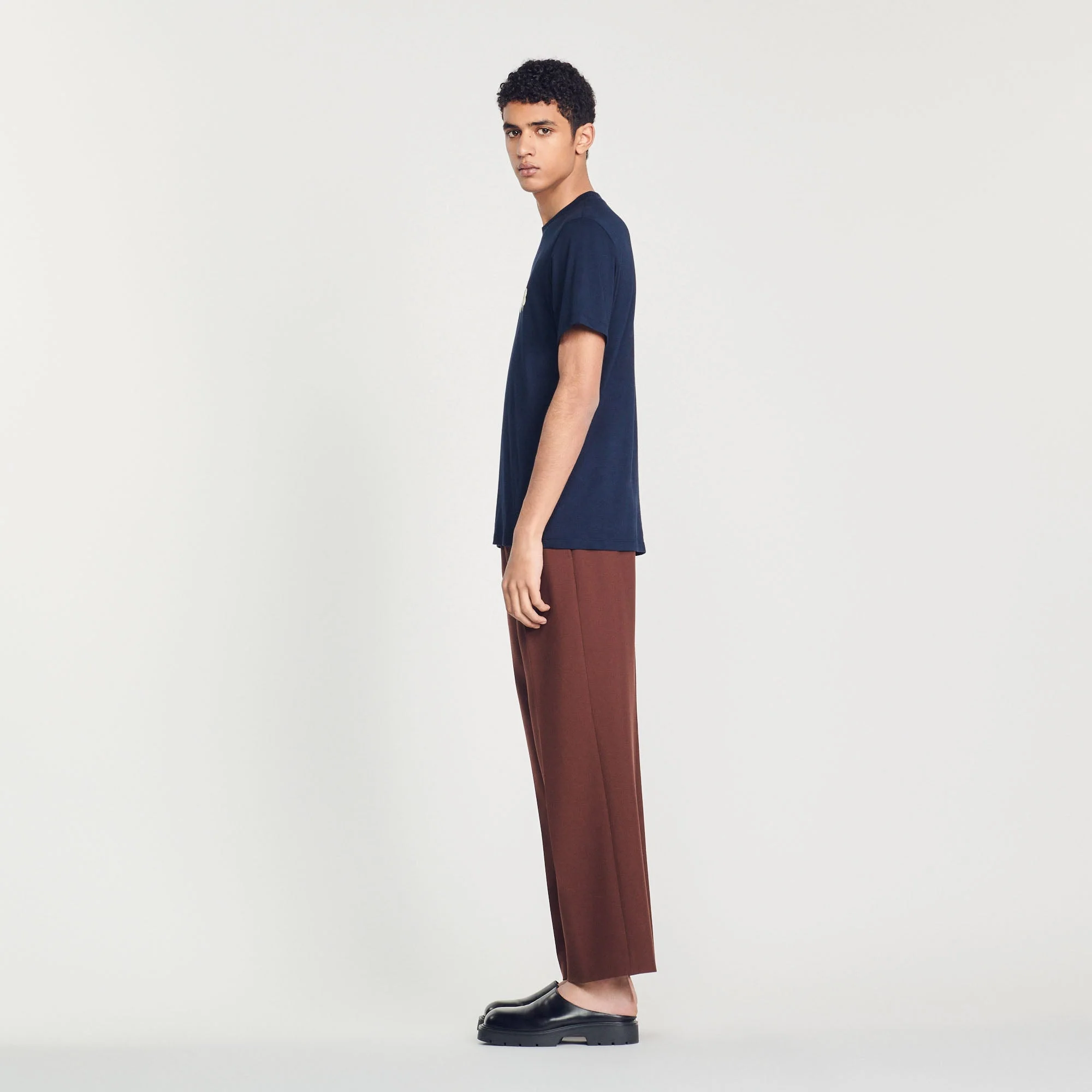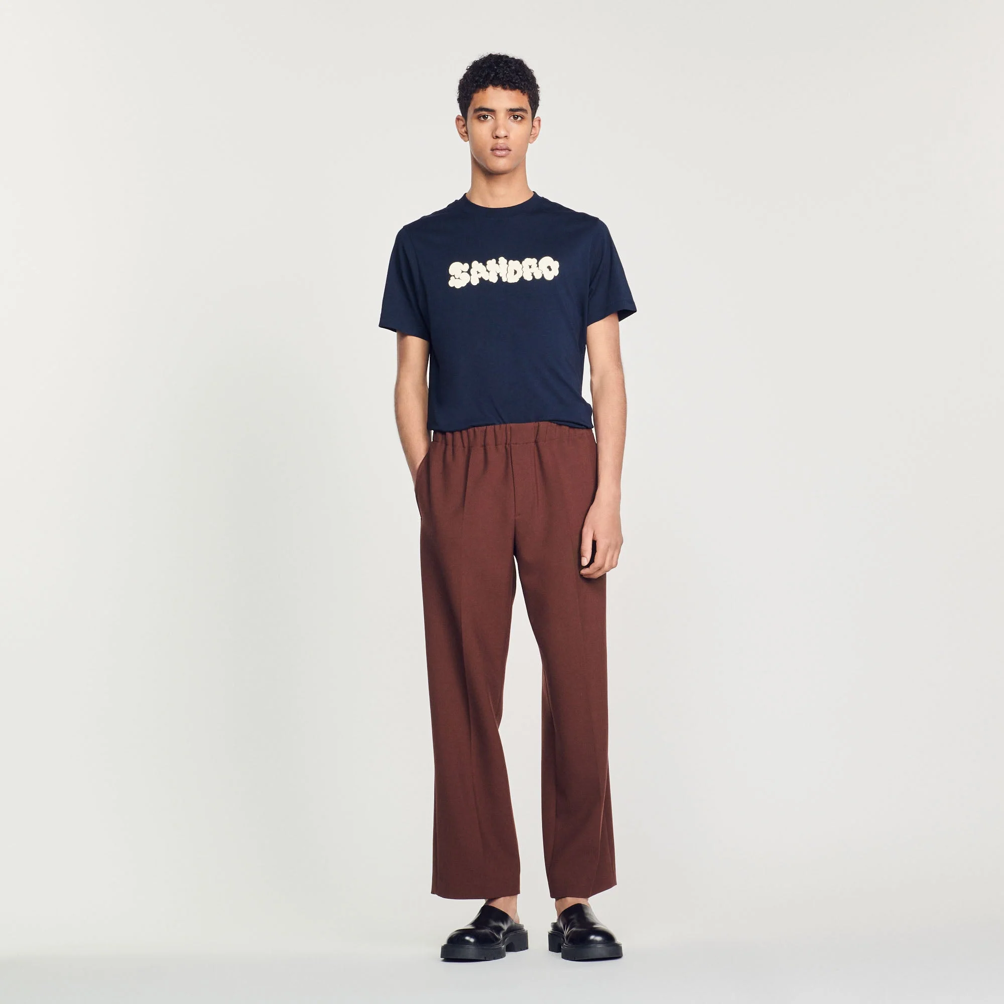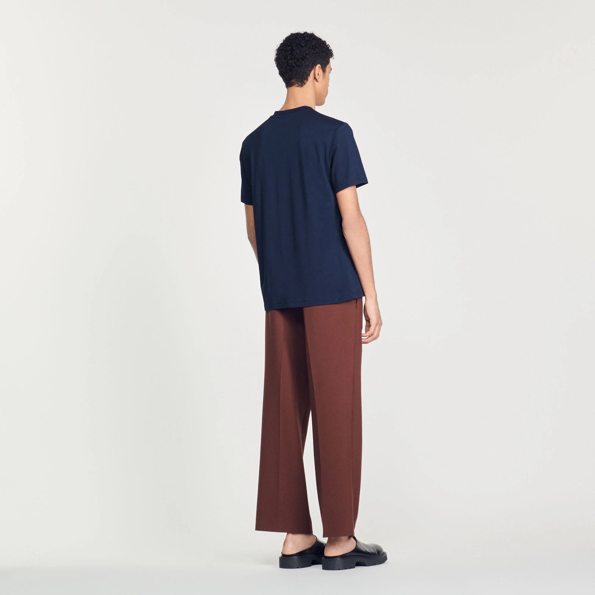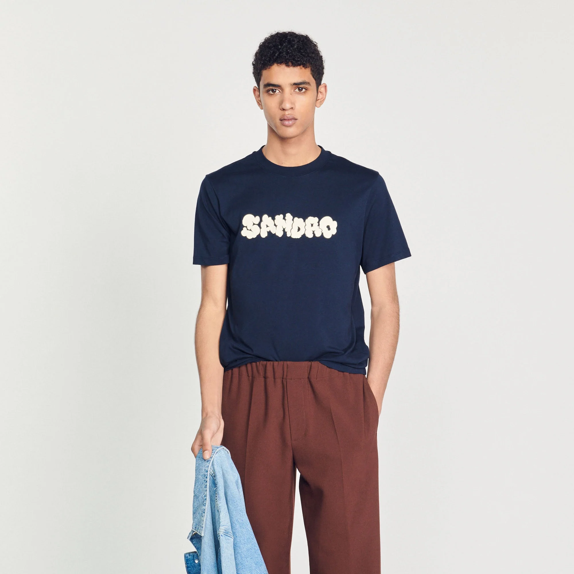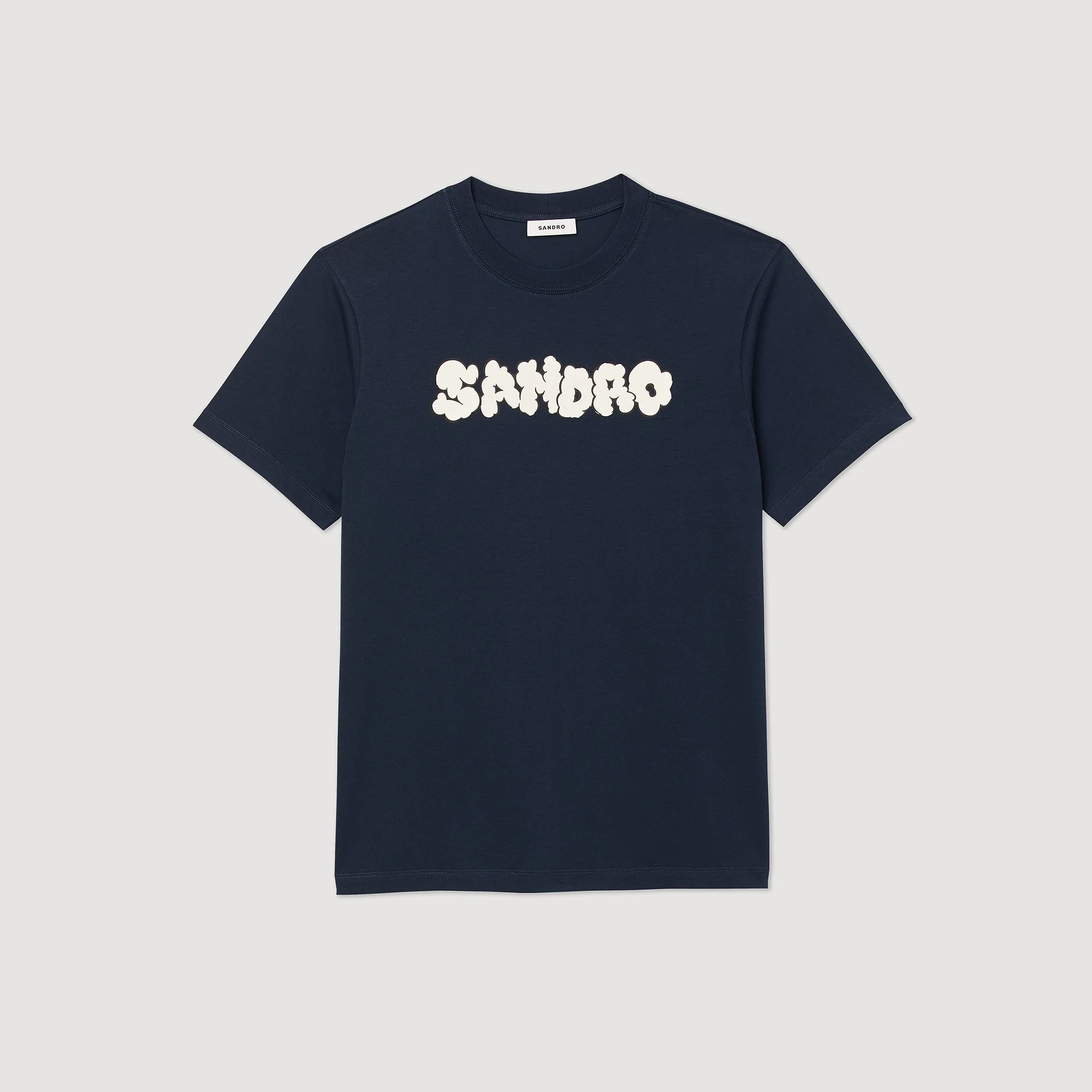 Camiseta de manga corta y cuello redondo de algodón, sublimada con un bordado SANDRO de punto rizado.• Camiseta de algodón Sandro de hombre