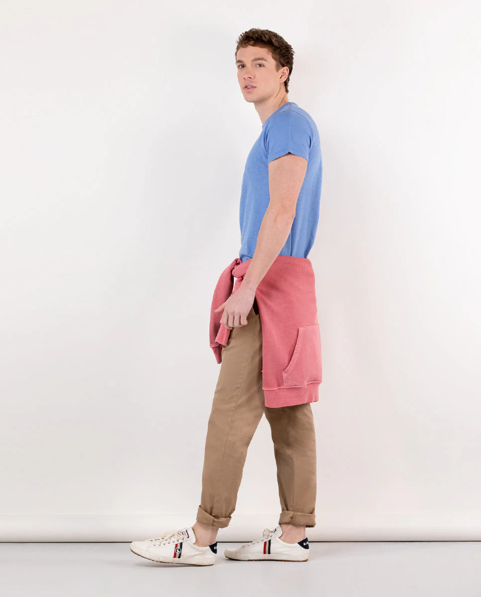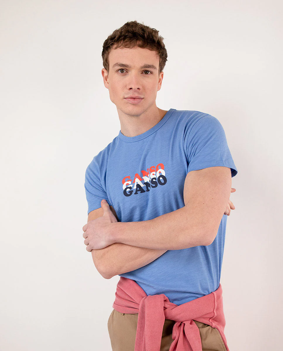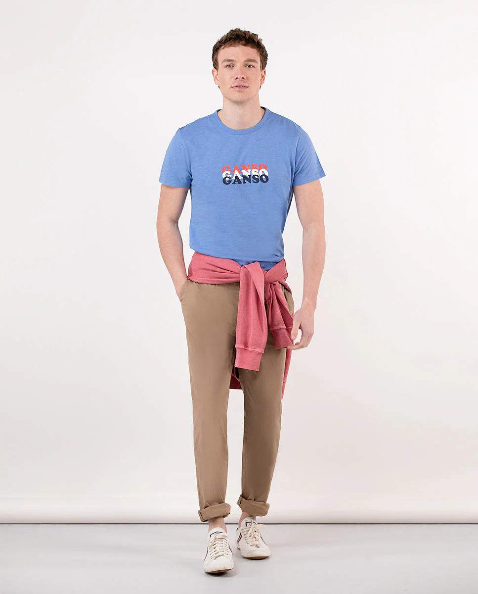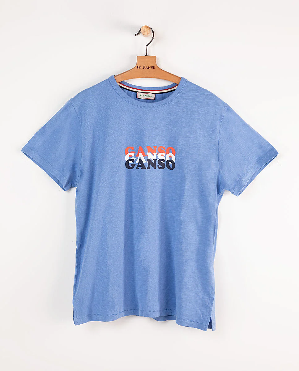 Camiseta de hombre lisa confeccionada en tejido 100% algodón. Corte Regular Fit, cuello redondo y manga corta. Detalle de estampado con la palabra Ganso en tres colores.