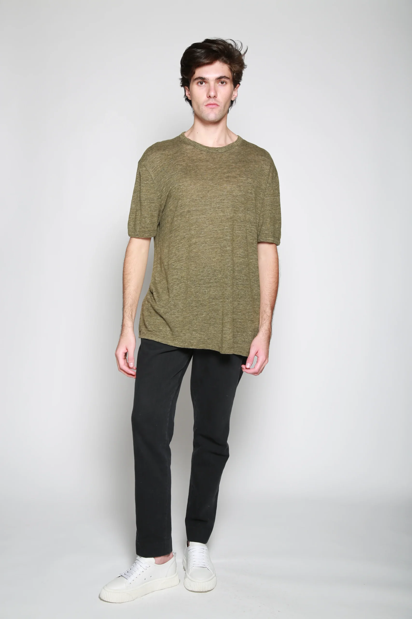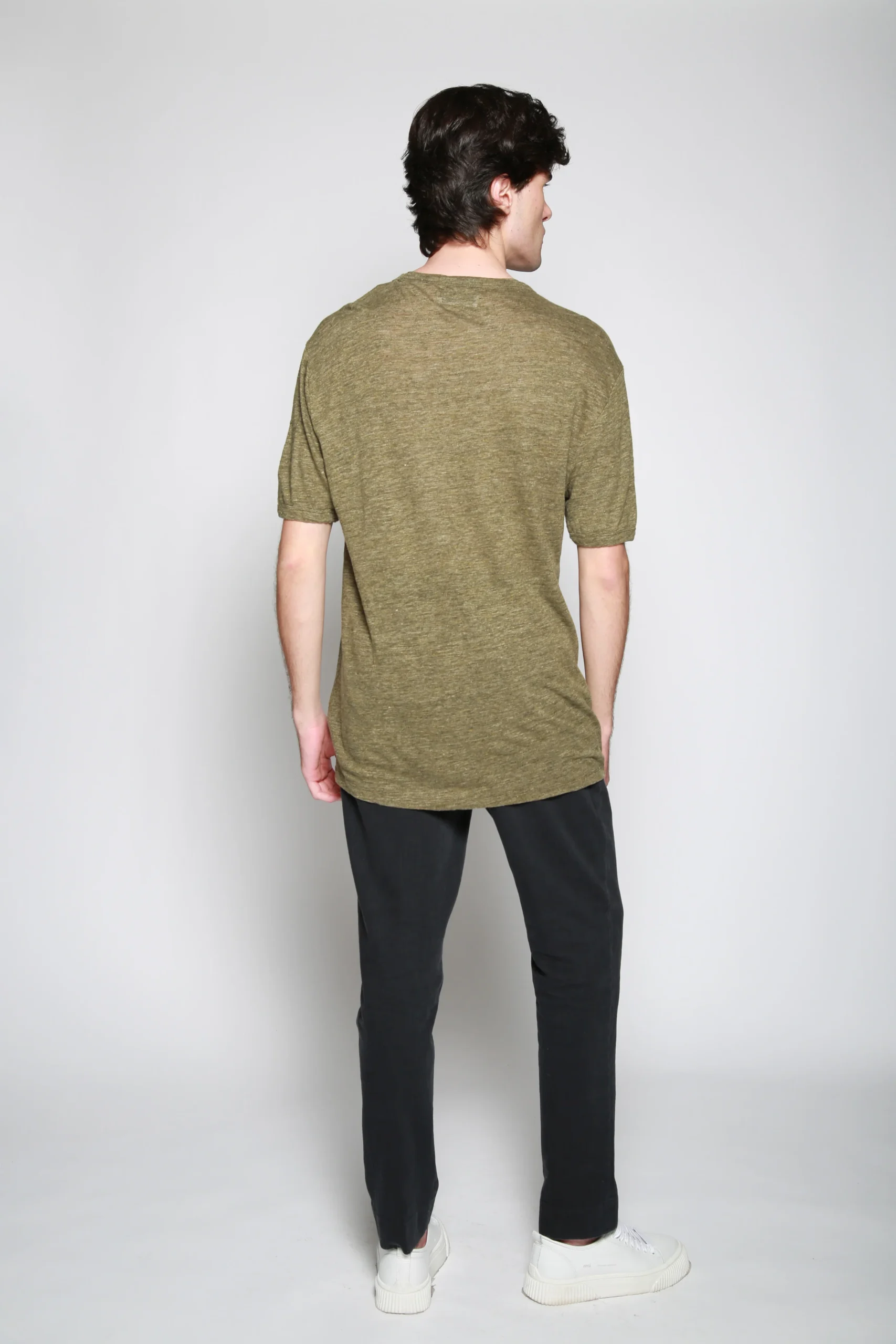 Camiseta Knit Olivo para hombre, marca Officine Générale. COMPOSICIÓN Y LAVADO: Consultar etiqueta interna.