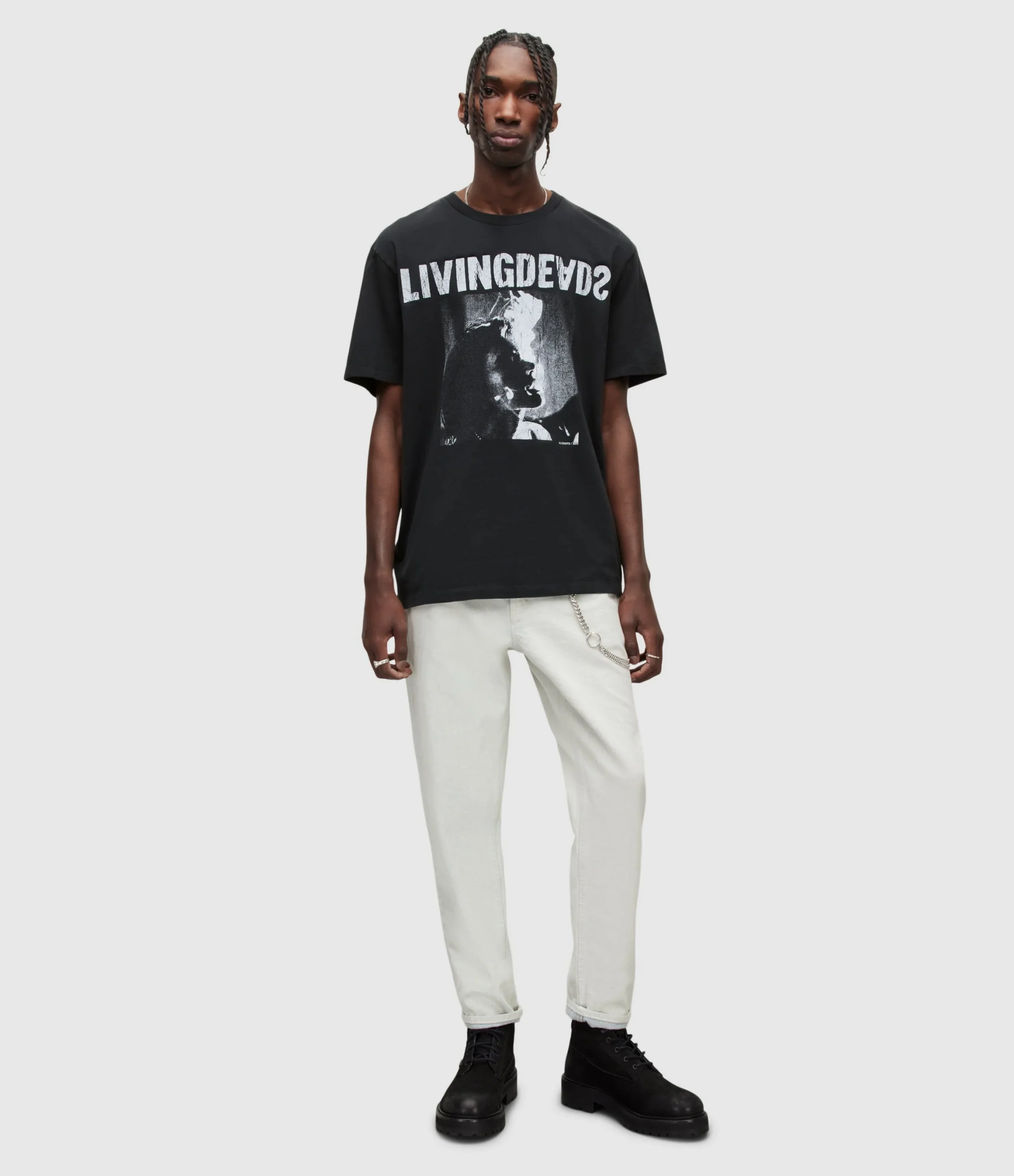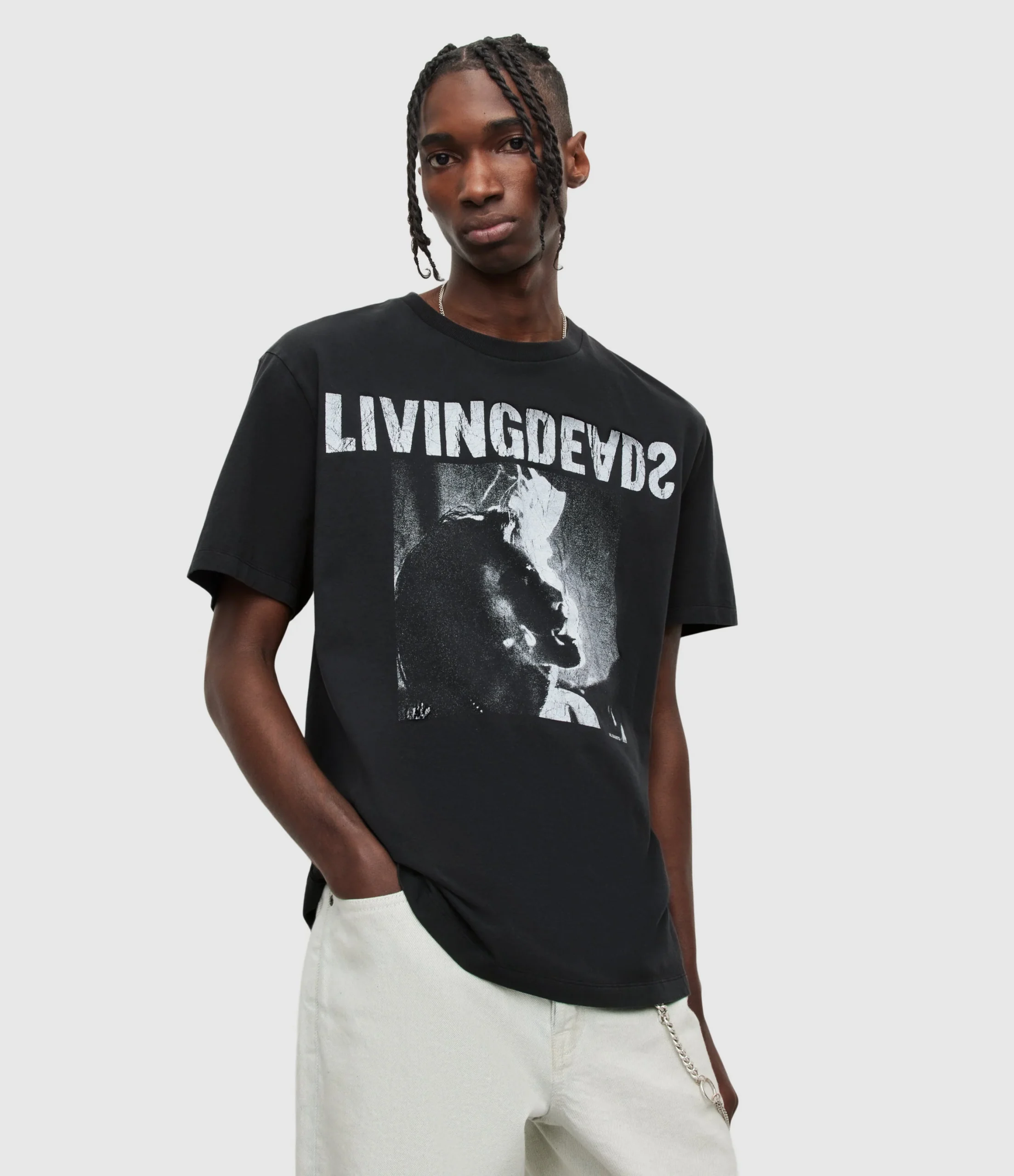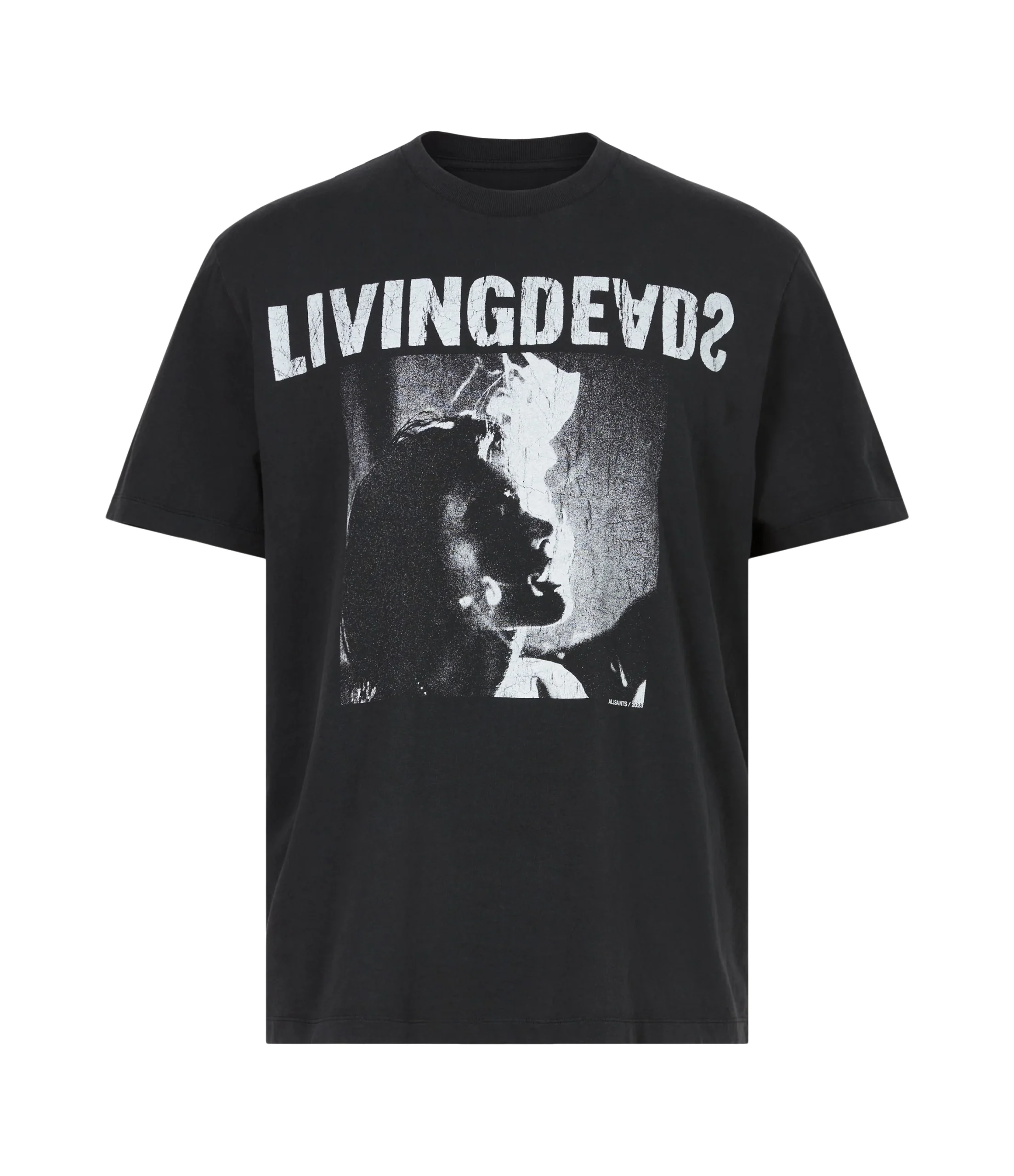 Camiseta Living Negro para hombre, marca AllSaints, de manga corta y cuello redondo. COMPOSICIÓN Y LAVADO: Consultar etiqueta interna.