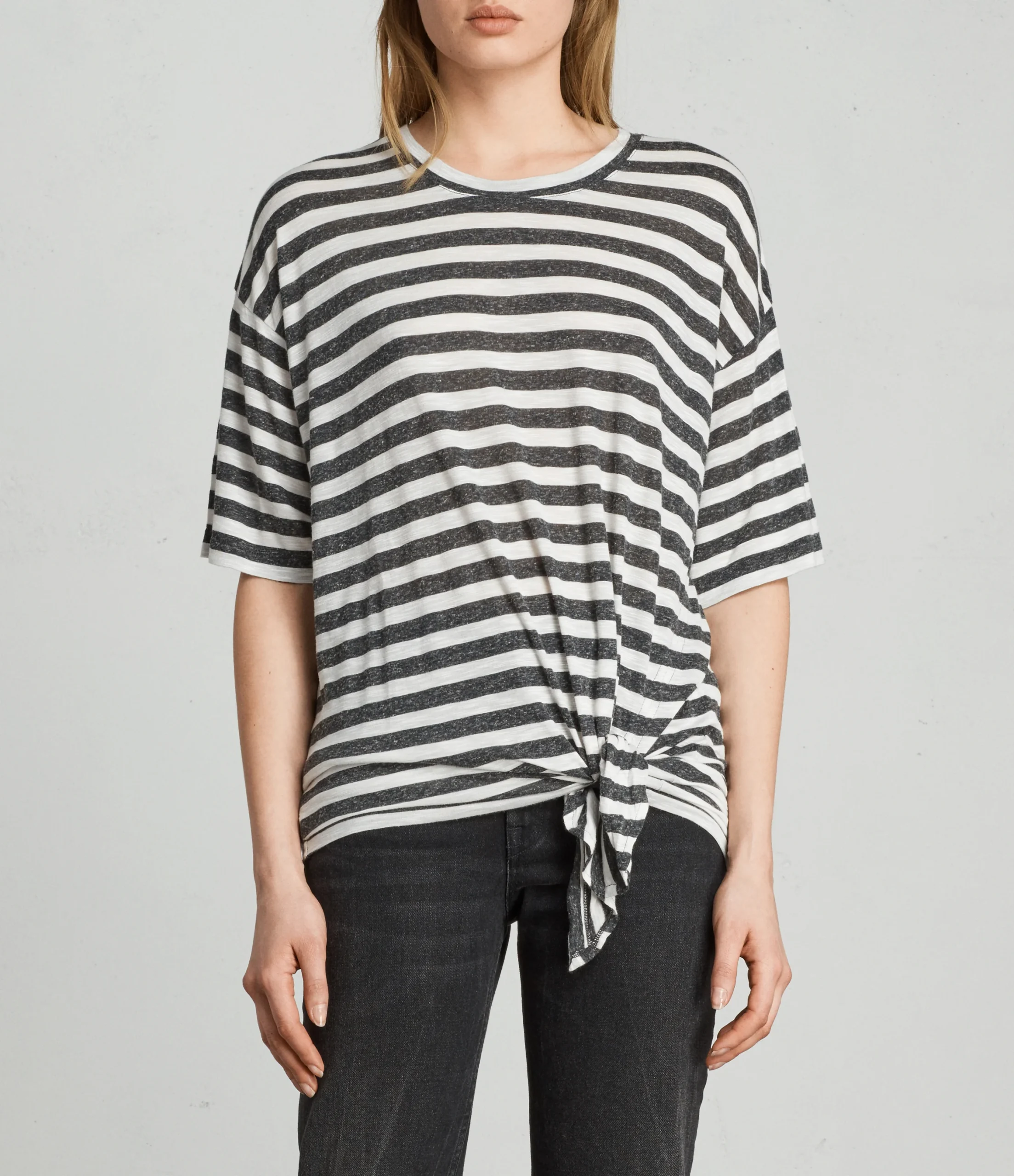 Camiseta Meli Stripe Chalk/Charcoal, marca AllSaints. Composición: 50%VISCOSE 40%POLYESTER 10%LINEN