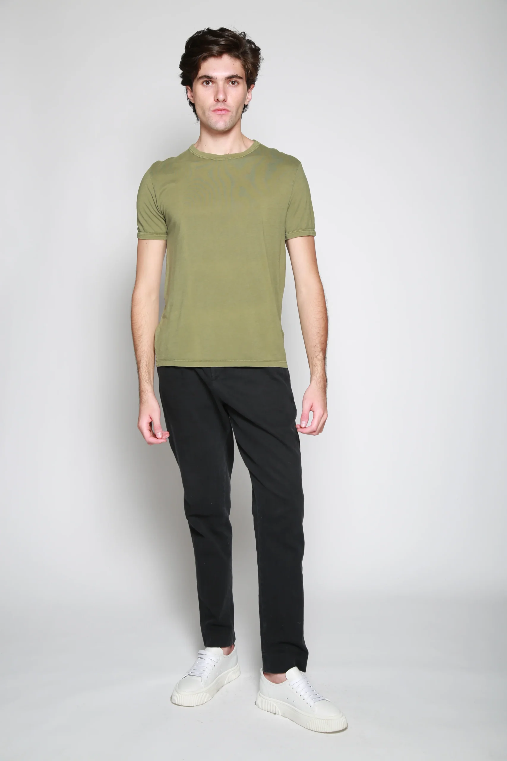 Camiseta Olivo para hombre, marca Officine Générale. COMPOSICIÓN Y LAVADO: Consultar etiqueta interna.