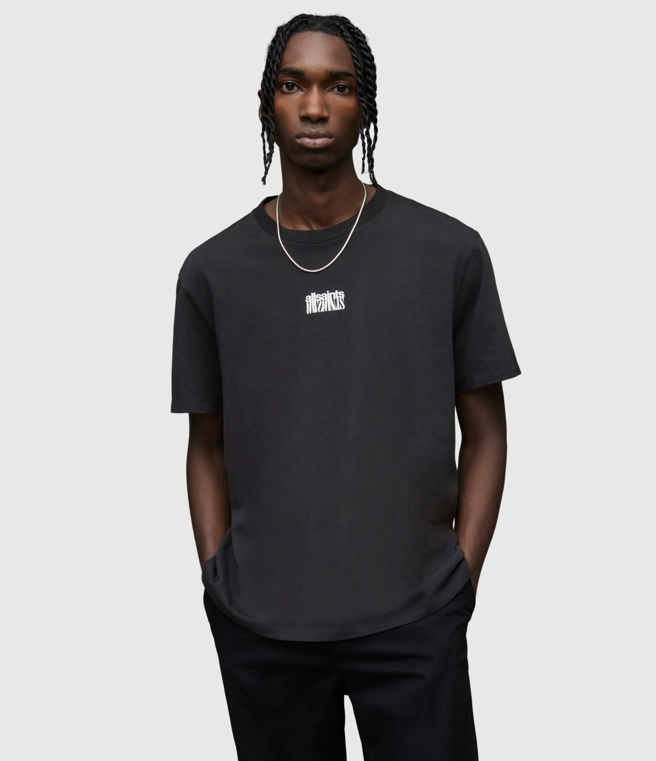 Camiseta Refract Negro para hombre, marca AllSaints, de manga corta y cuello redondo. COMPOSICIÓN Y LAVADO: Consultar etiqueta interna.
