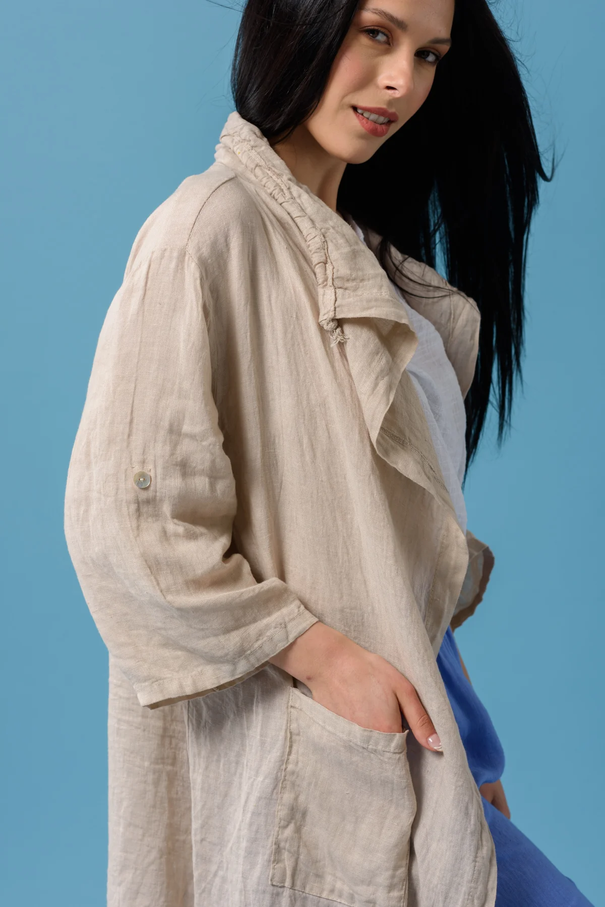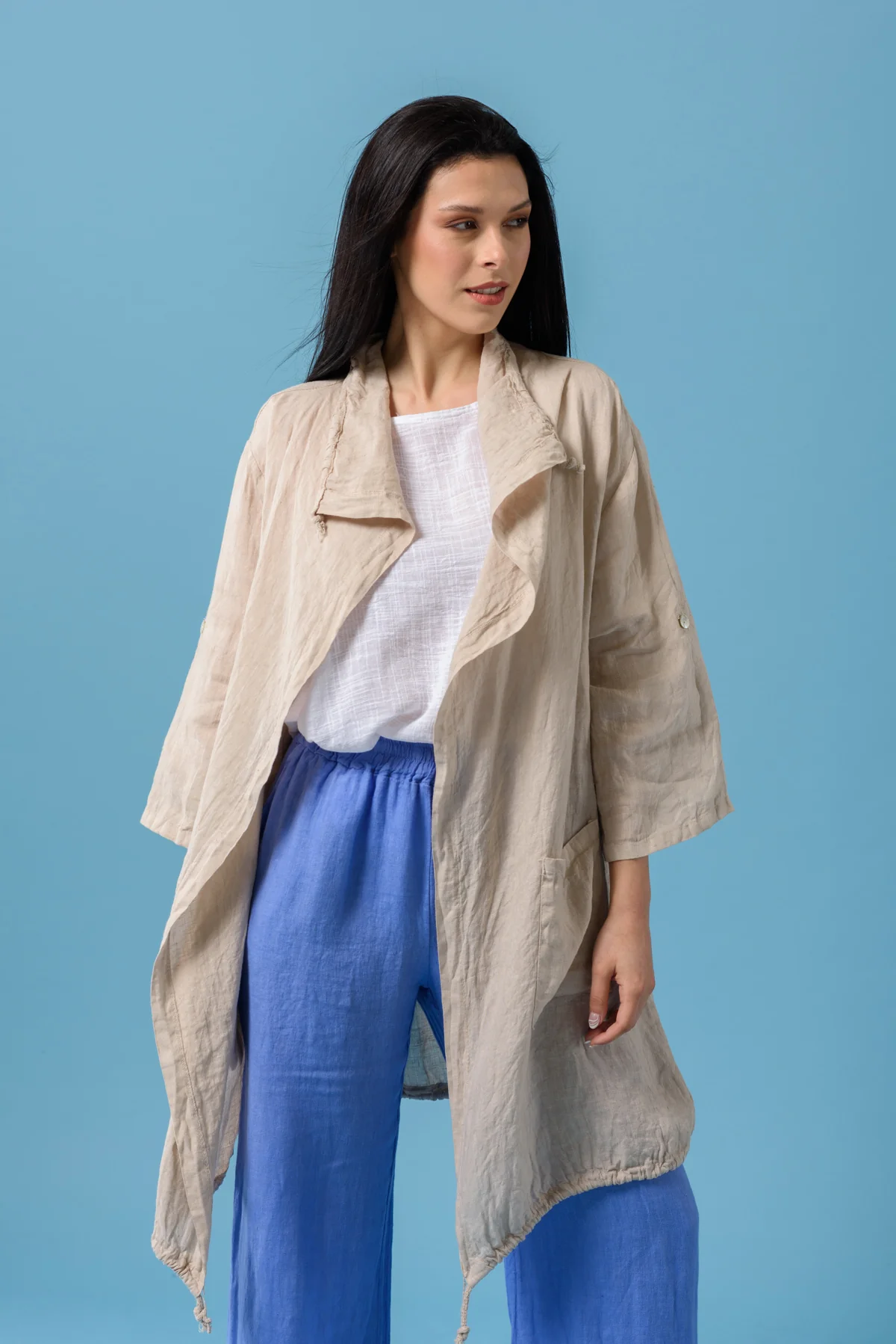 ¡Descubrí la elegancia y frescura de la Campera de Lino Larga en camel! Esta campera te aporta sofisticación y comodidad, ideal para mujeres que buscan estilo con un toque de naturalidad.
