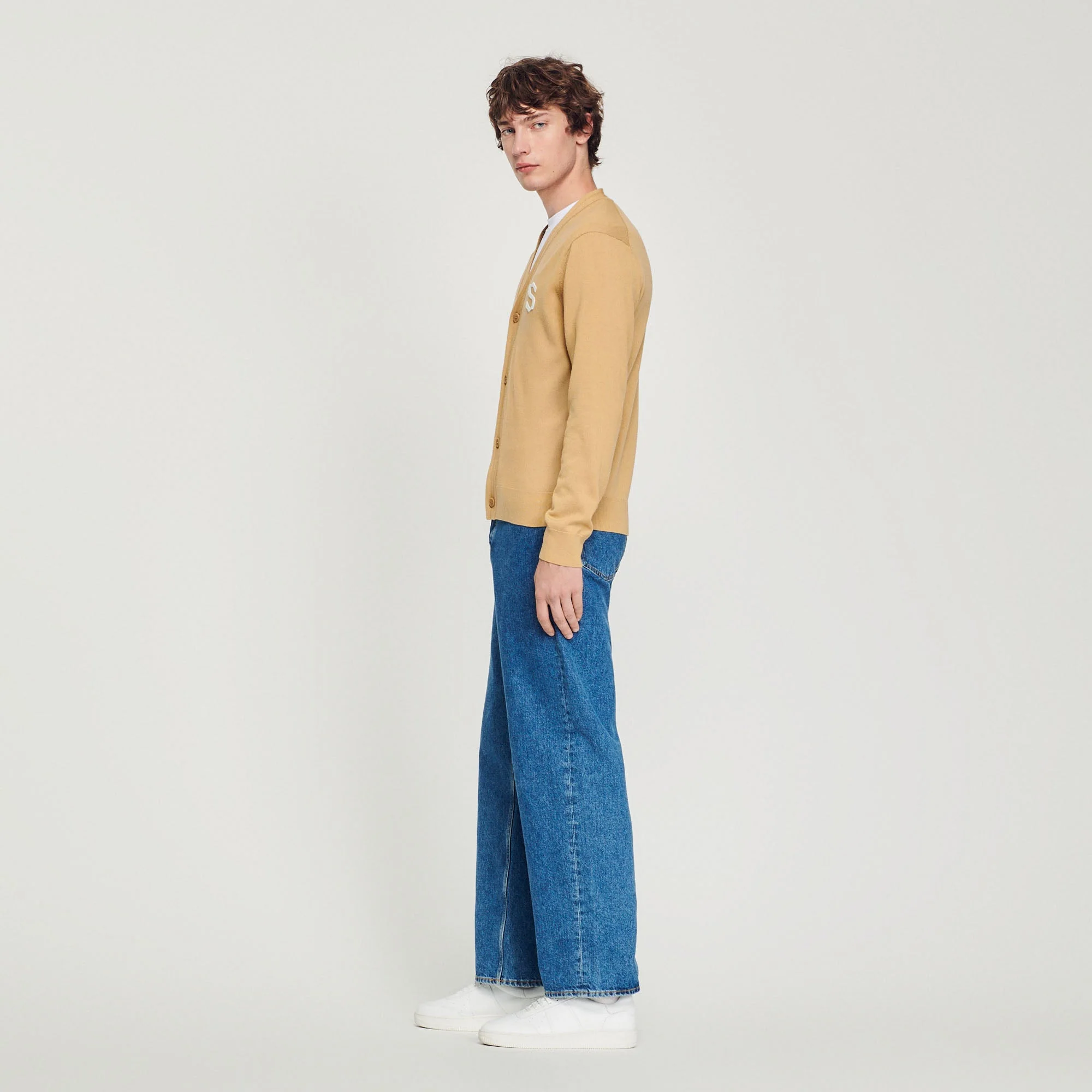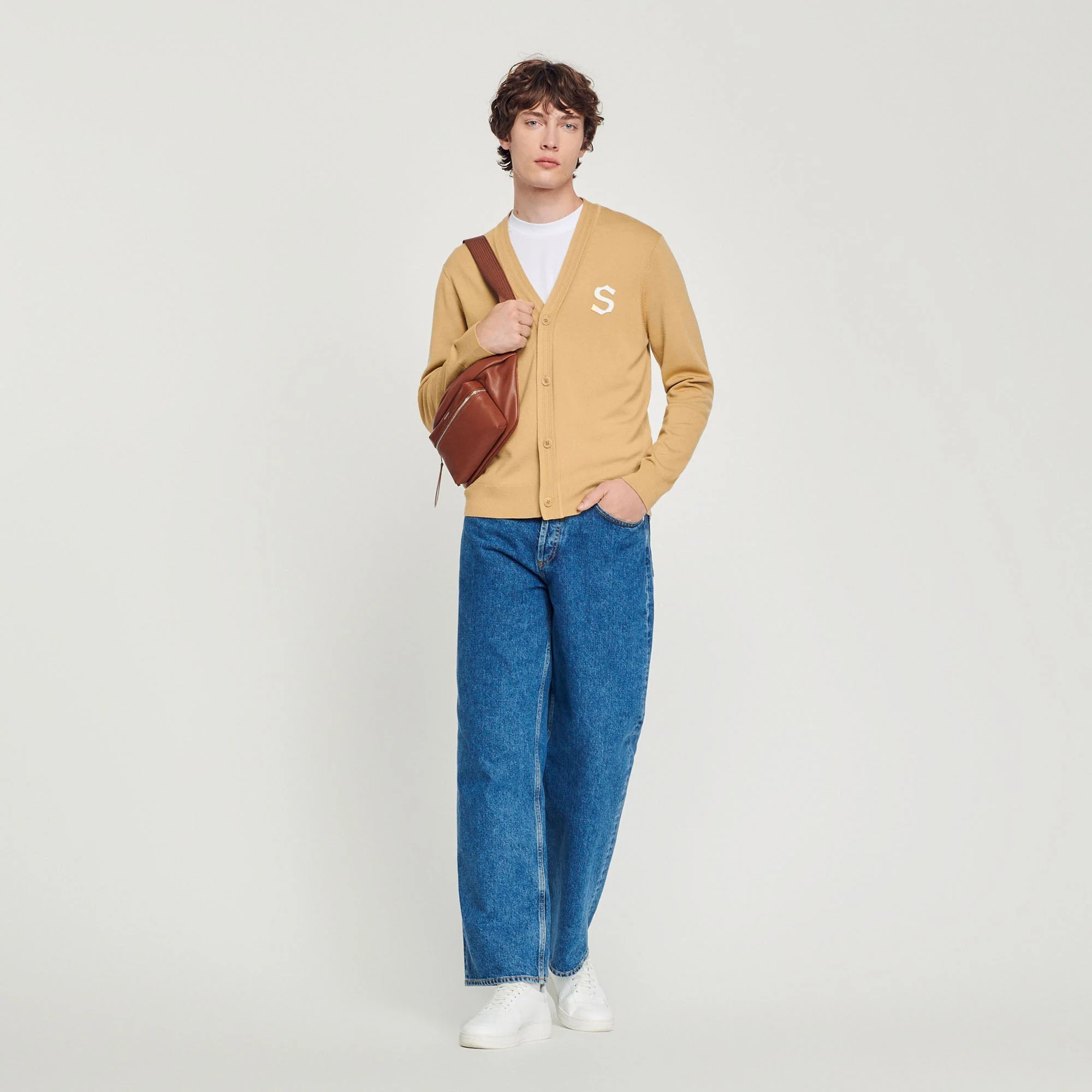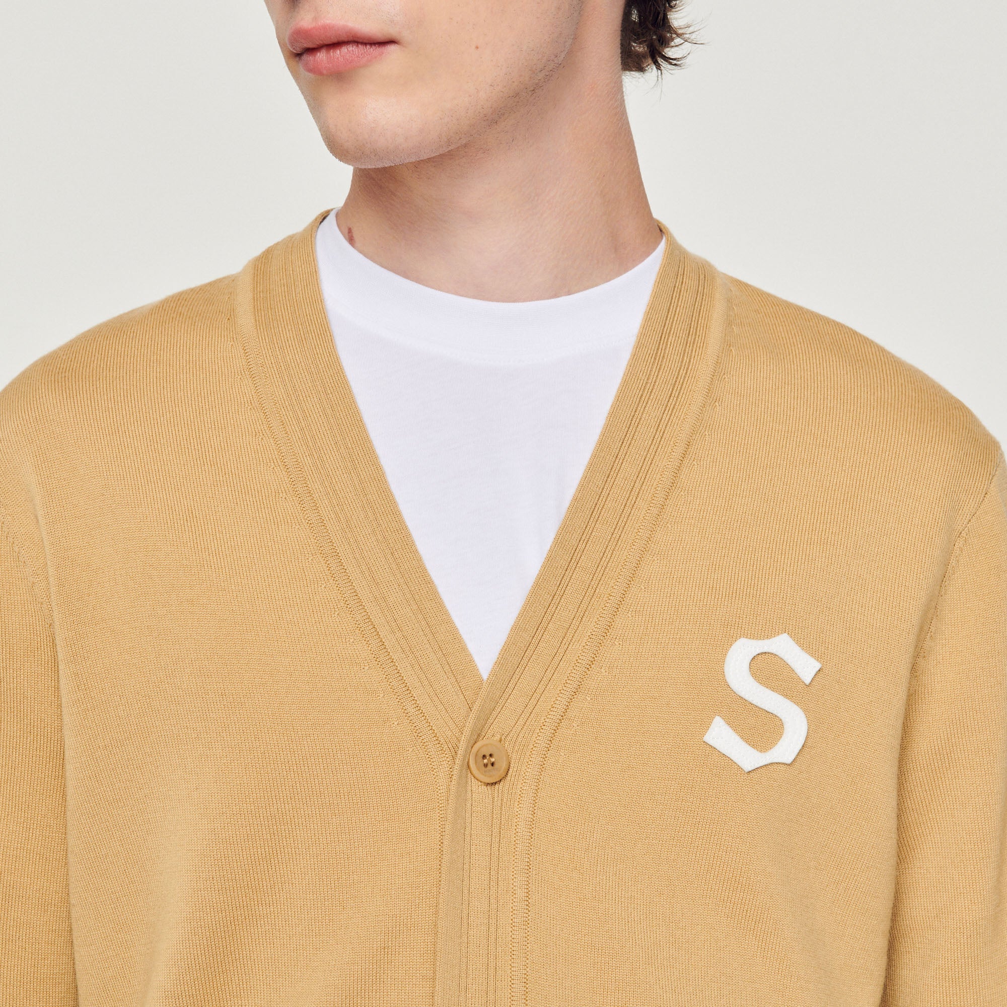 Cárdigan de lana de manga larga y con cierre de botones, sublimado con un parche S en el pecho.