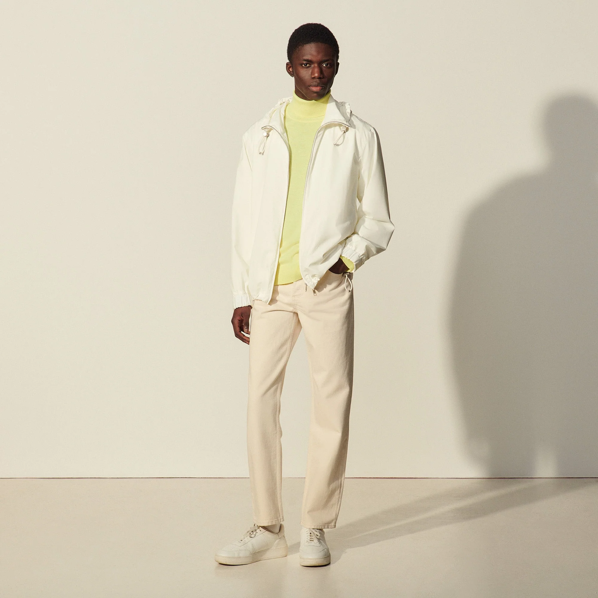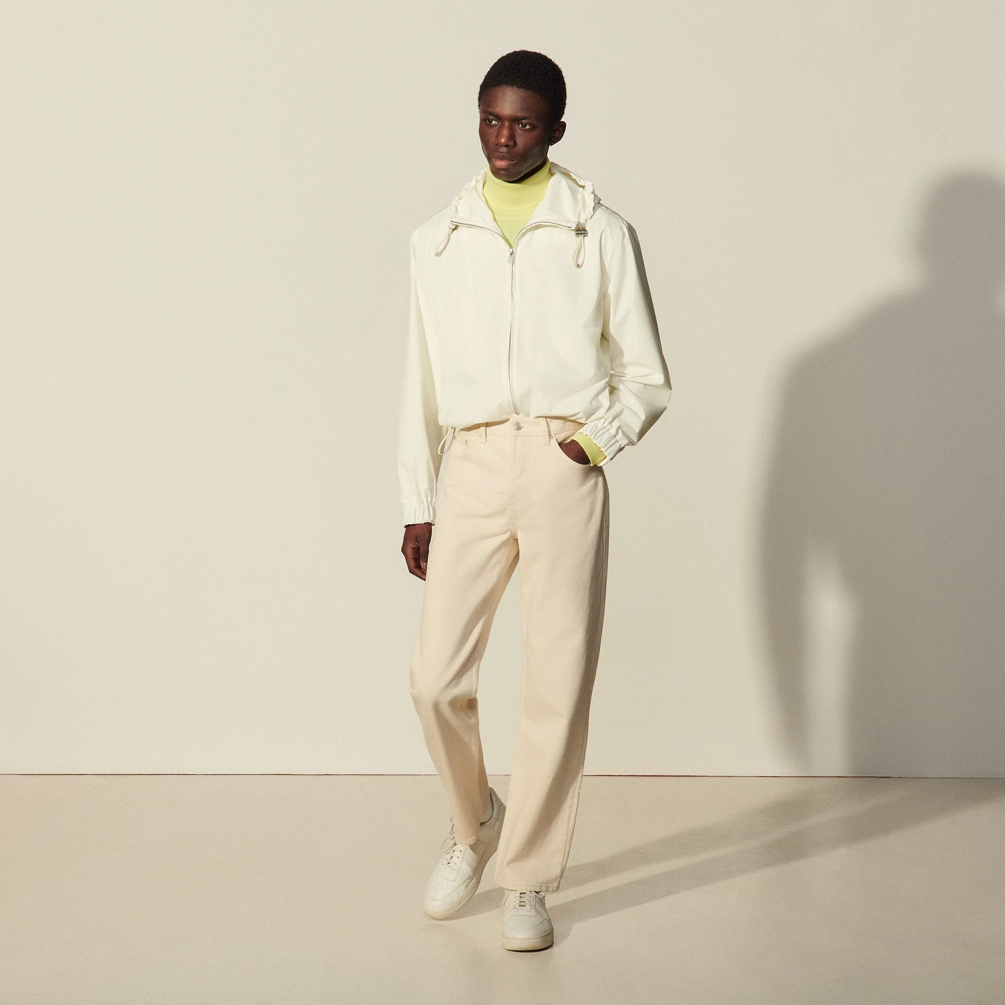 Cazadora de hombre Sandro Cazadora con capucha oversize Capucha con tope y elástico Cuello alto Bolsillos en los laterales Dos bolsillos en el interior Elástico con tope en la parte inferior de la prenda El modelo lleva la talla S REFERENCIA : SHPBL00456 COMPOSICIÓNForro: 100% poliéster Tejido principal: 100% poliéster