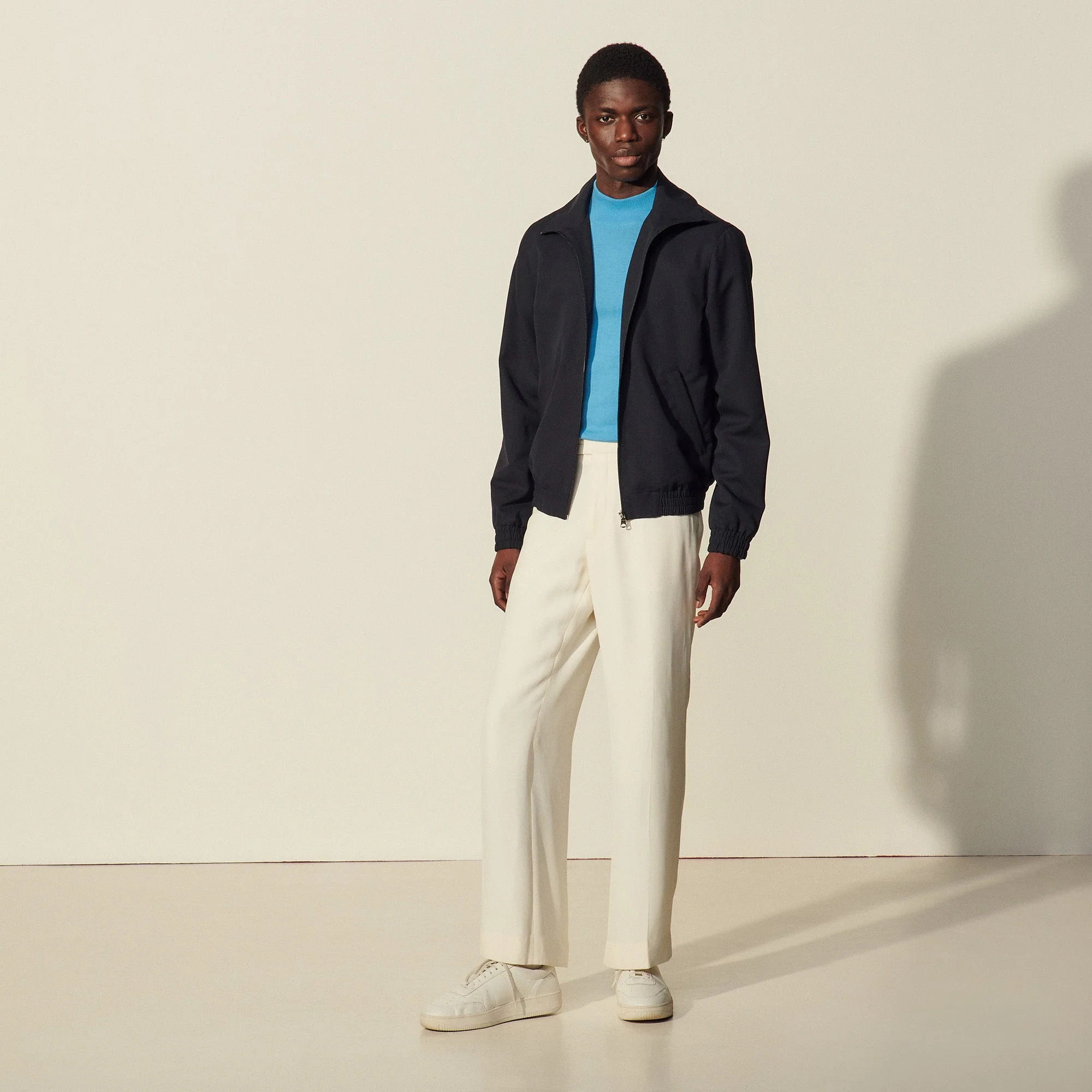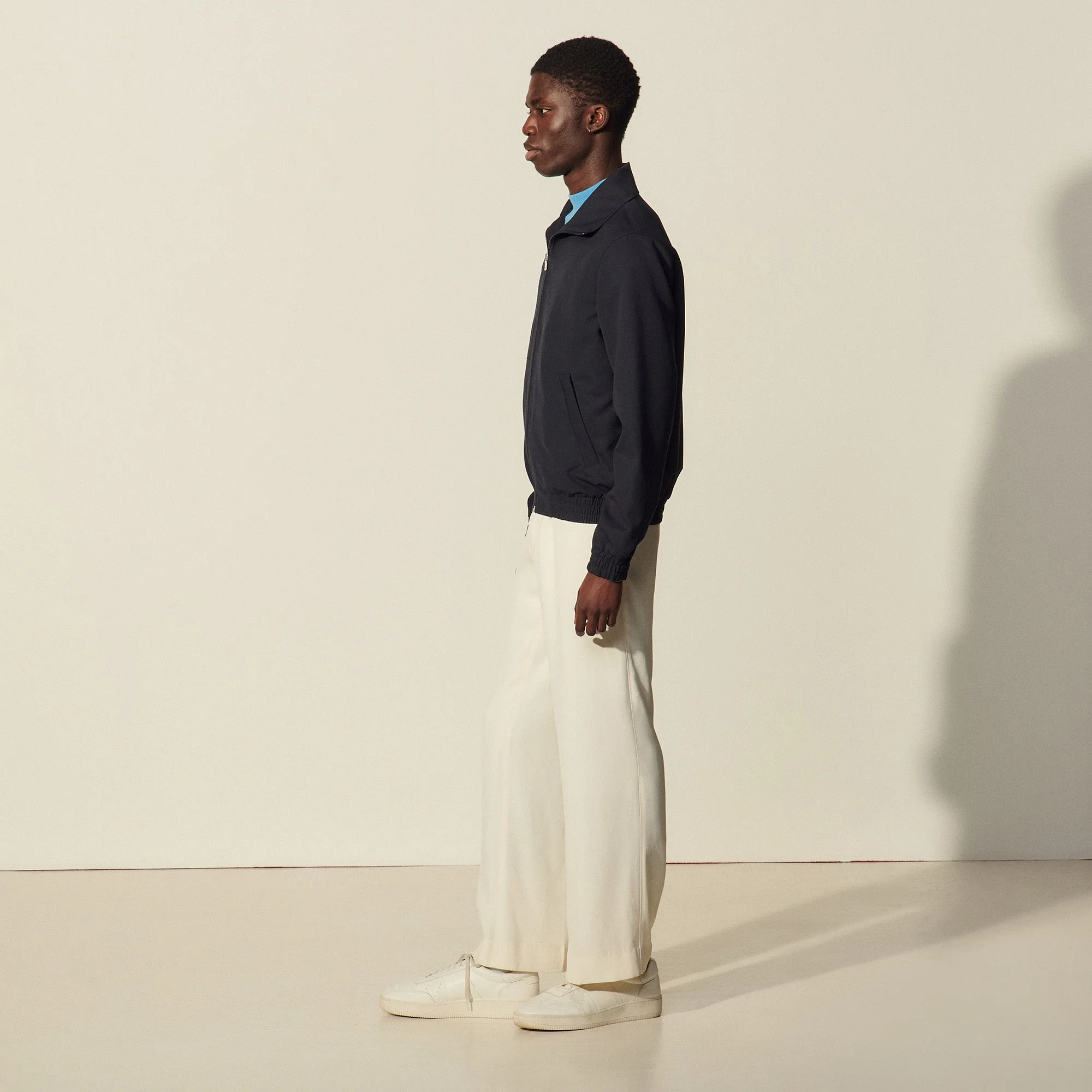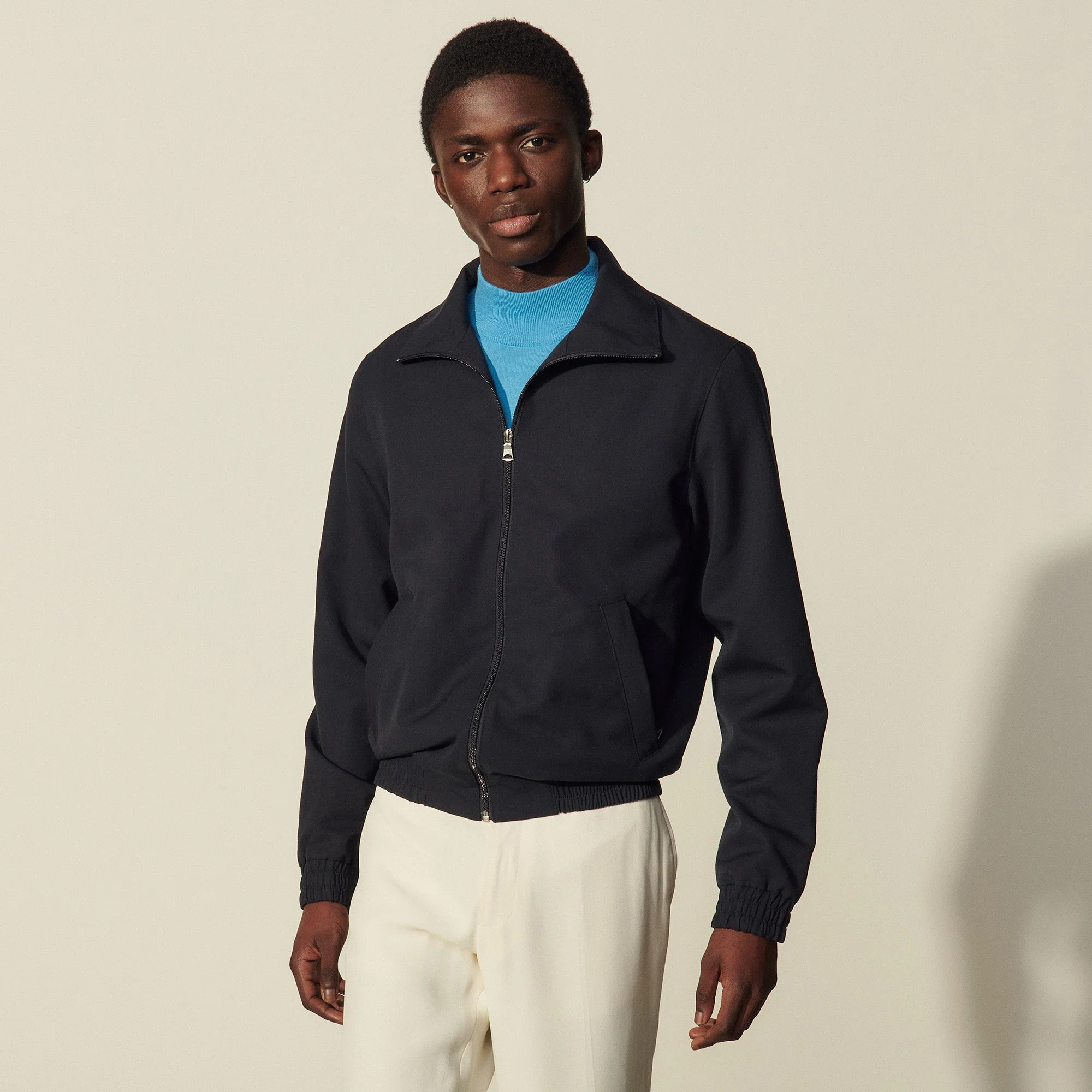 Cazadora de hombre Sandro Cazadora de cuello alto Cierre de cremallera en la parte delantera Manga larga Dos bolsillos oblicuos en la parte delantera Puños y parte inferior de la prenda de punto smock Cazadora con forro El modelo lleva la talla SRef: SHPBL00452 COMPOSICIÓNTejido principal: 100% lana virgen / Forro cuerpo: 65% acetato, 35% viscosa / Forro bolsillo: 100% algodón